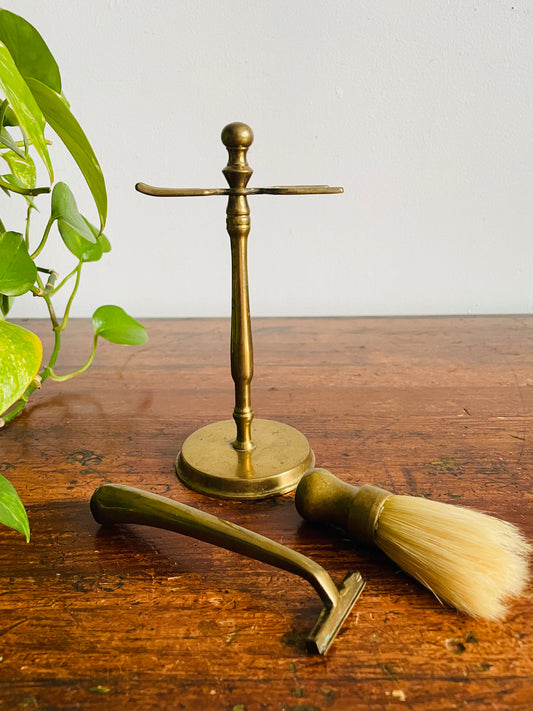 Vintage Solid Brass Shaving Set - Includes Stand, Razor & Brush - Can Attach a New Razor Head to Use!
