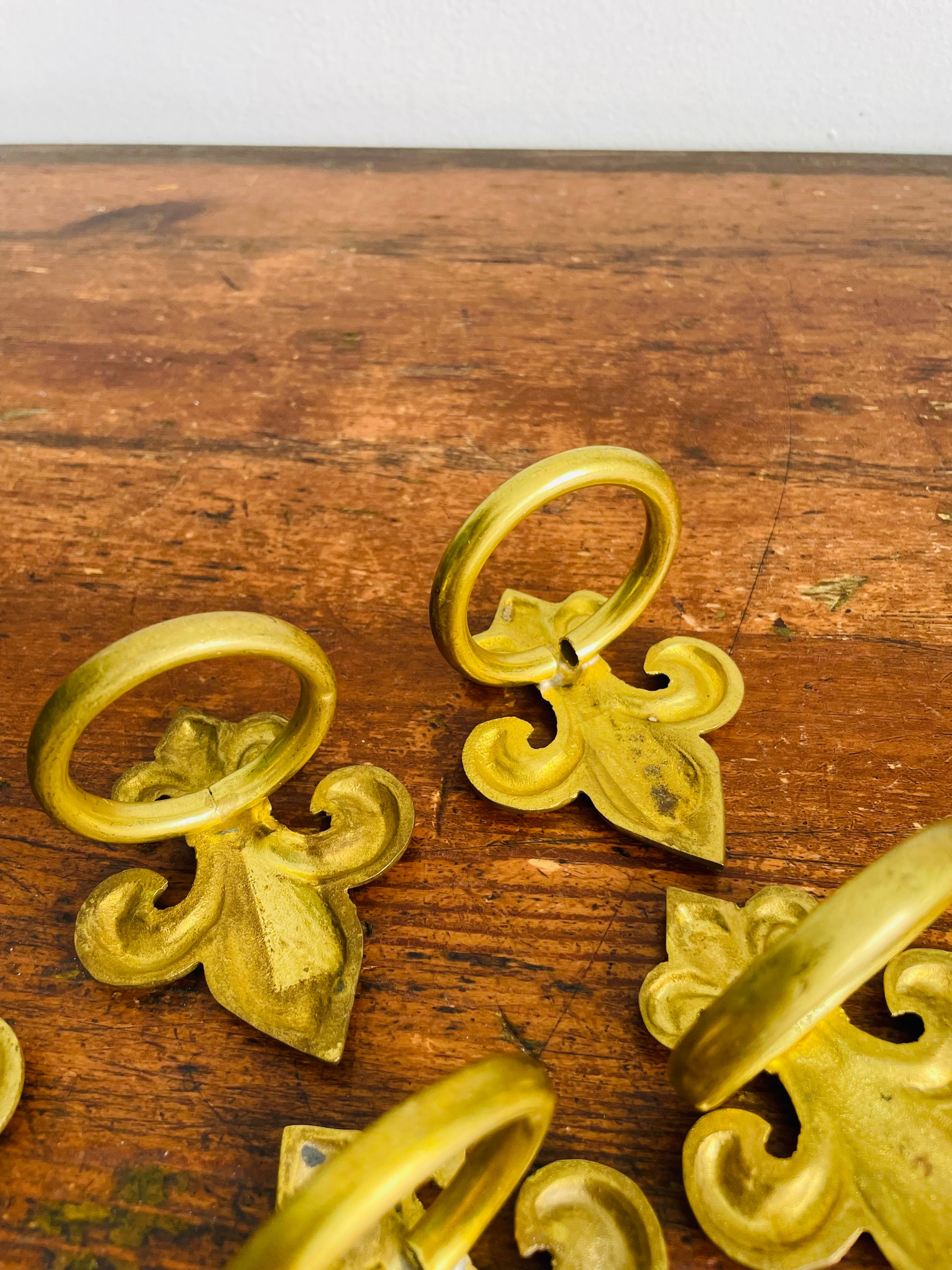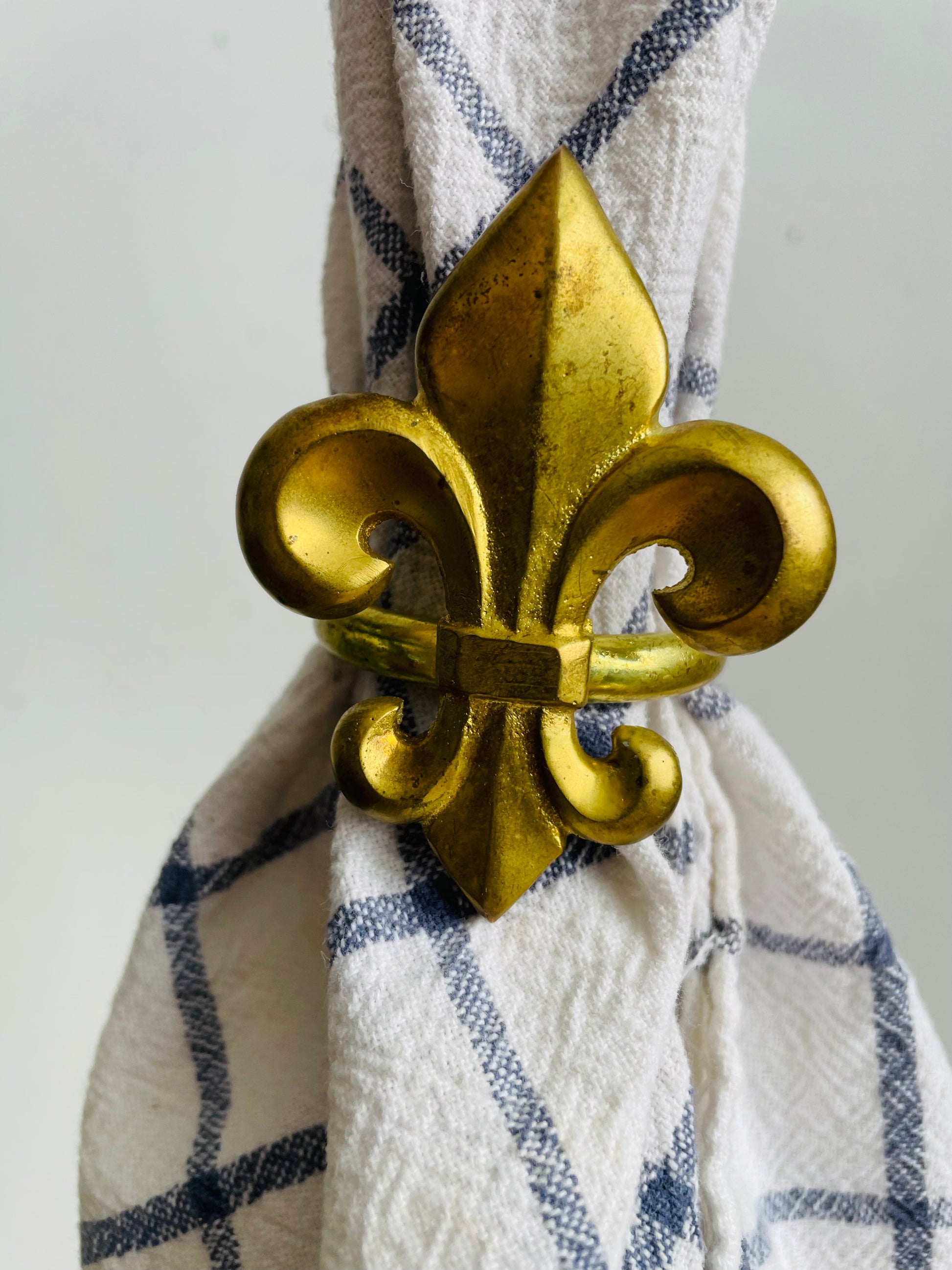 Vintage Brass Fleur de Lis / Lys Napkin Ring Holders - Set of 6