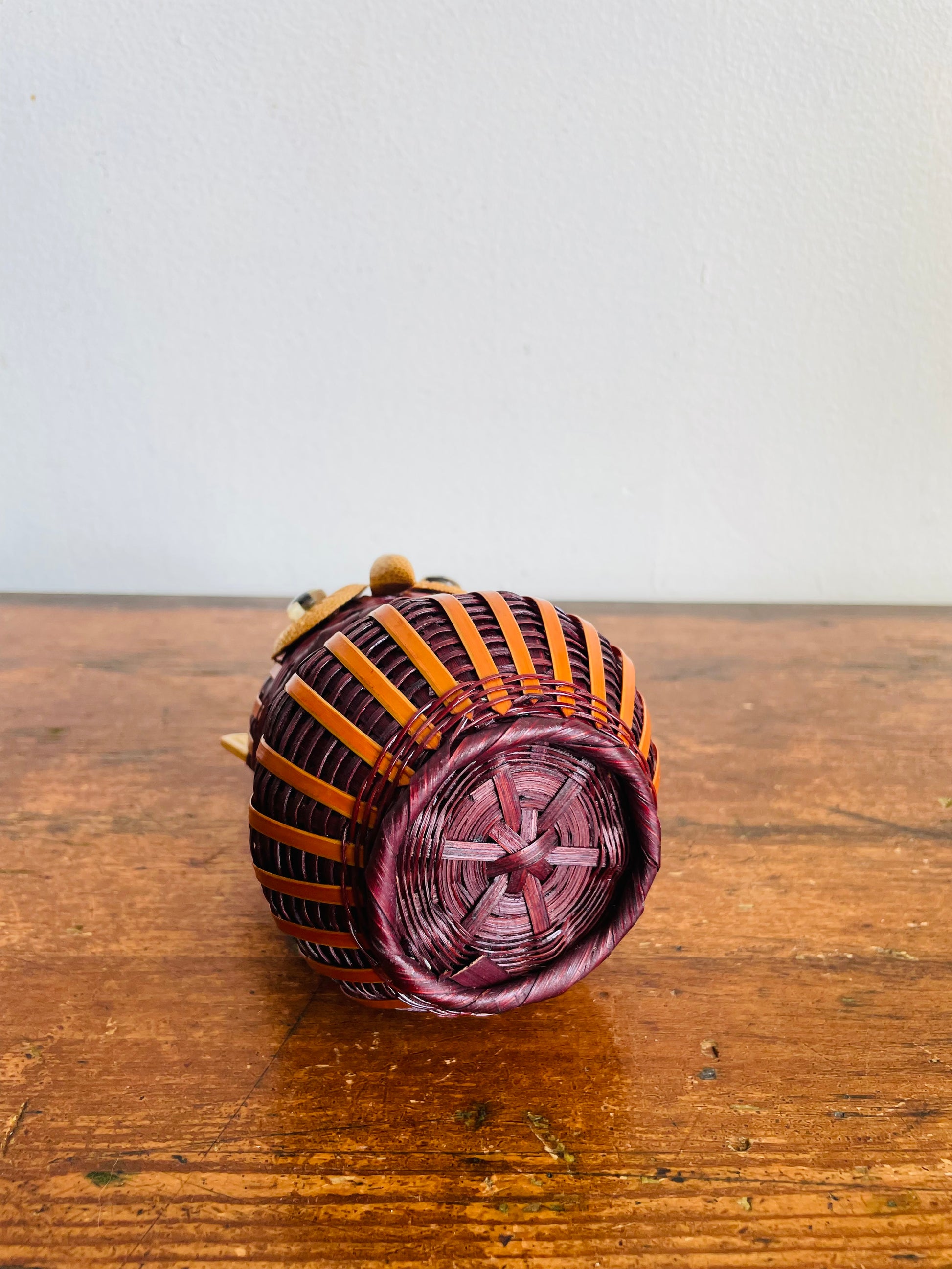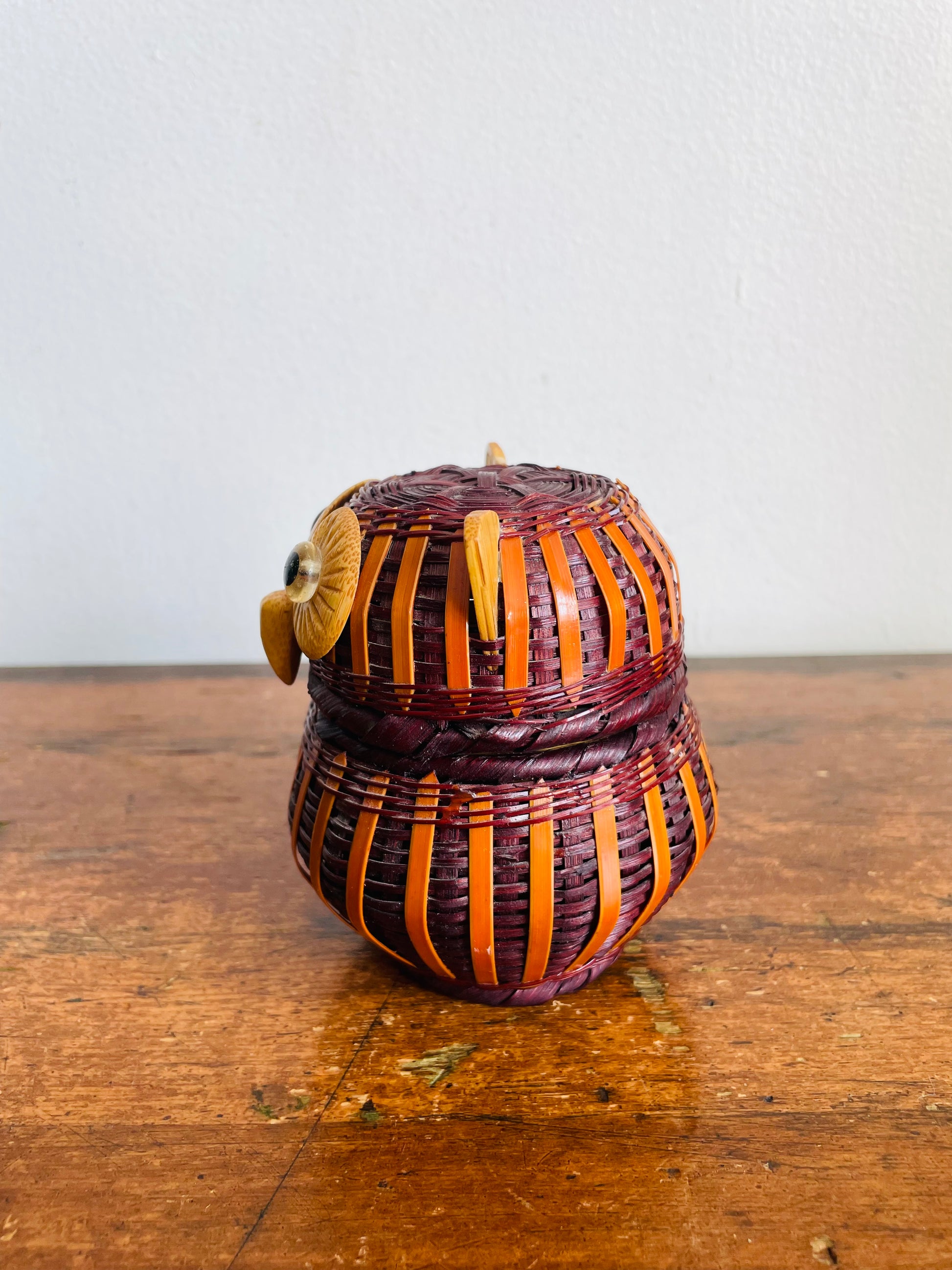 Vintage Mid-Century Modern Woven Wicker Wood Owl Basket Box Container with Lid