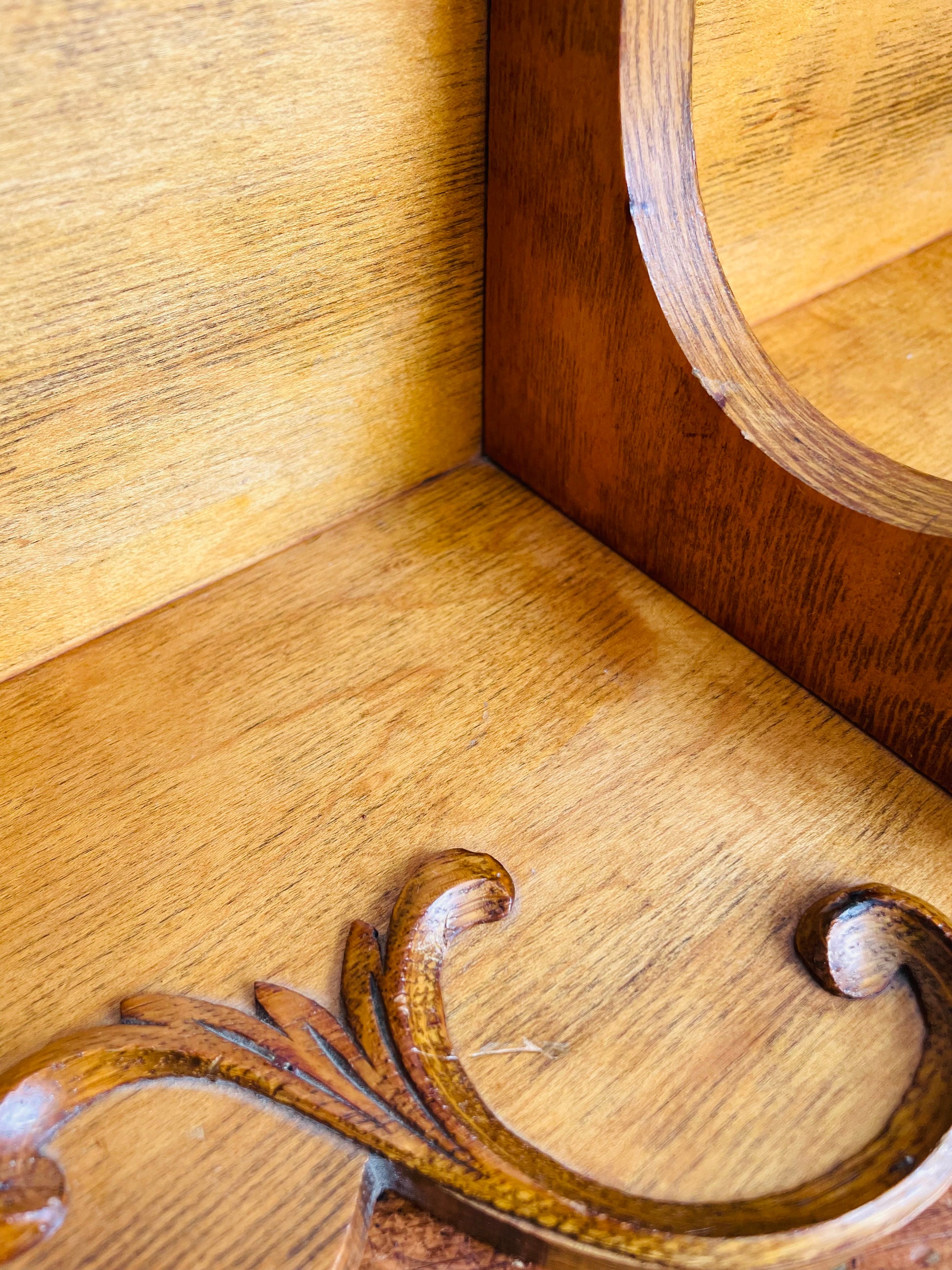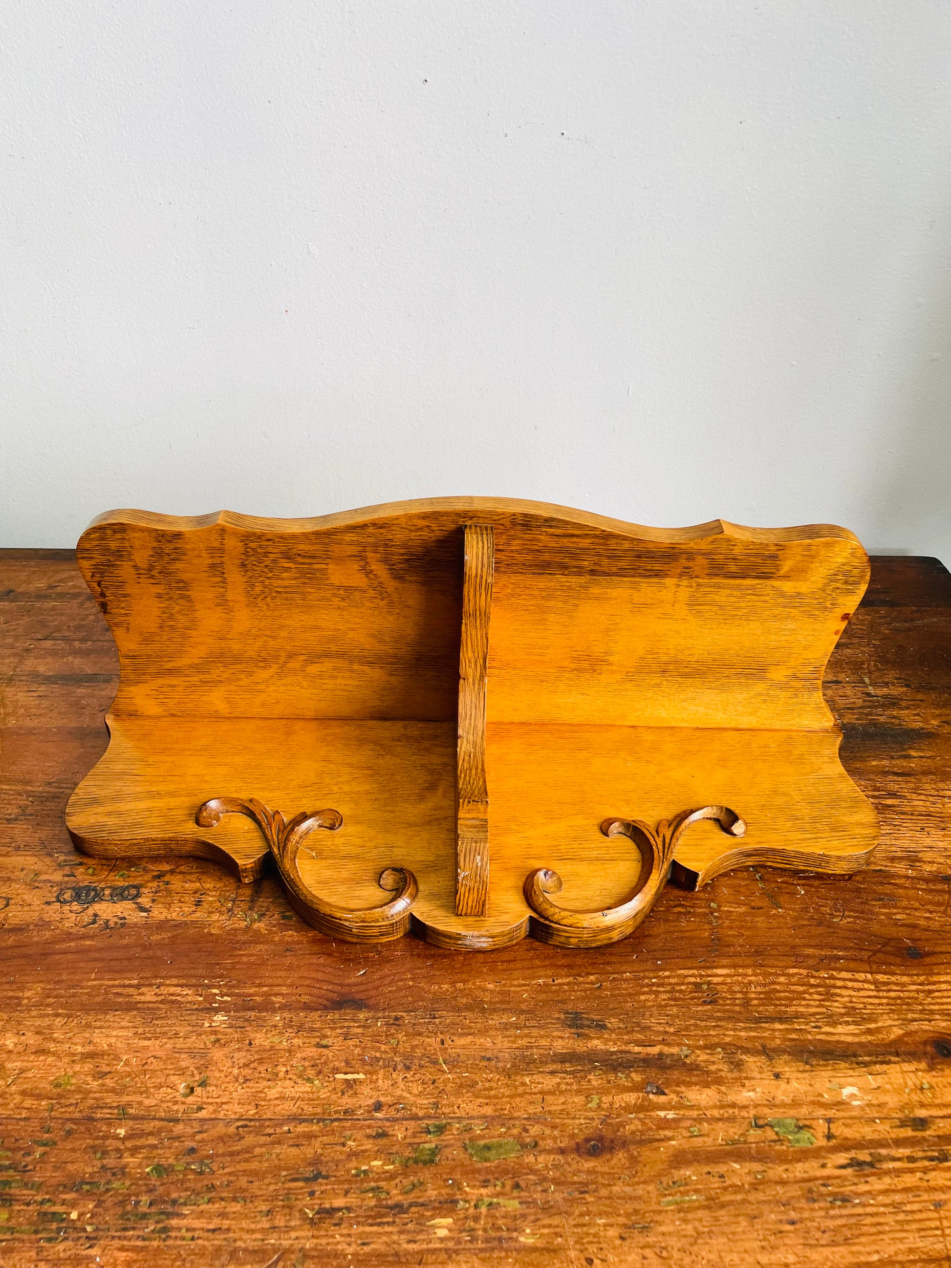 Vintage Solid Oak Wood Wall Hanging Shelf with Raised Scroll Design