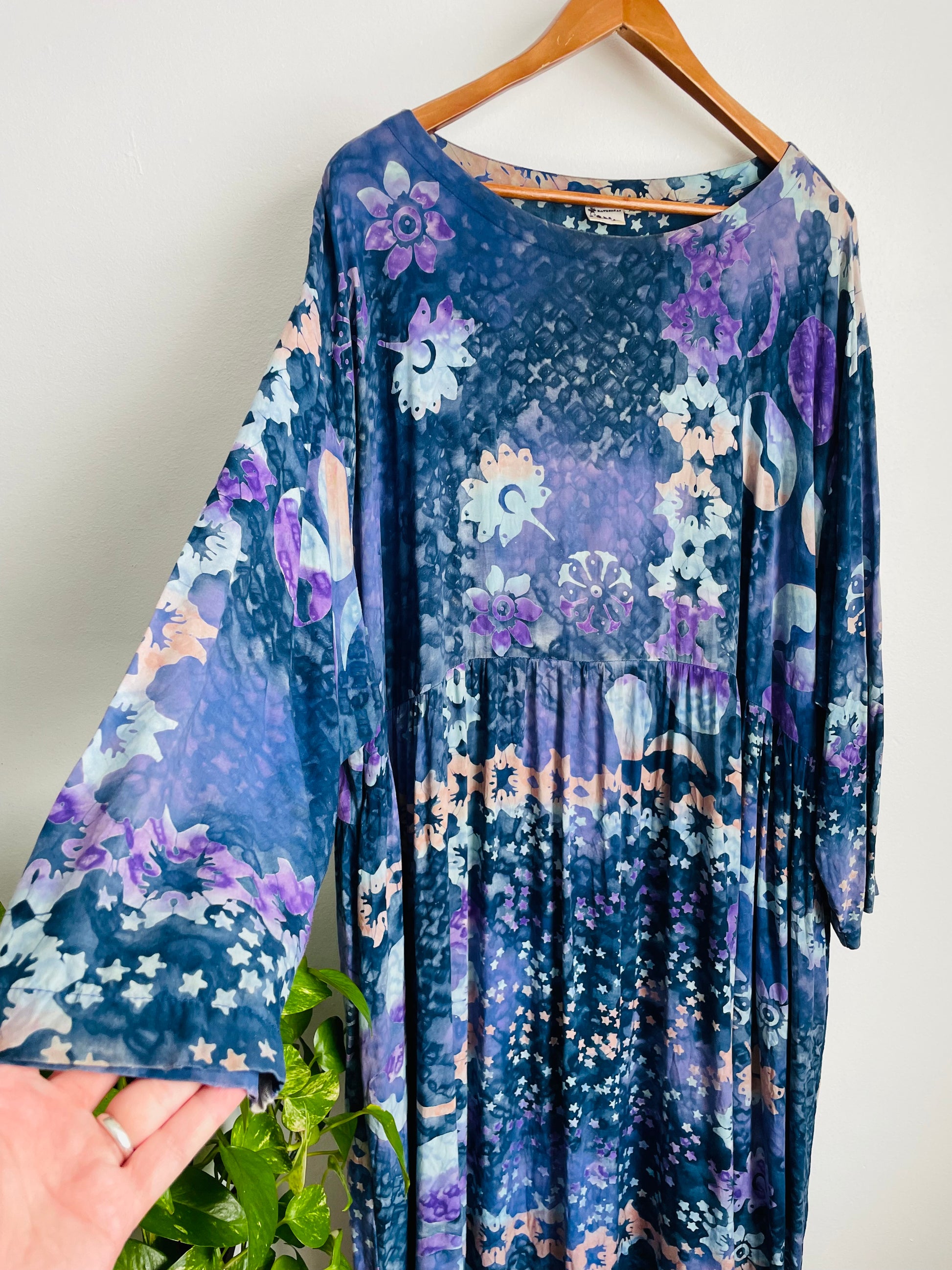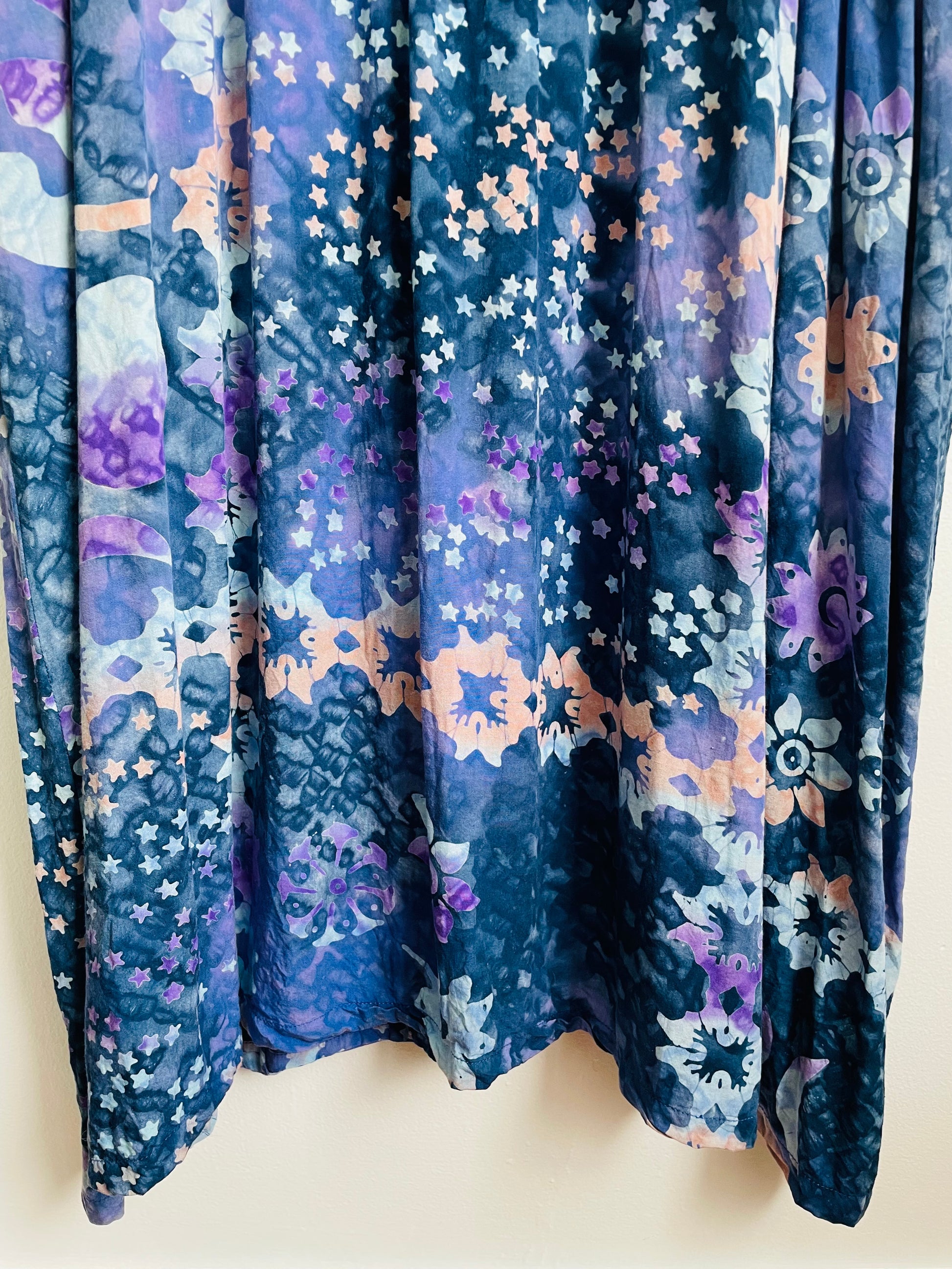 100% Rayon Maxi Dress with Pockets & Batik-Style Celestial Design - Made in Indonesia - Fits up to Size 4x