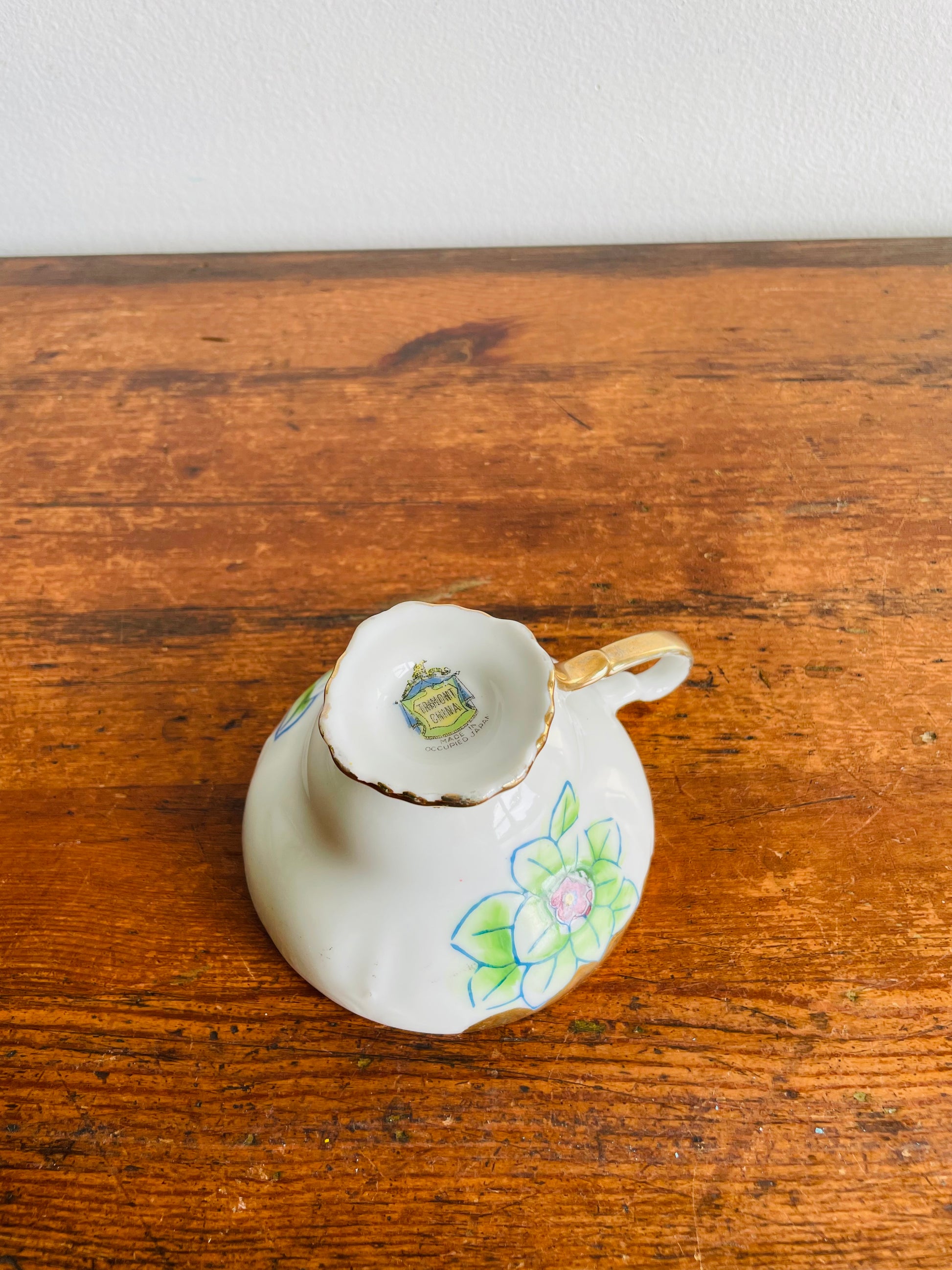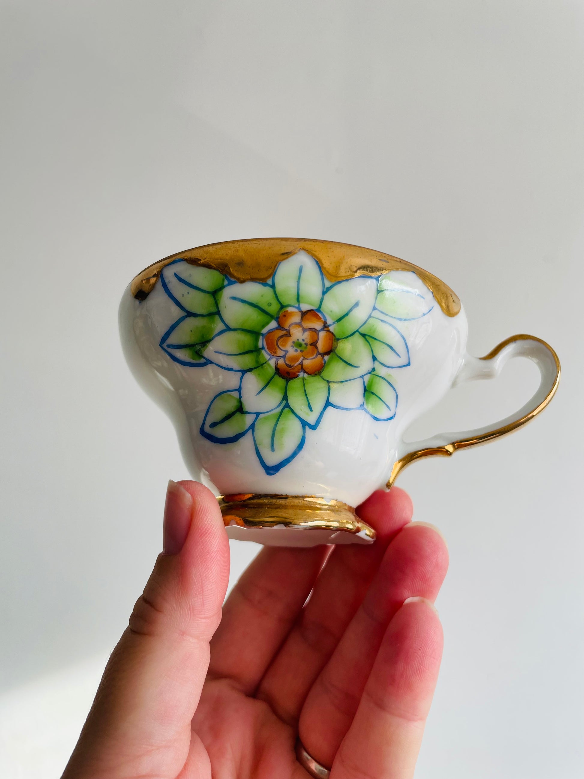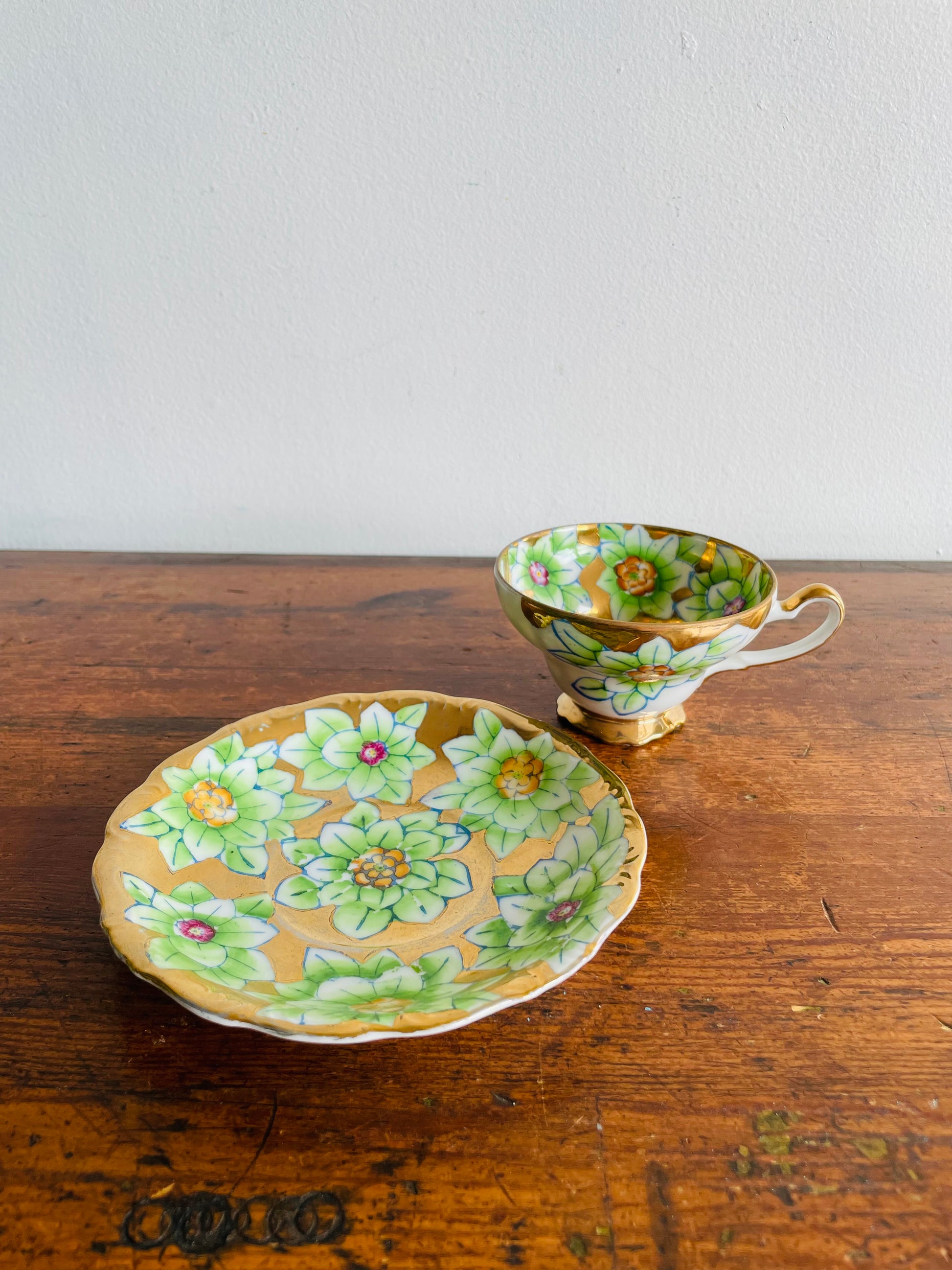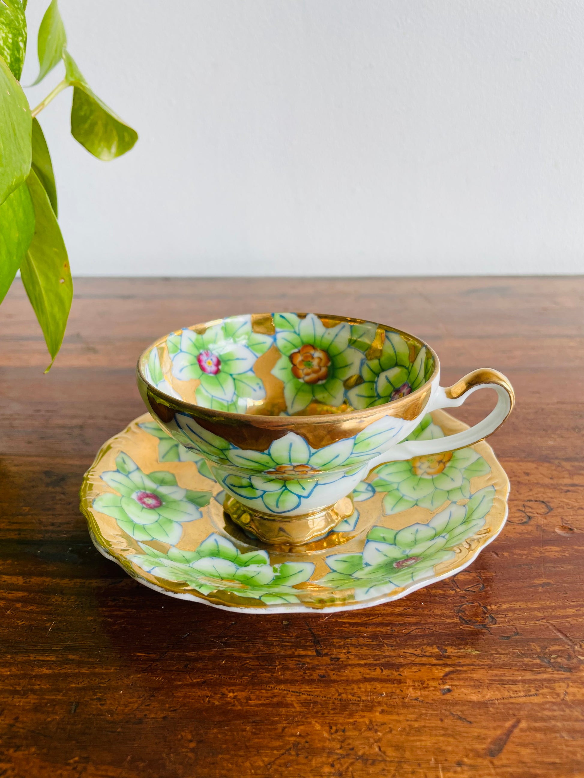 1940s Trimont China Hand Painted Gold & Flower Teacup & Saucer - Made in Occupied Japan