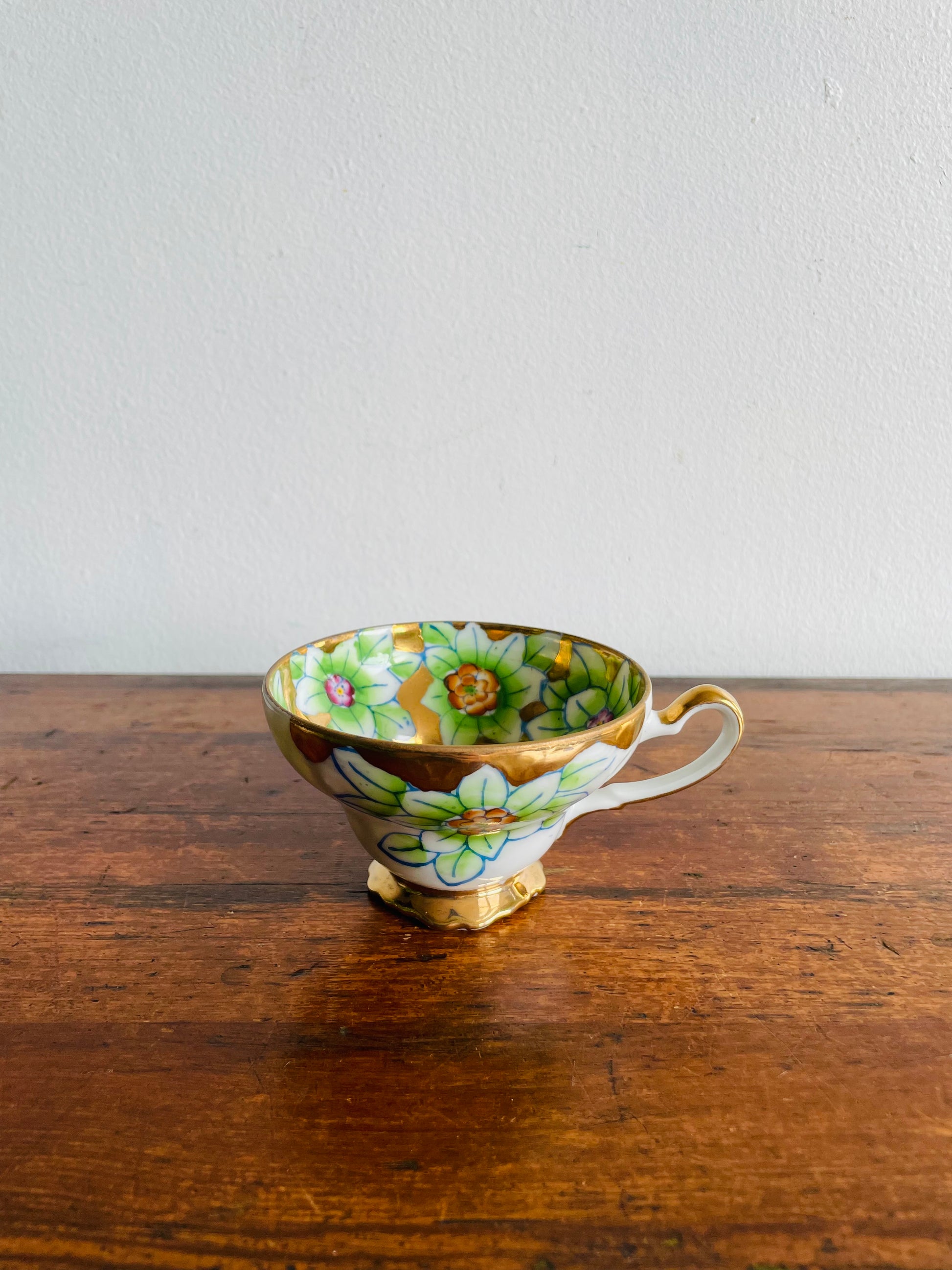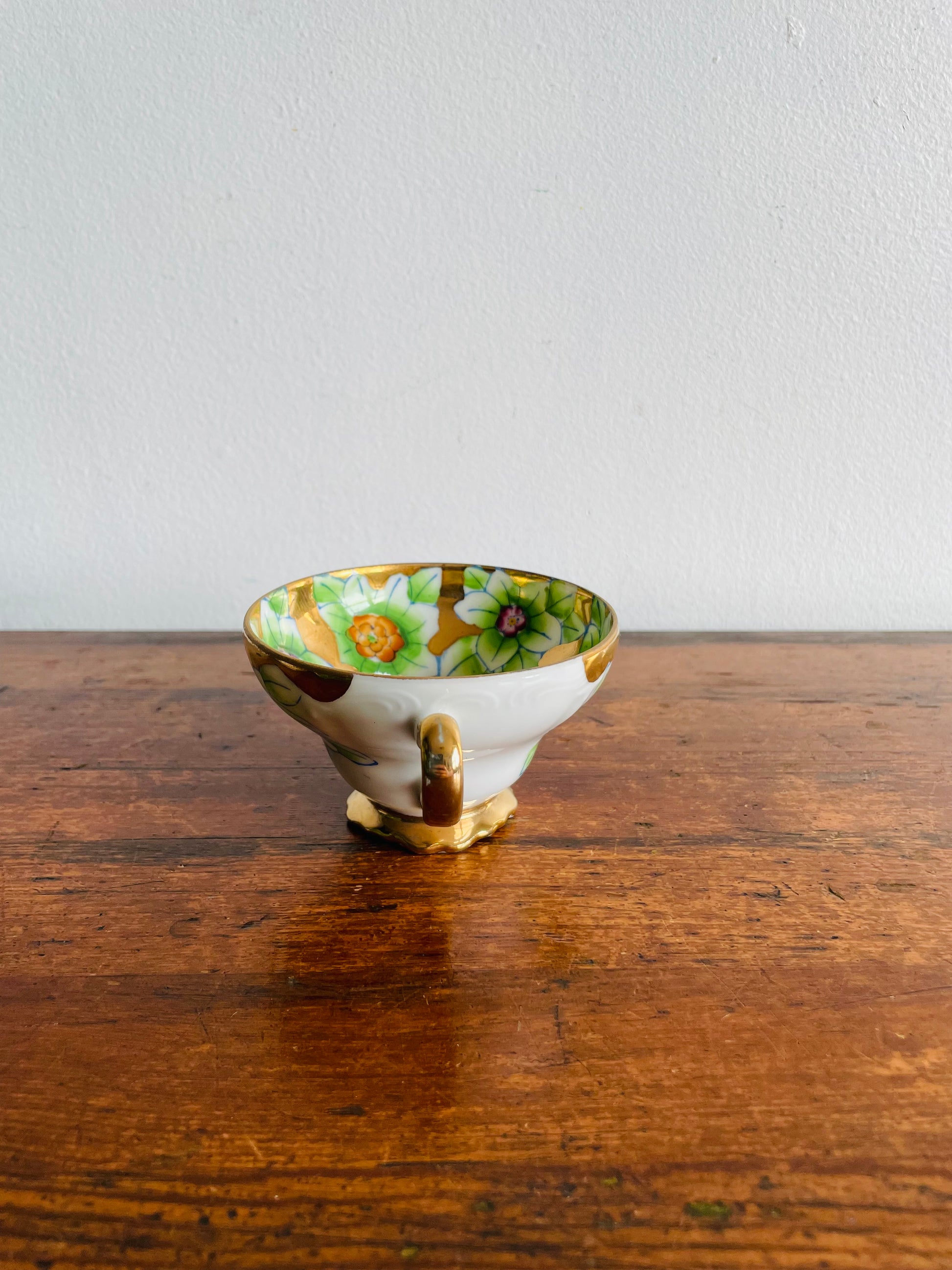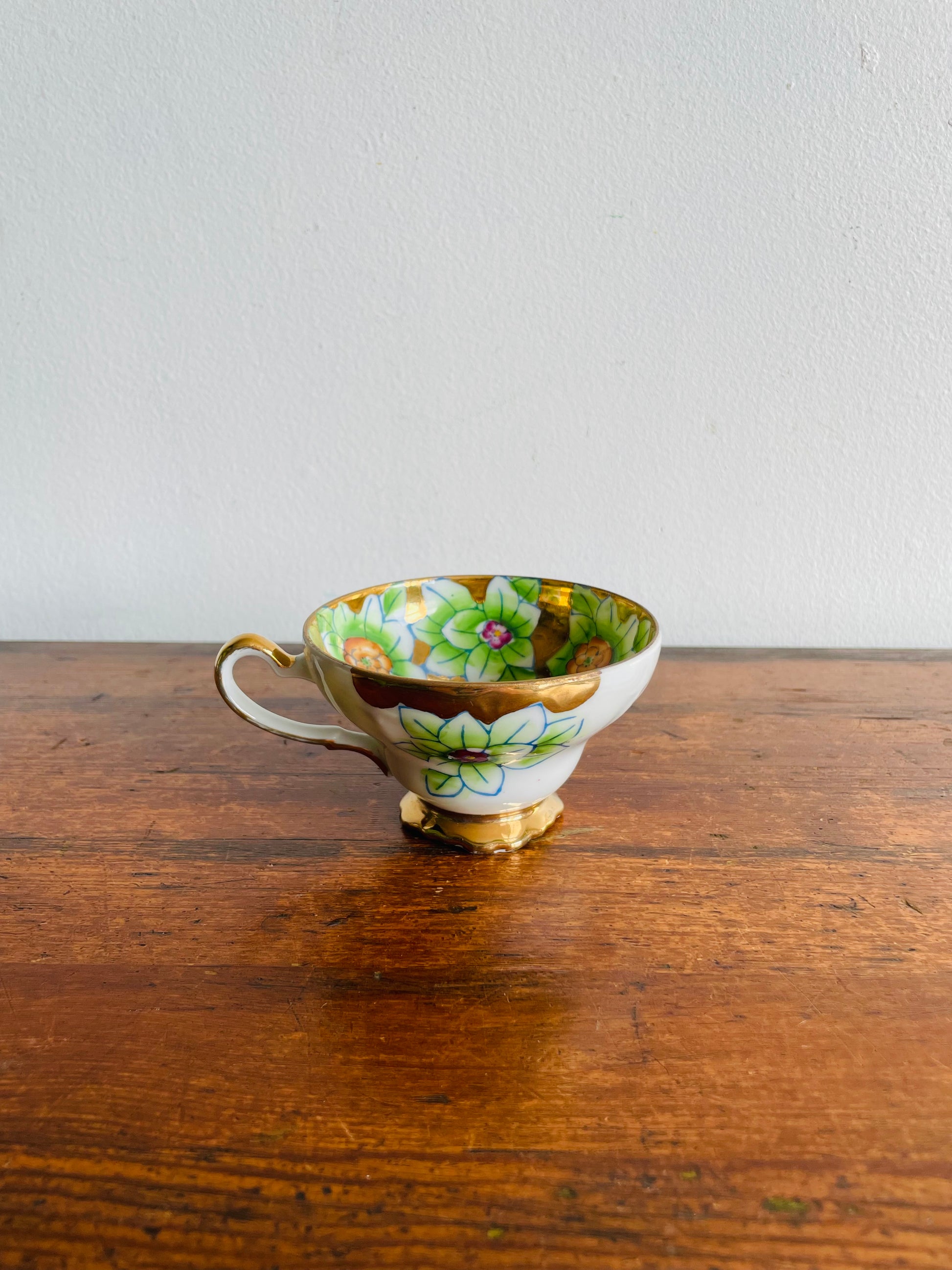 1940s Trimont China Hand Painted Gold & Flower Teacup & Saucer - Made in Occupied Japan