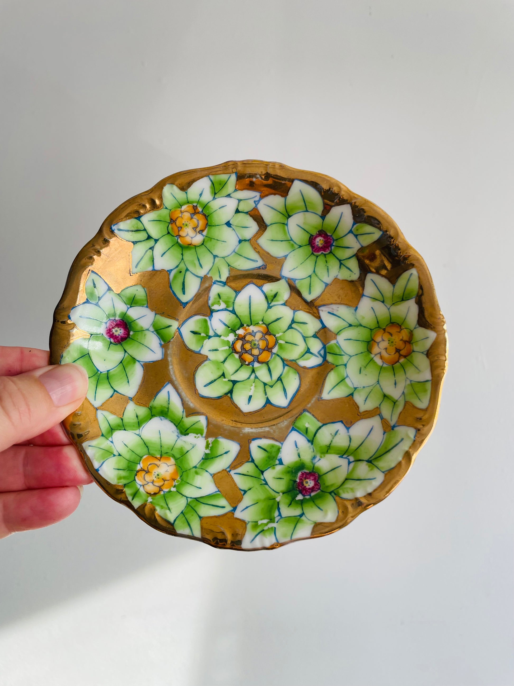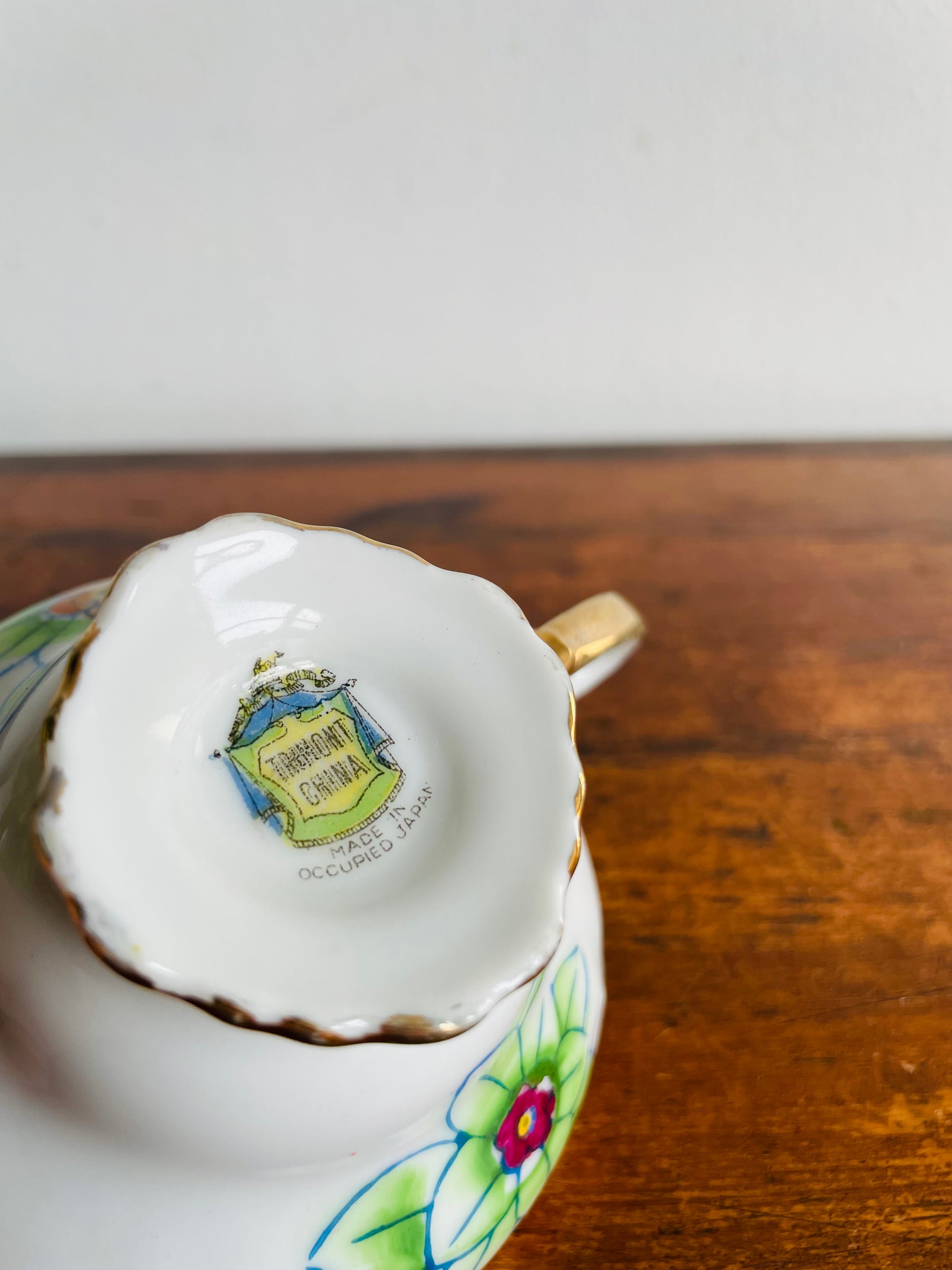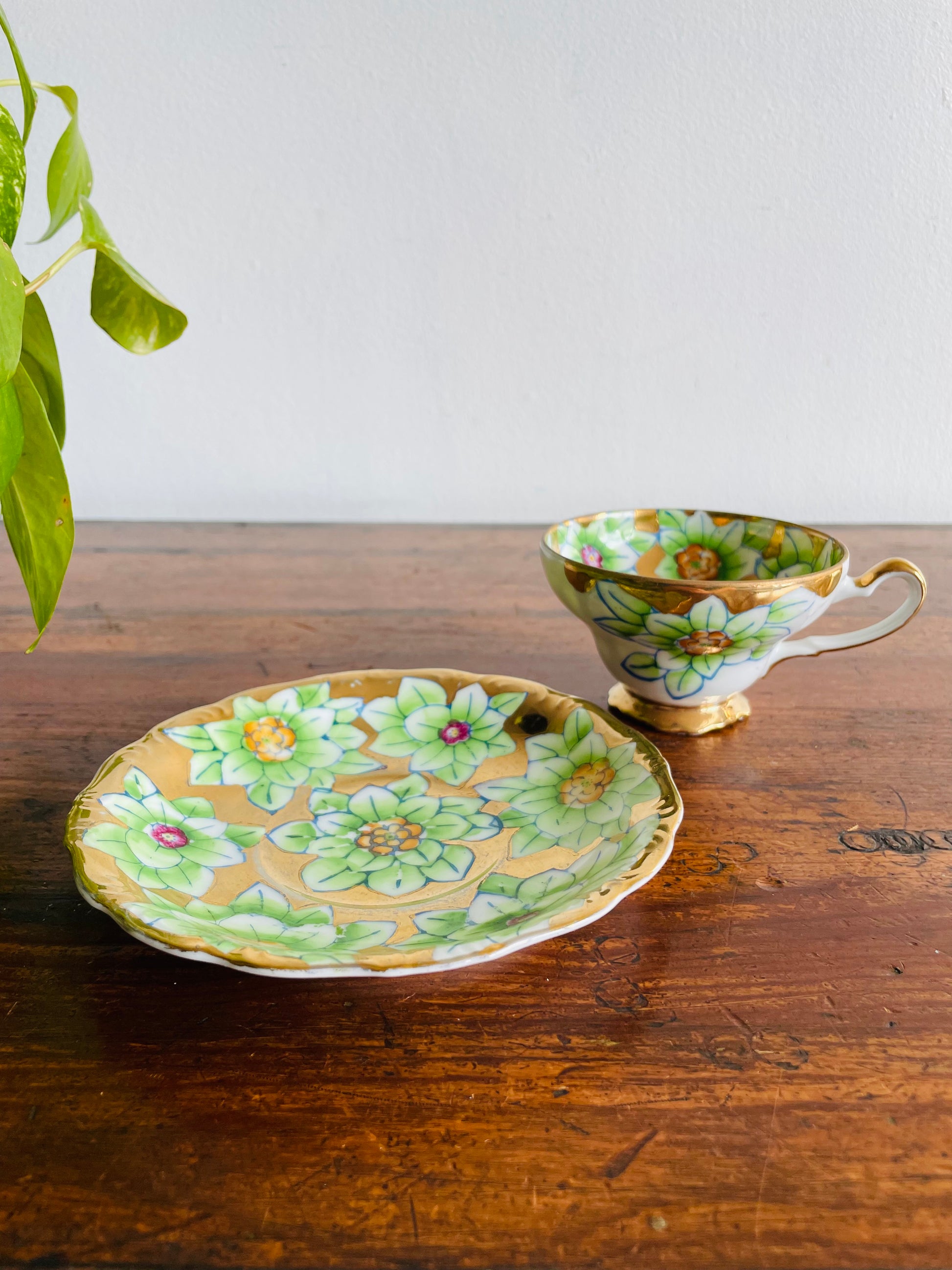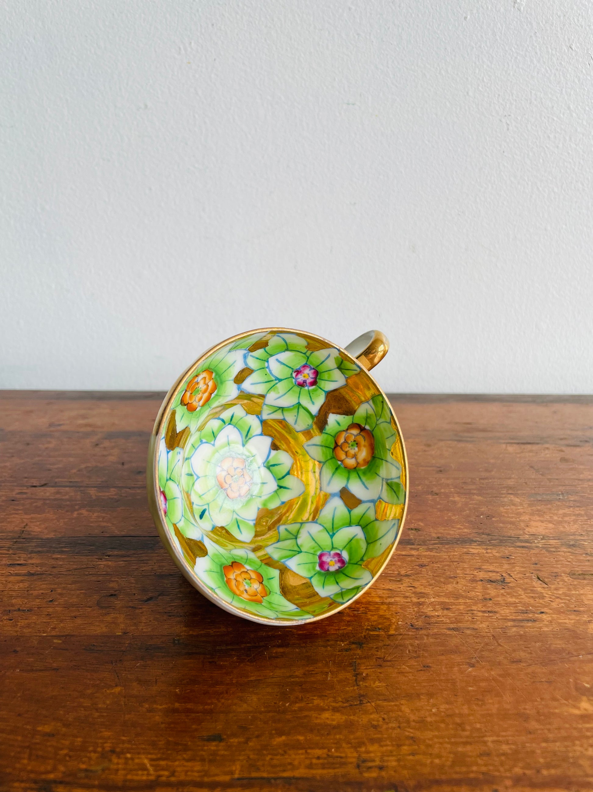 1940s Trimont China Hand Painted Gold & Flower Teacup & Saucer - Made in Occupied Japan
