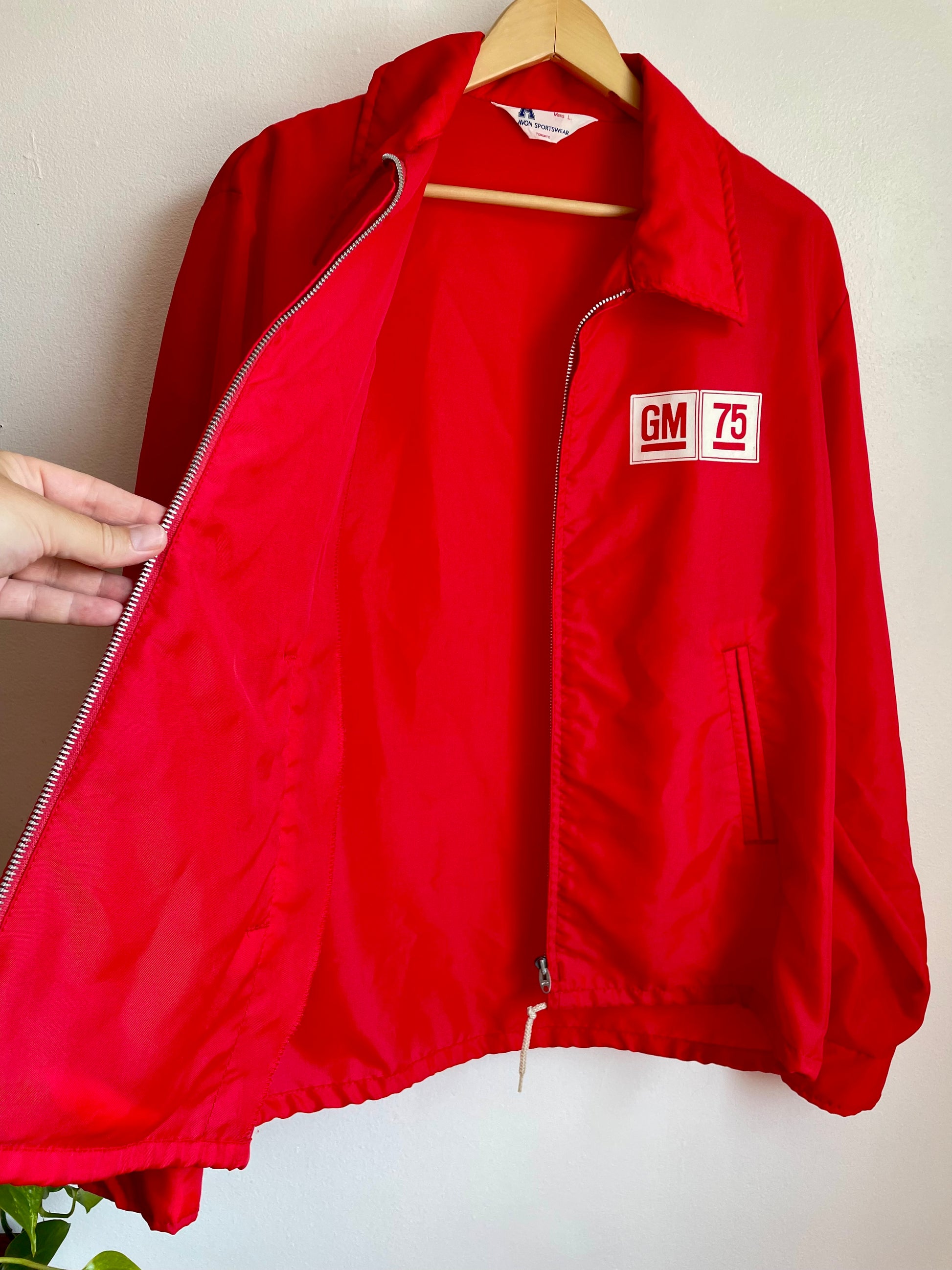 1975 General Motors Red Windbreaker Jacket - Avon Sportswear Toronto - Men's Size Large - GM 75