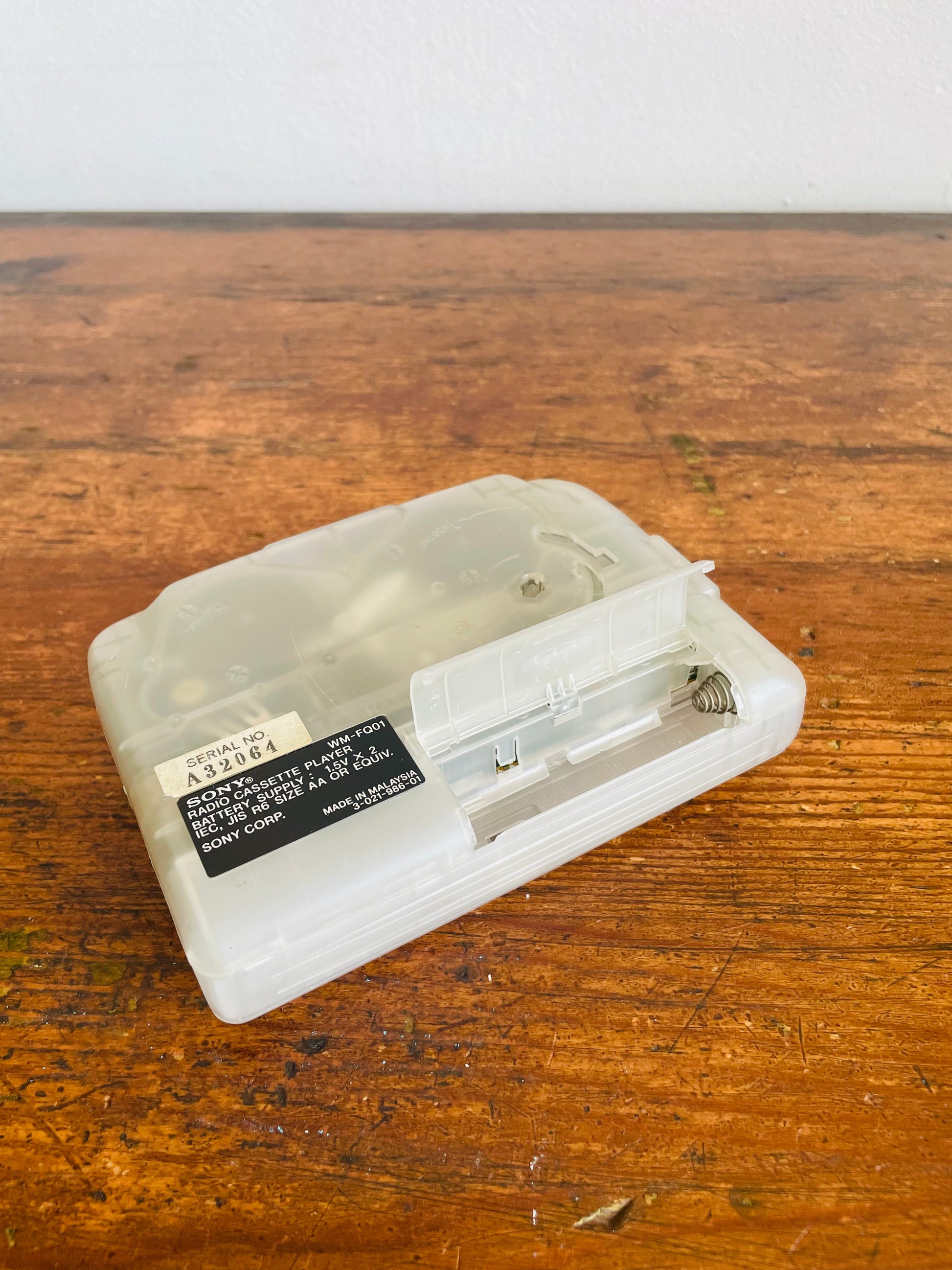 Stamped: Sony Radio Cassette Player WM-FQ01 / Serial No. A32064 / Made in Malaysia