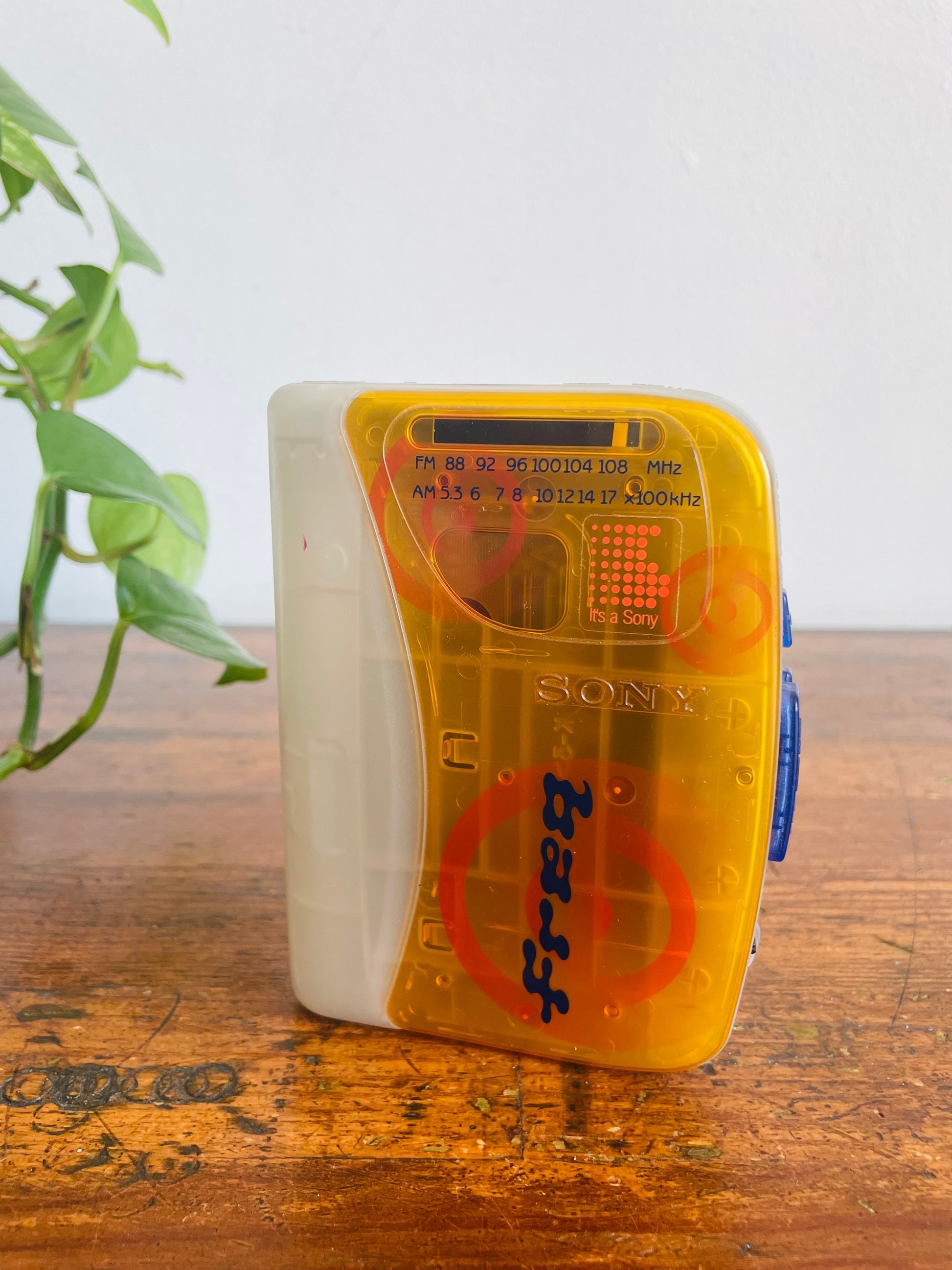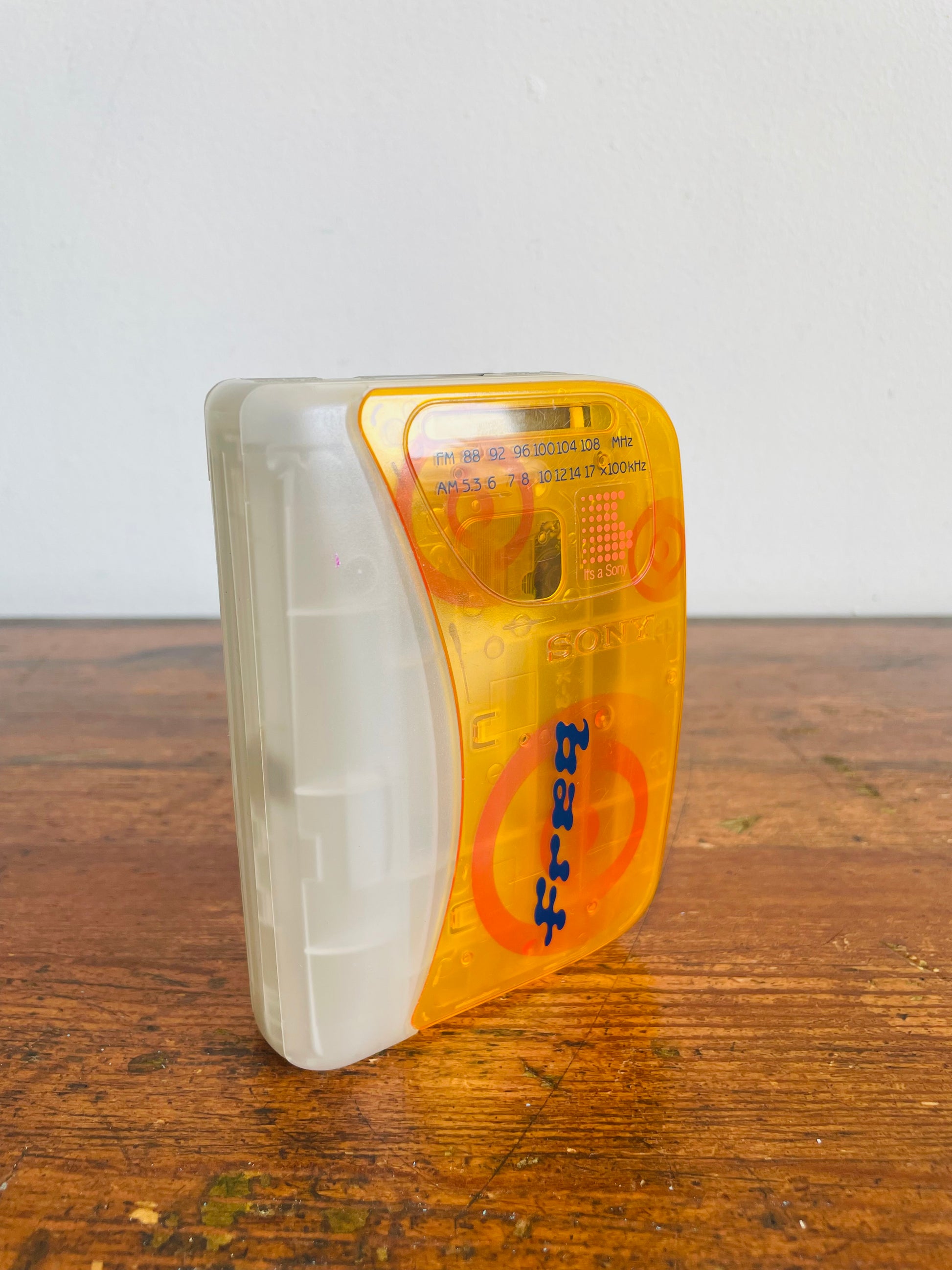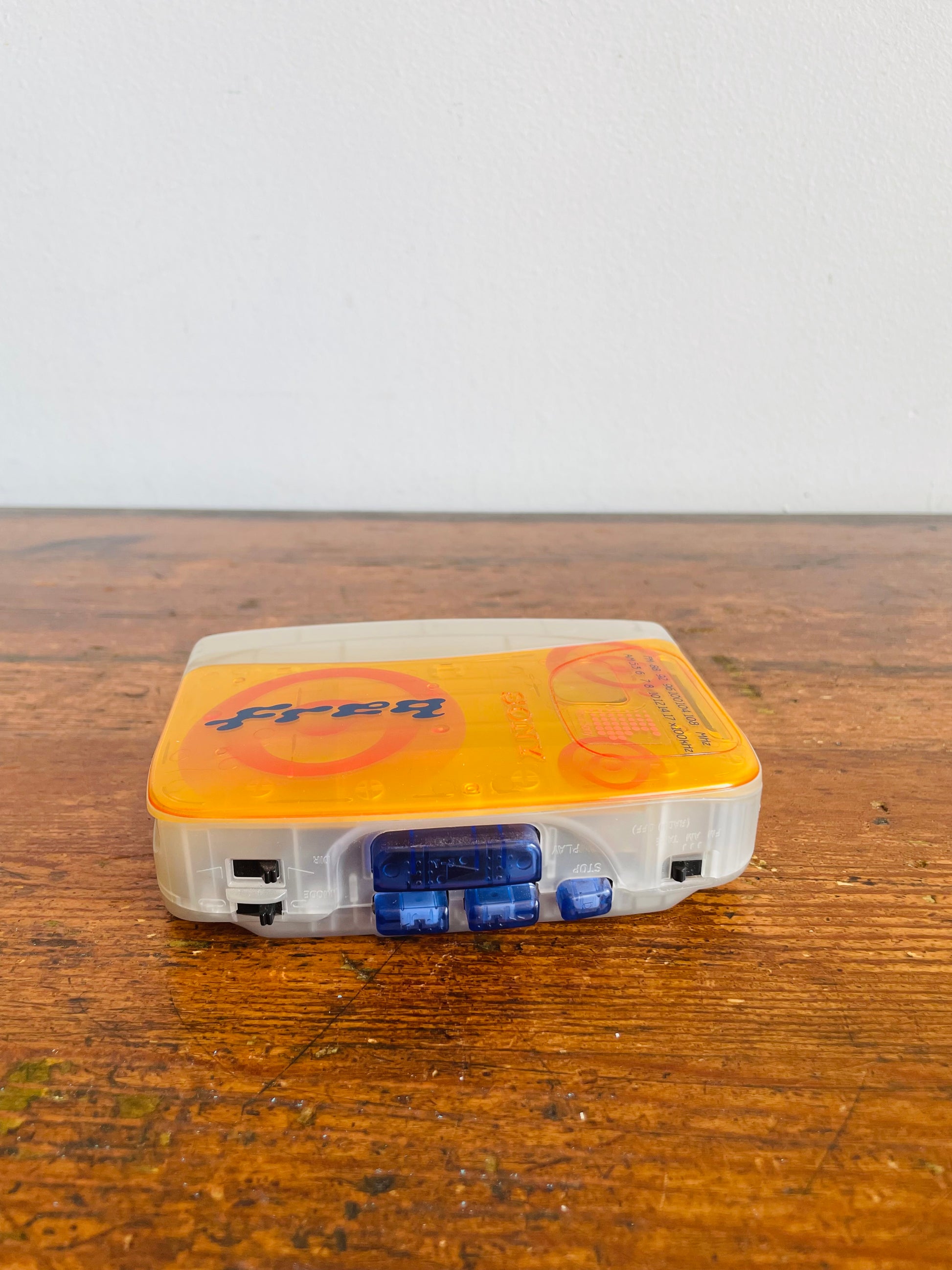 1990s Sony Freq Orange & Transparent Walkman - Radio Cassette Player WM-FQ01 - Refurbished / New Belts / Works!