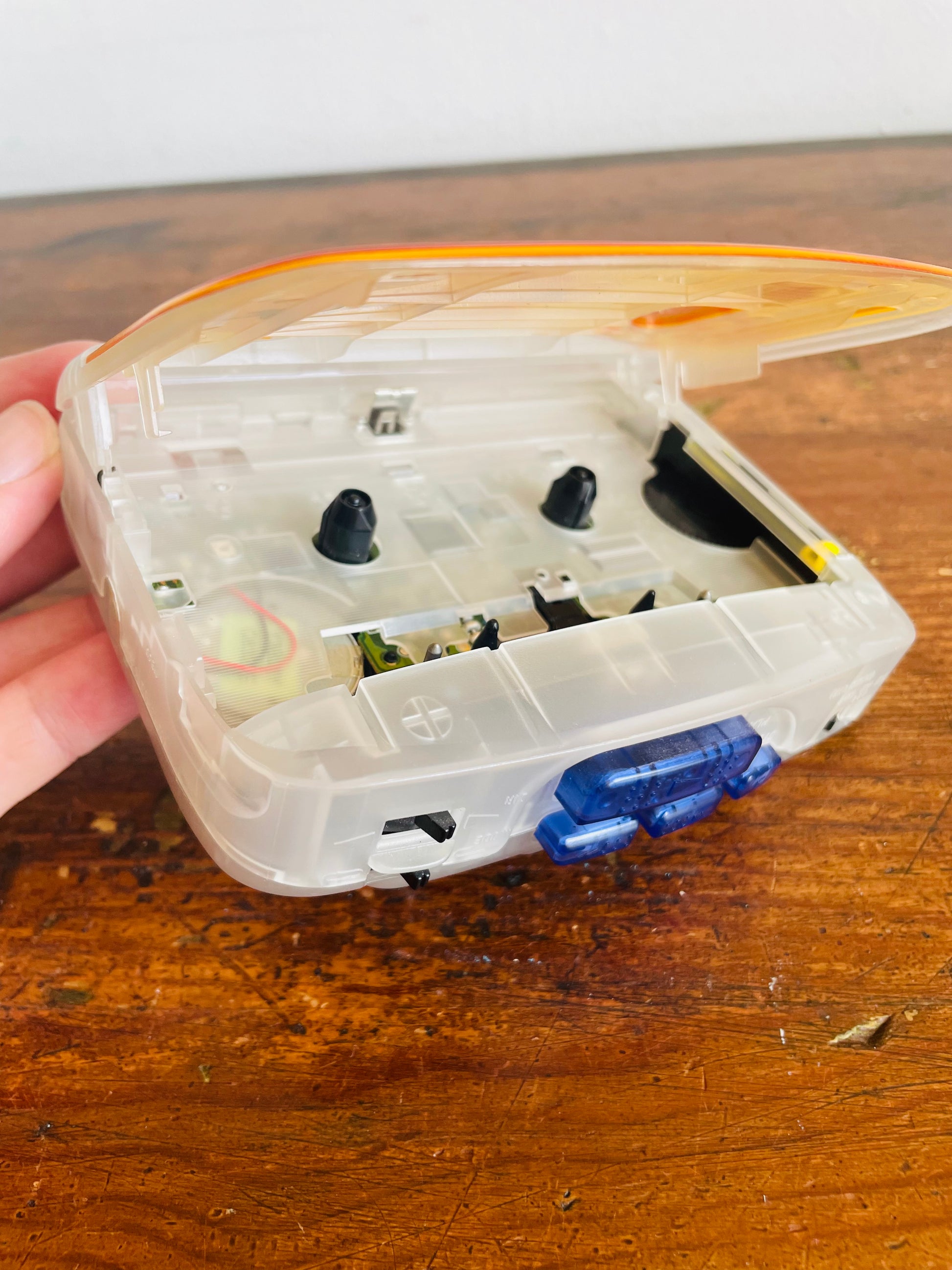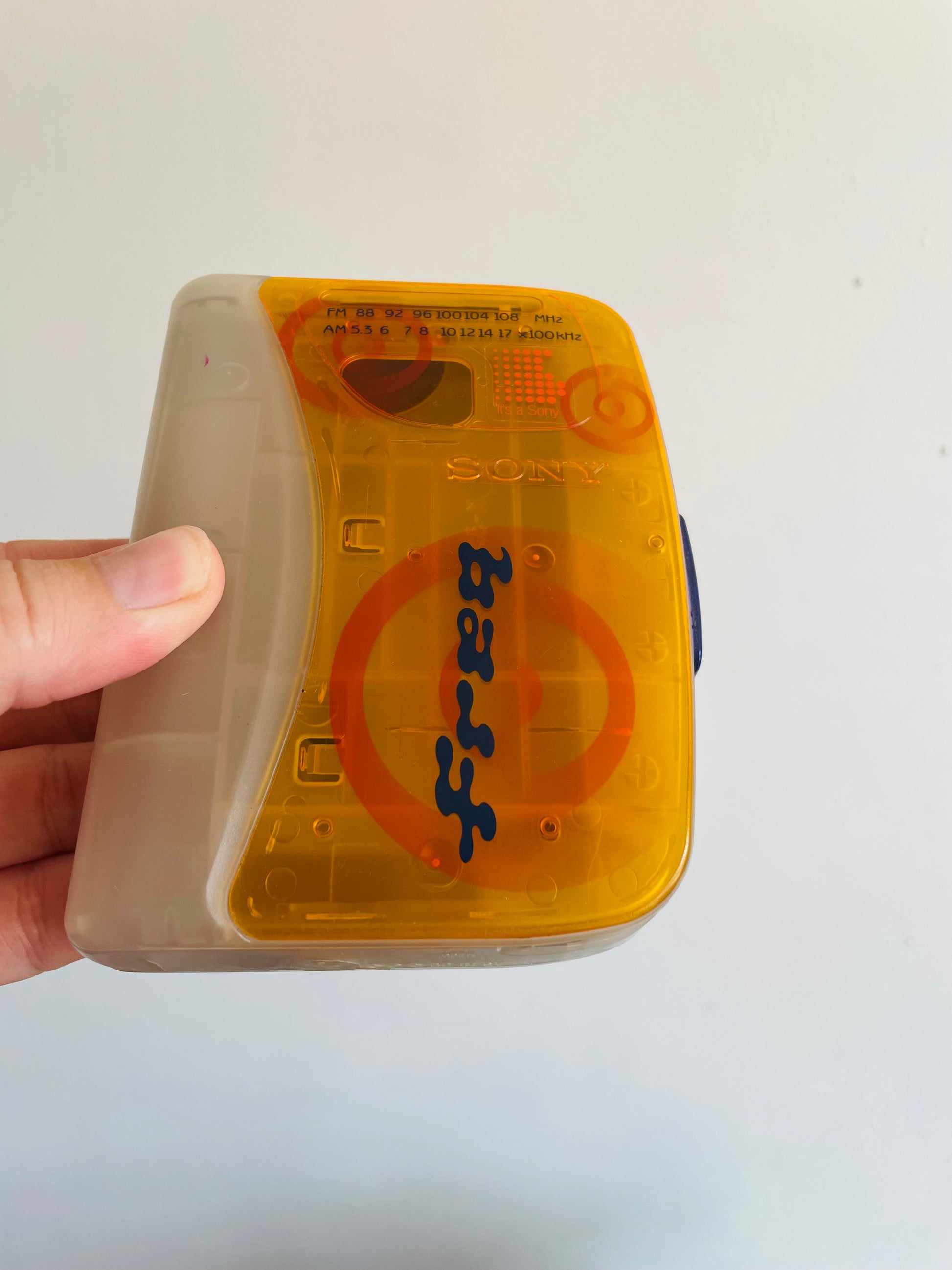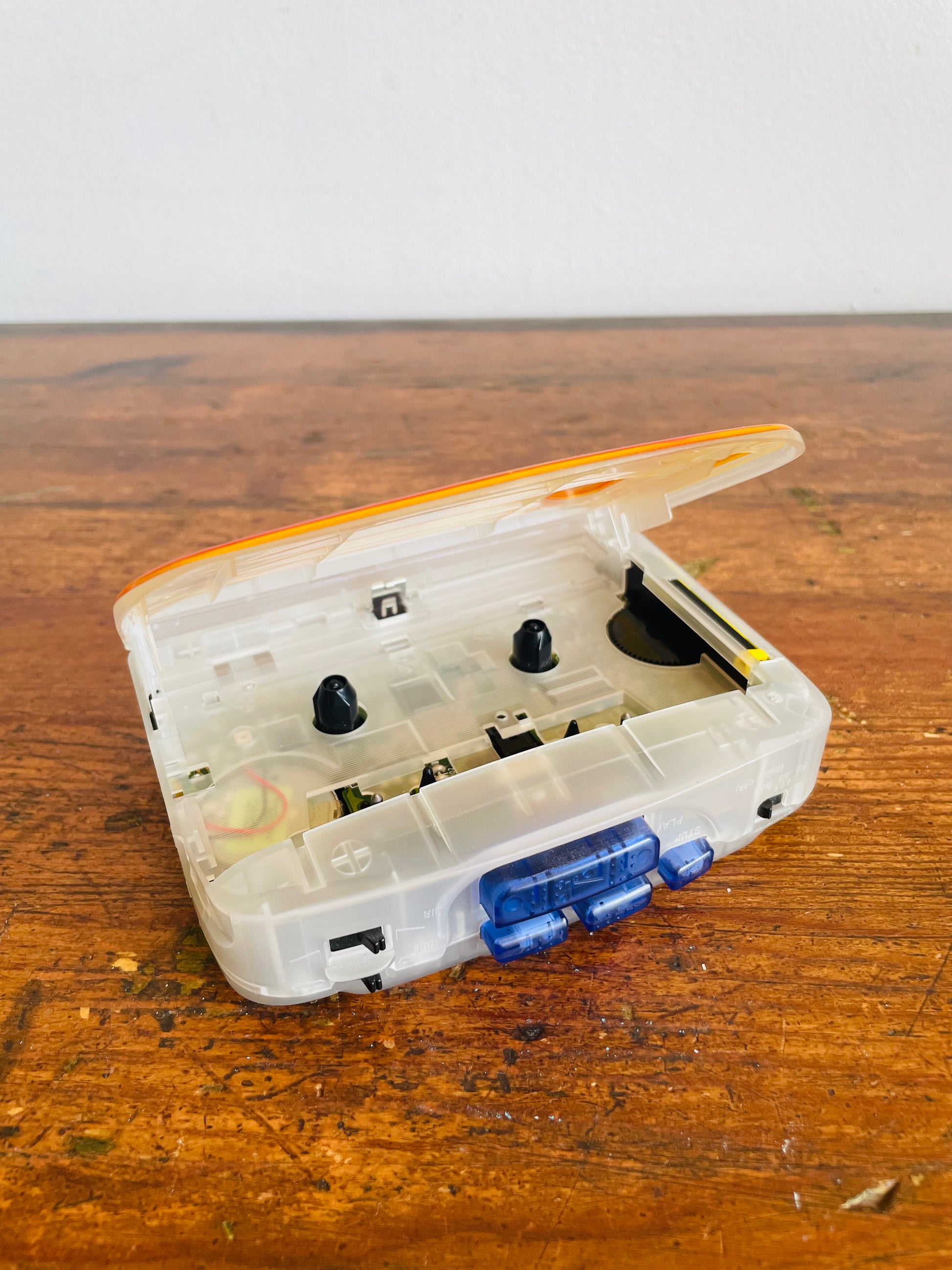 1990s Sony Freq Orange & Transparent Walkman - Radio Cassette Player WM-FQ01 - Refurbished / New Belts / Works!