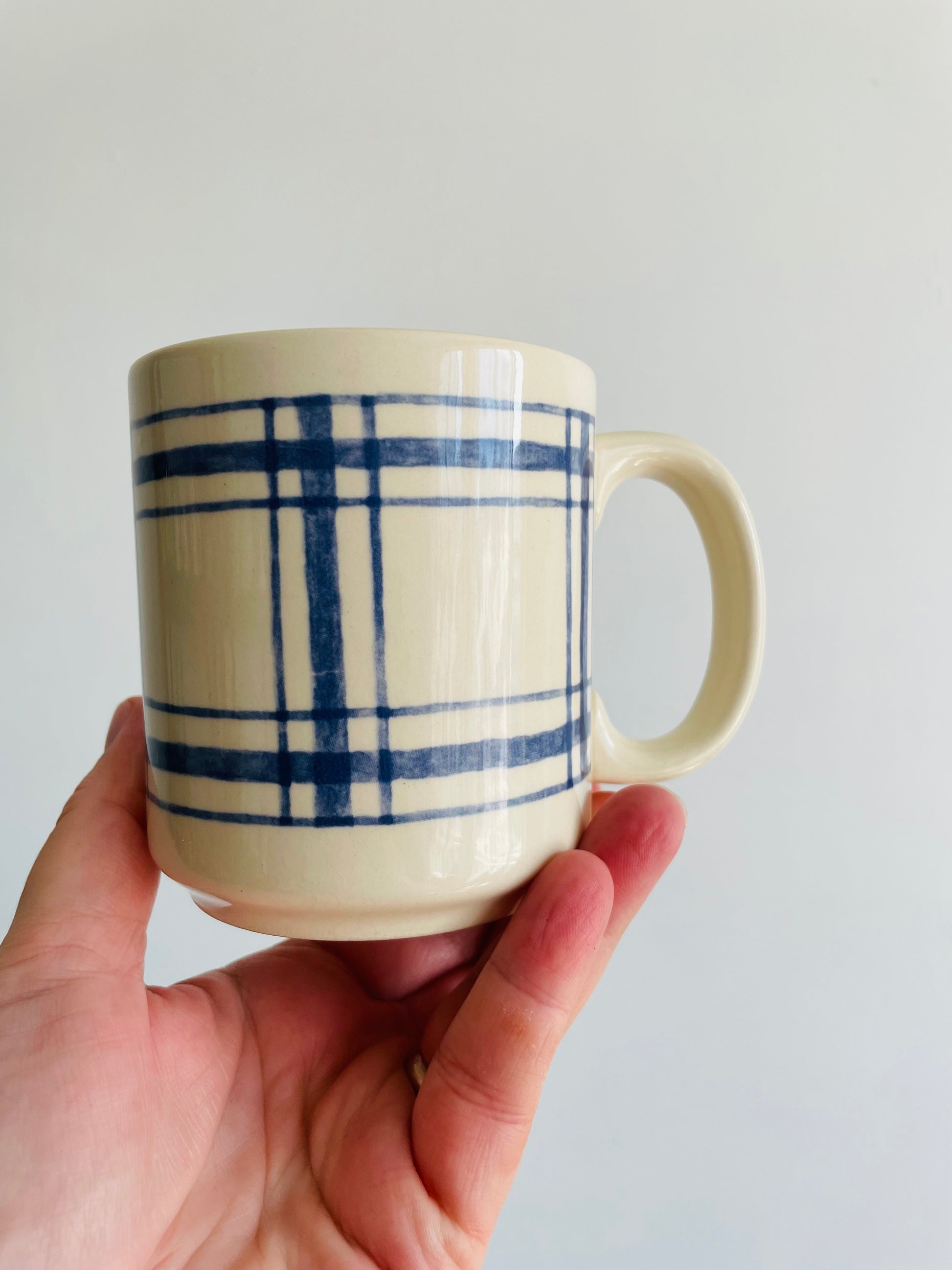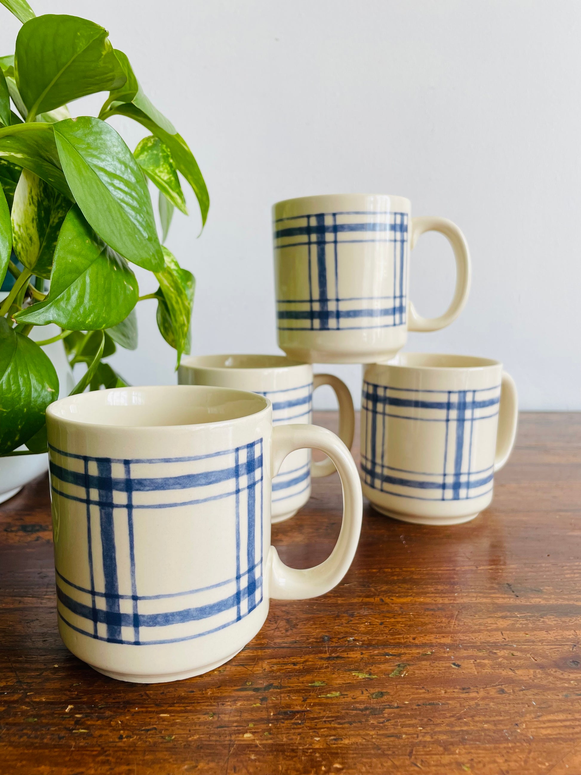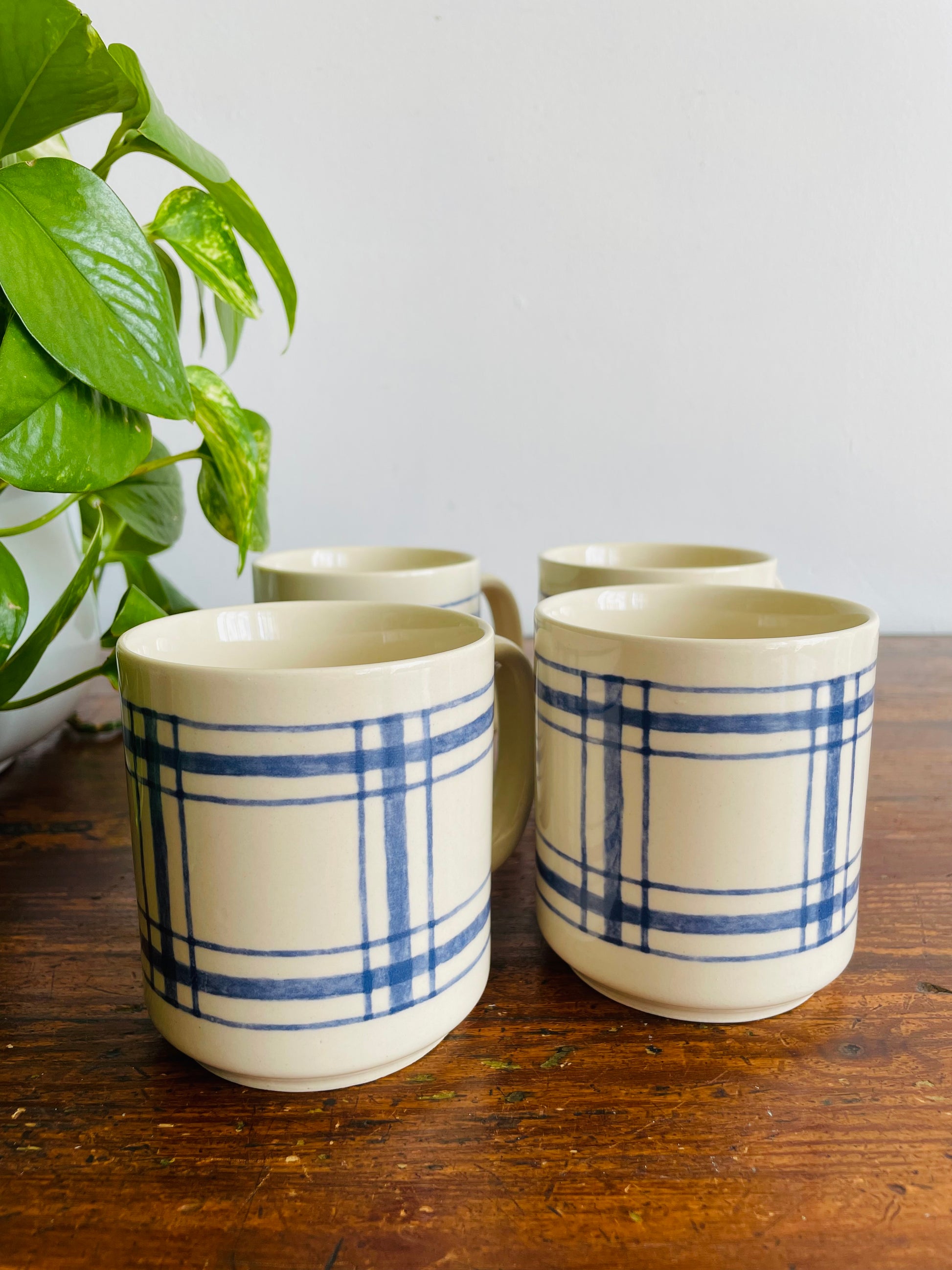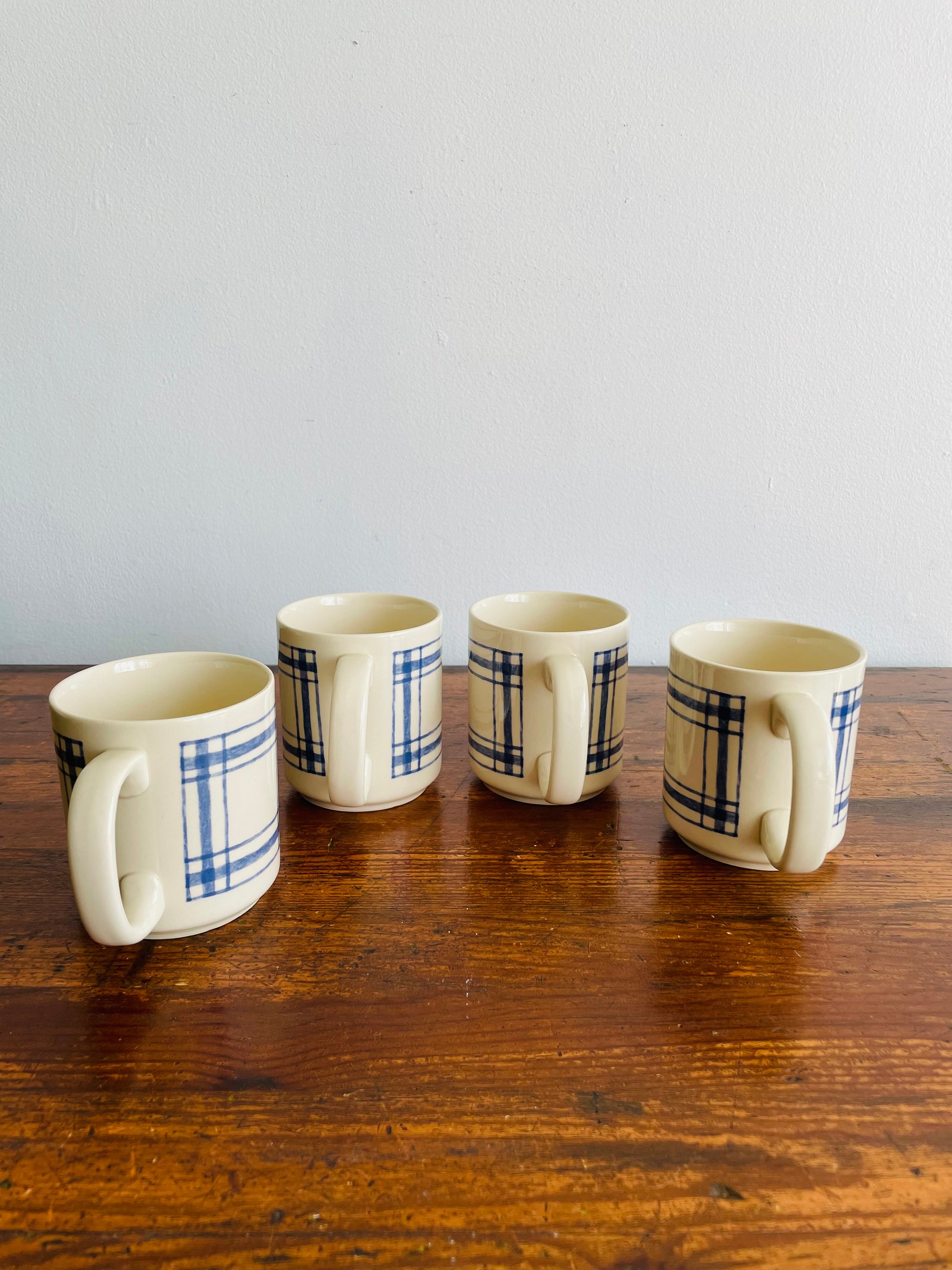 Eaton Home Blue Checkered Tartan Pattern Mugs - Set of 4 - # 1
