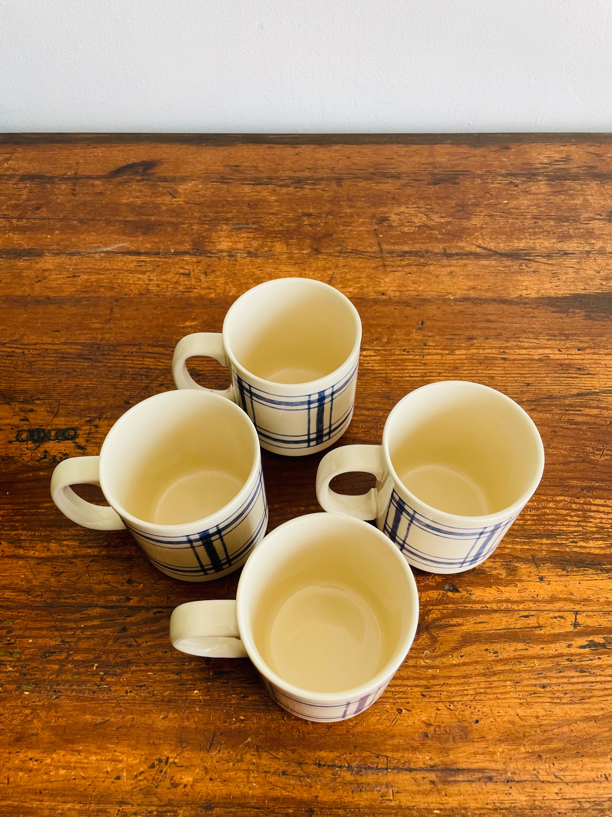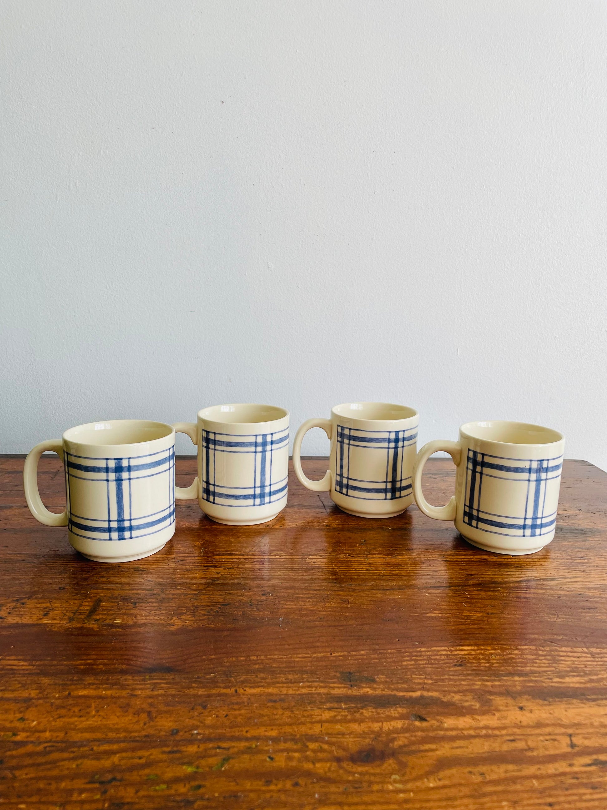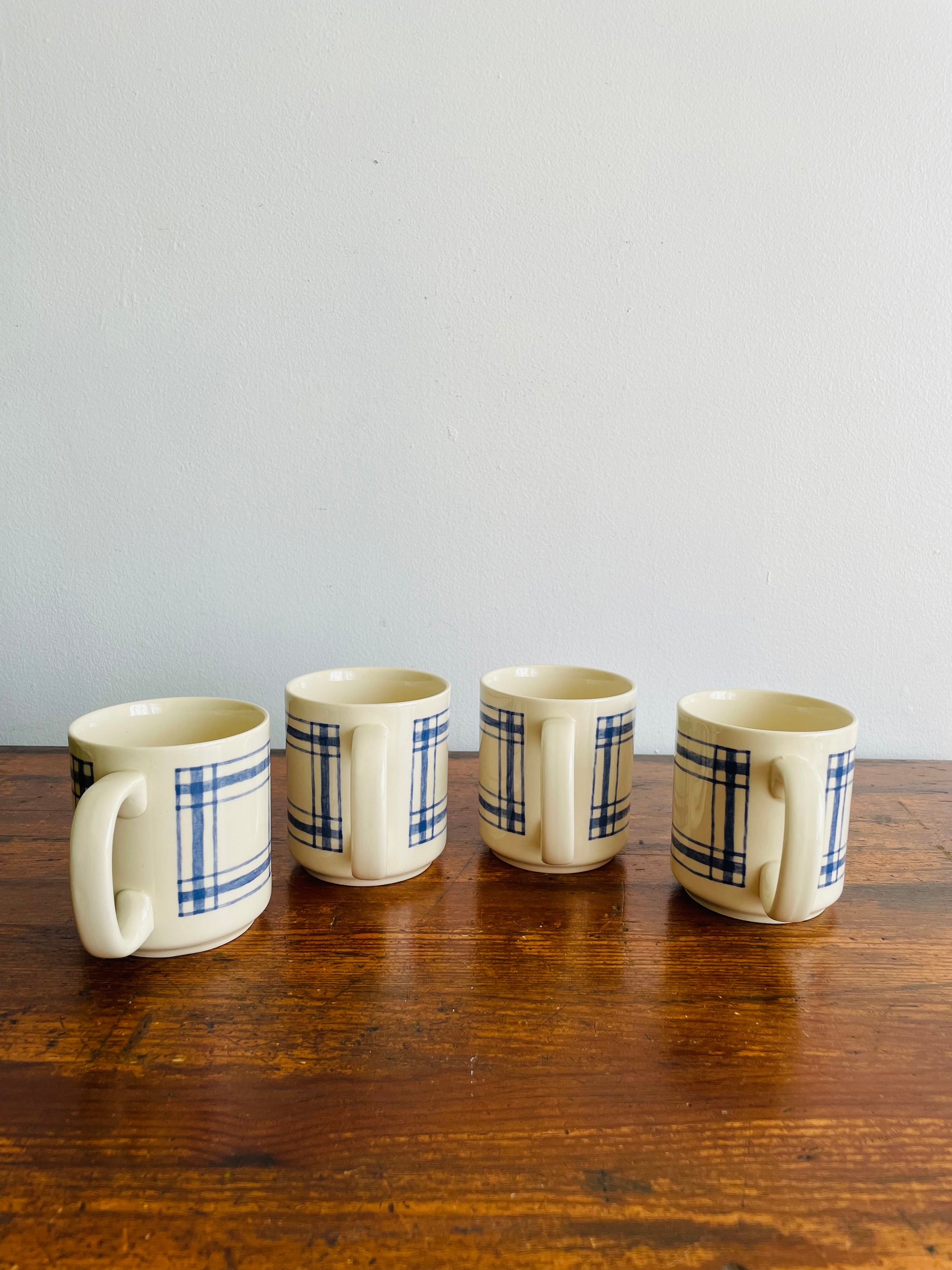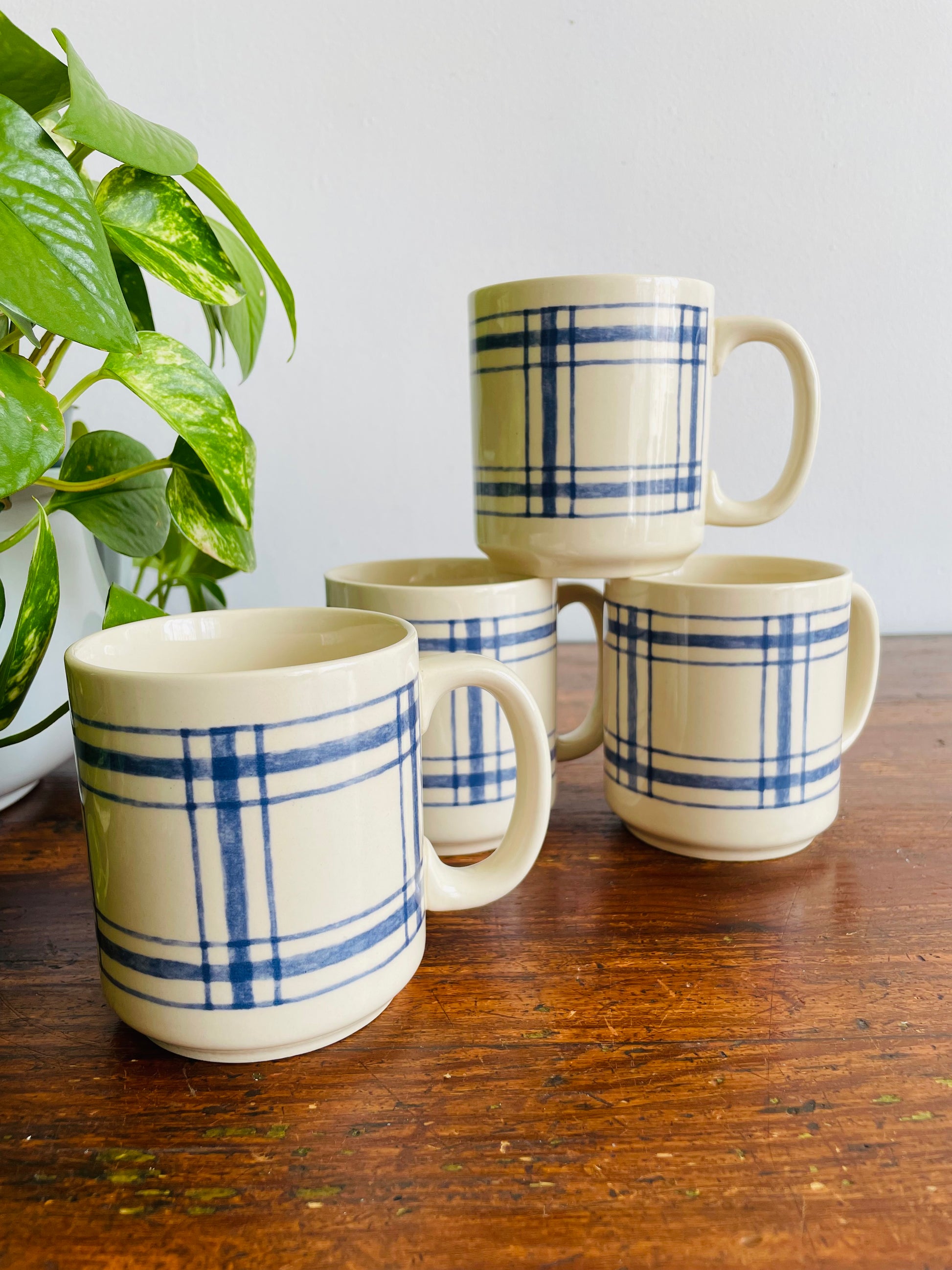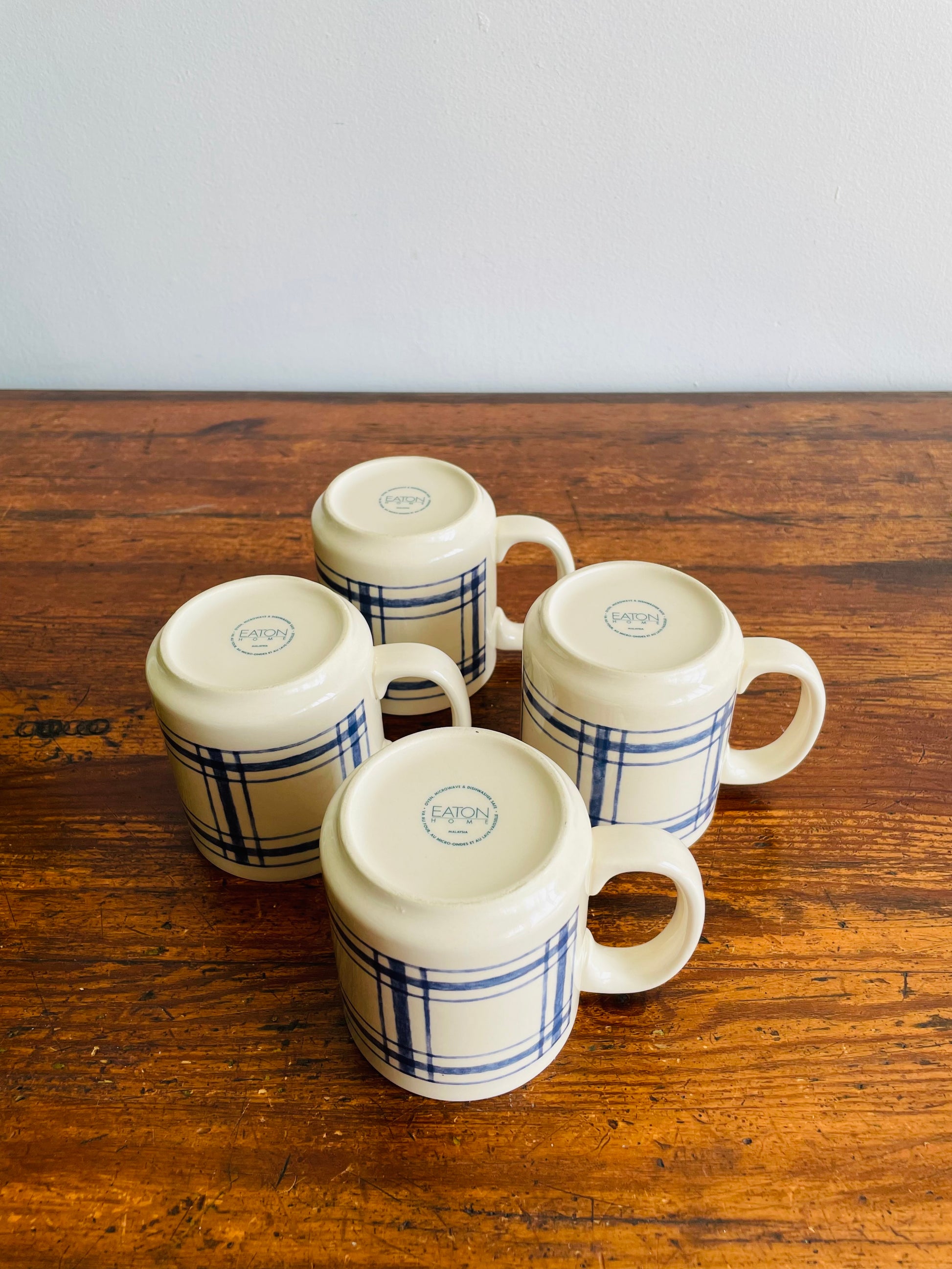 Eaton Home Blue Checkered Tartan Pattern Mugs - Set of 4 - # 2