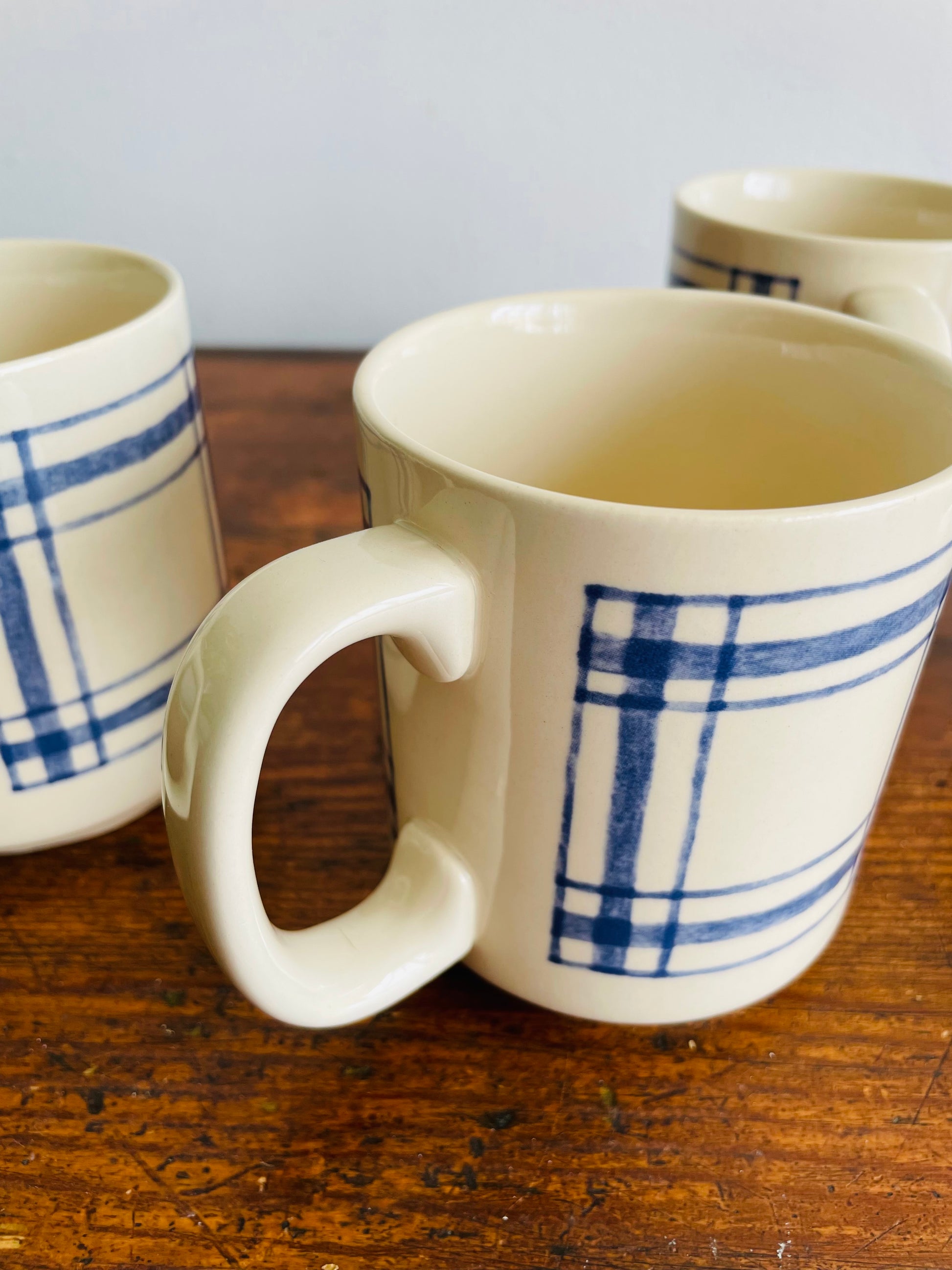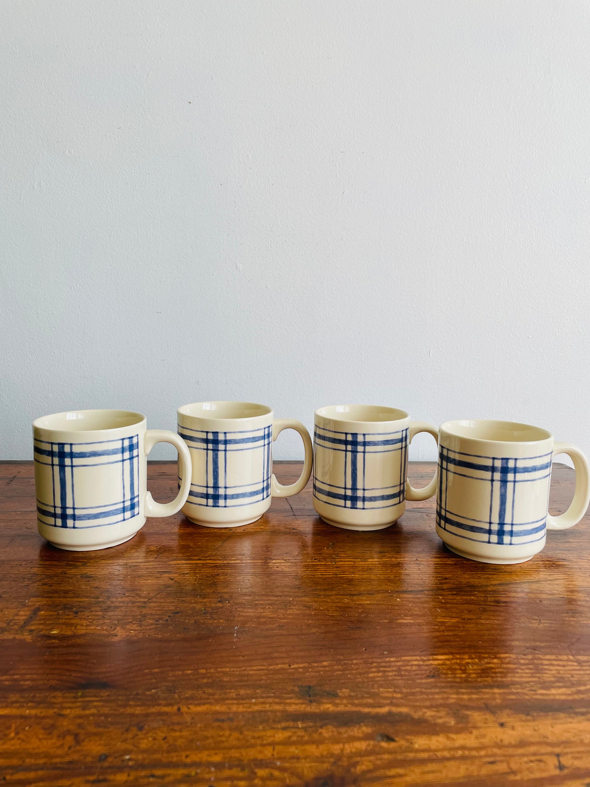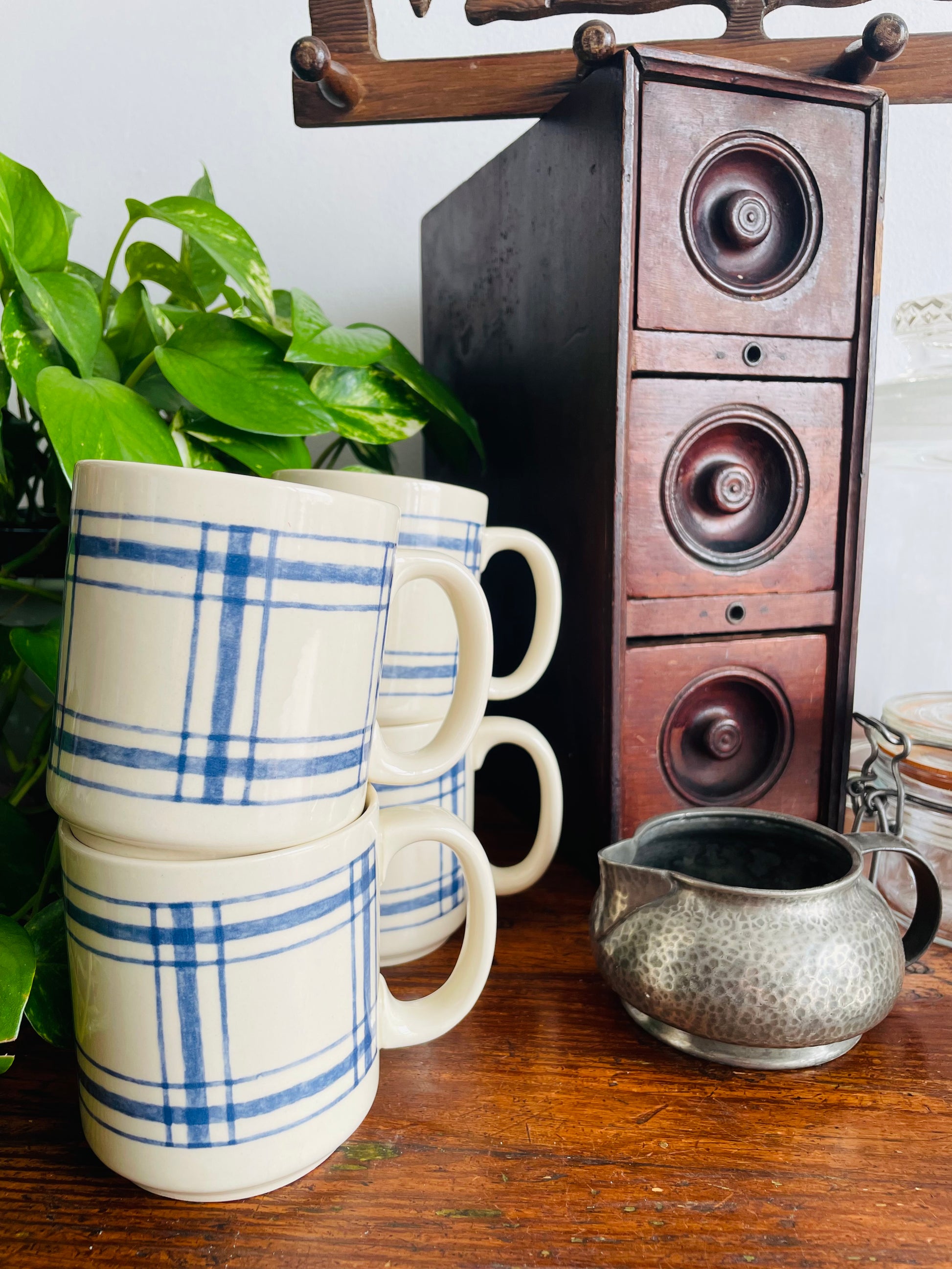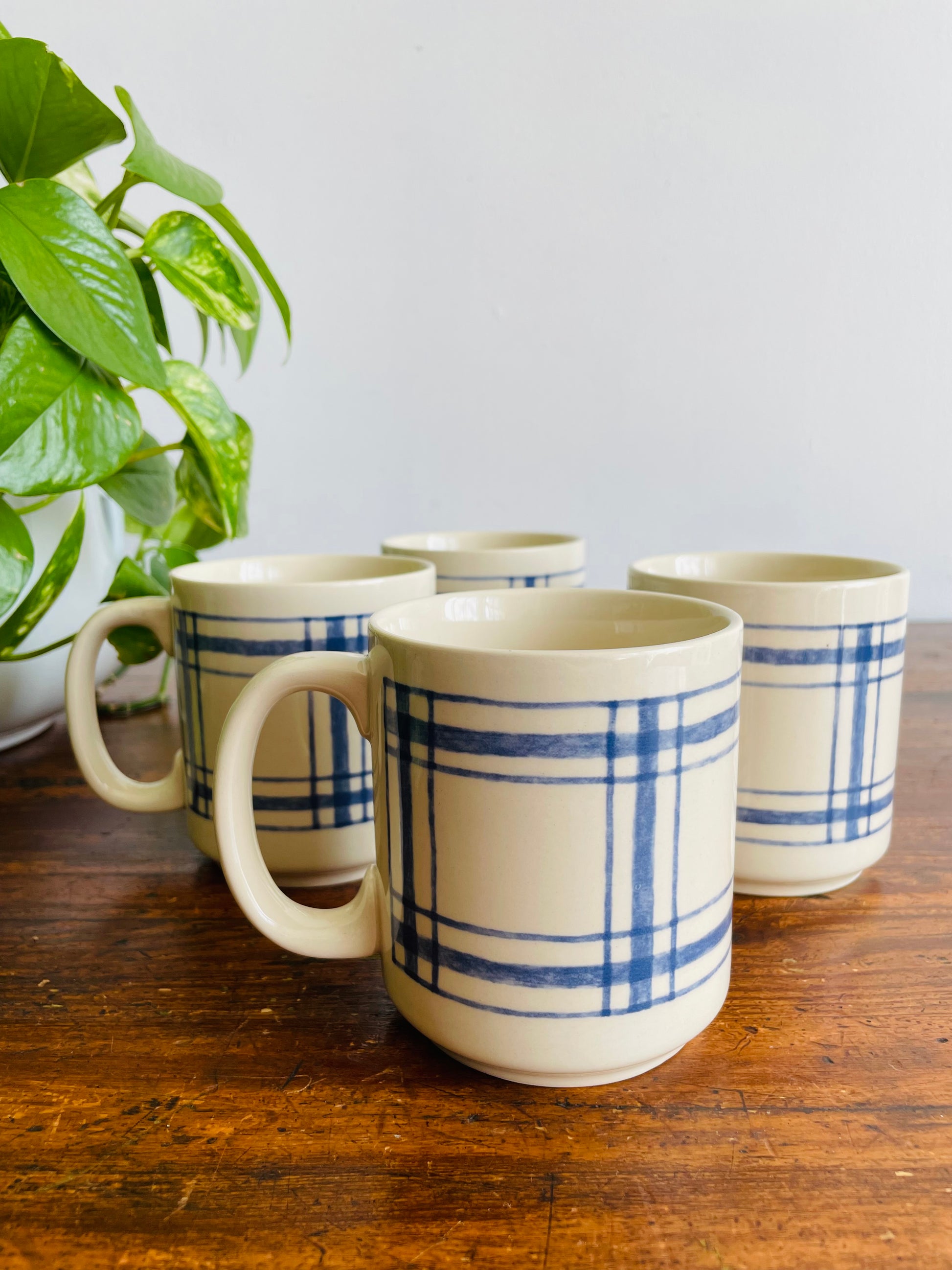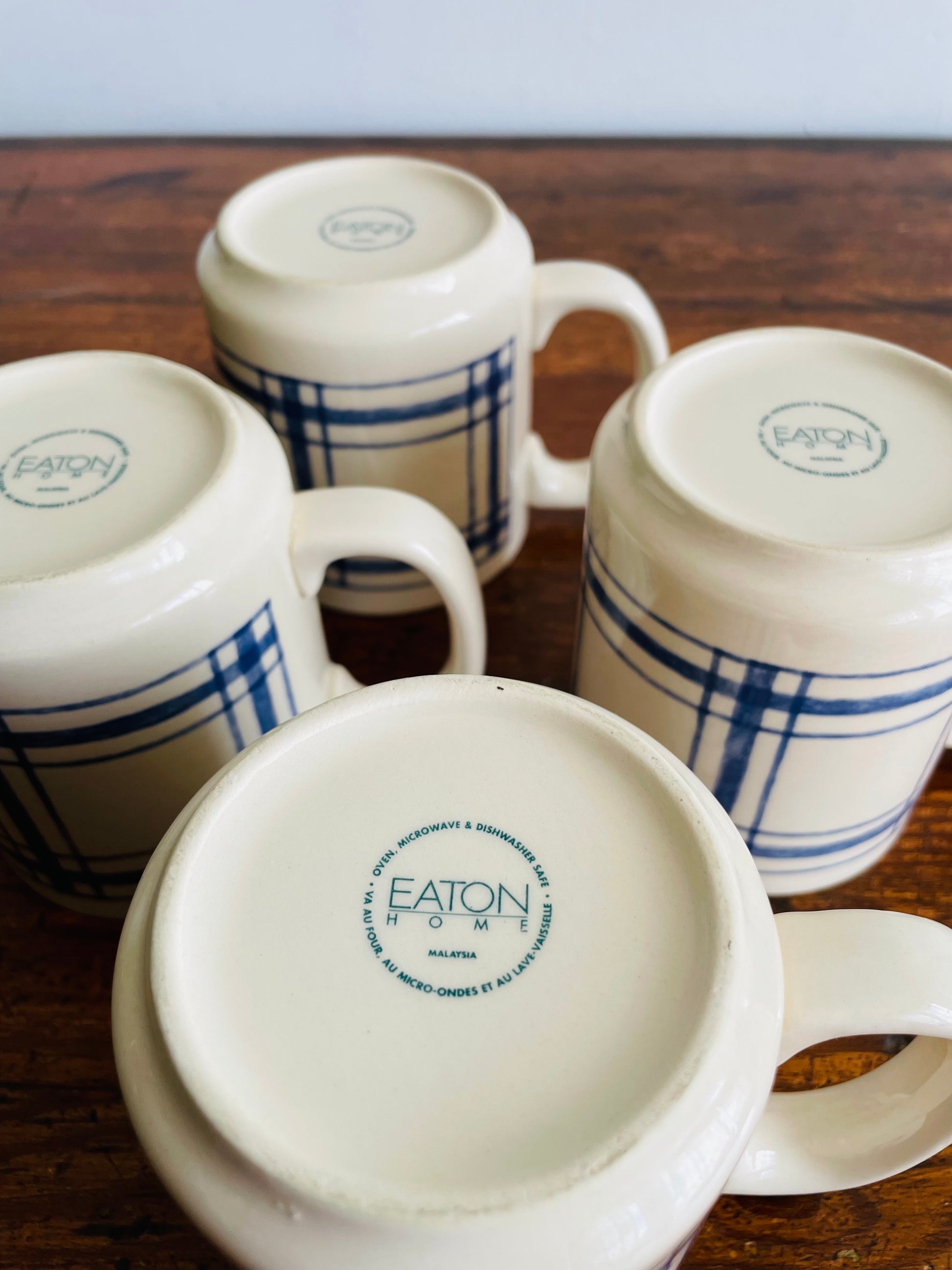 Eaton Home Blue Checkered Tartan Pattern Mugs - Set of 4 - # 2