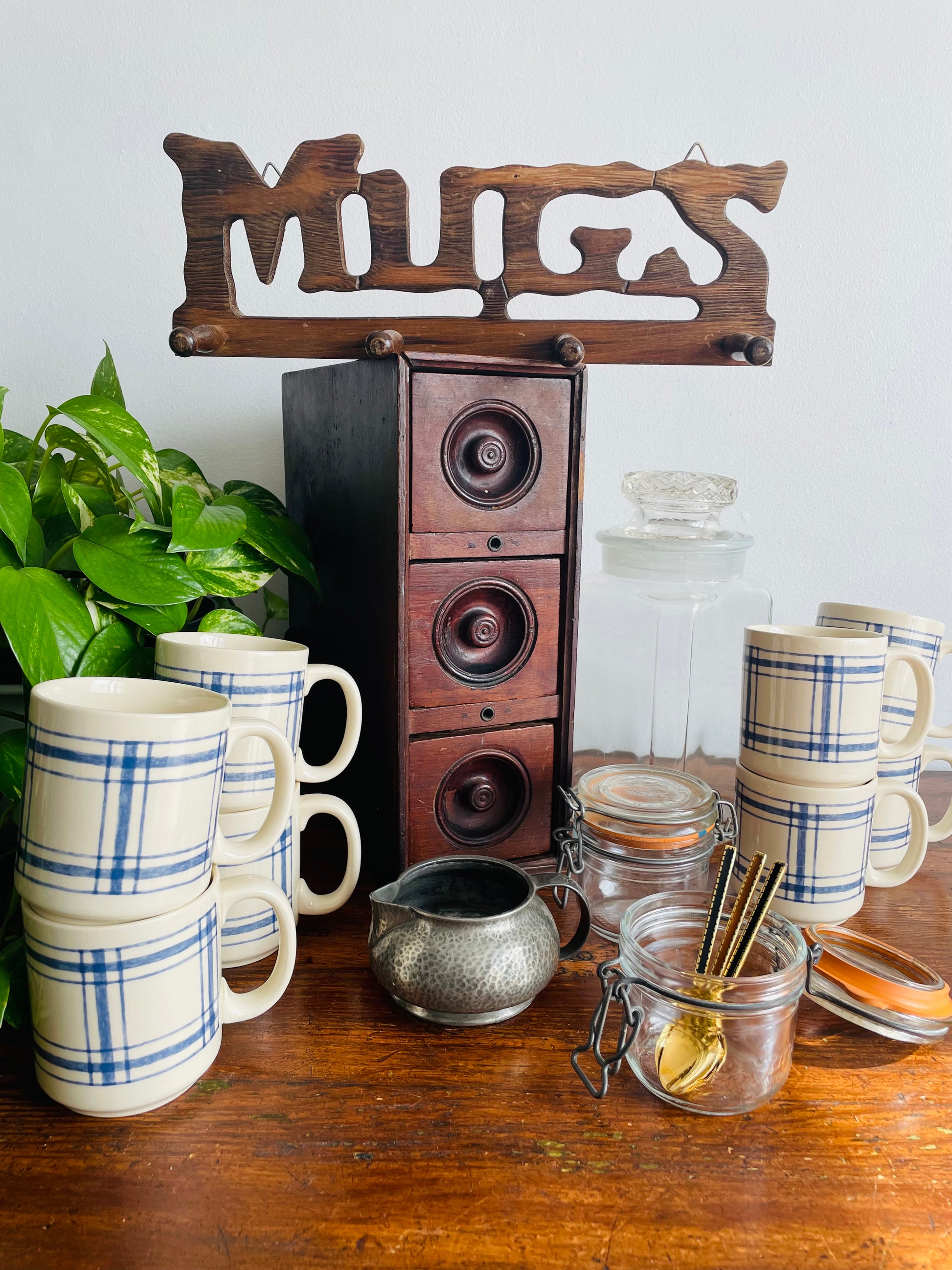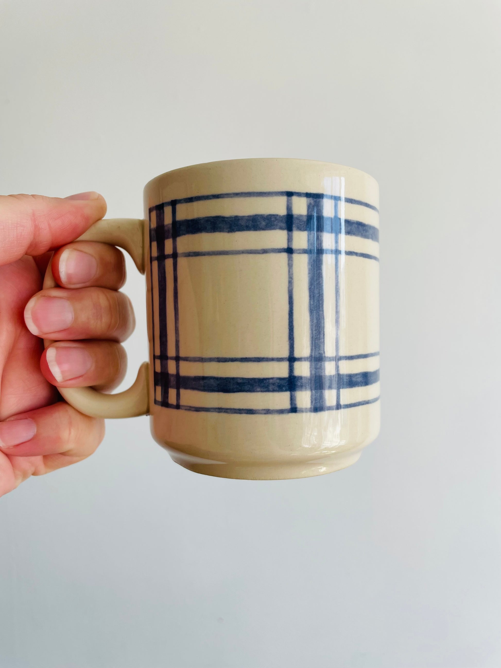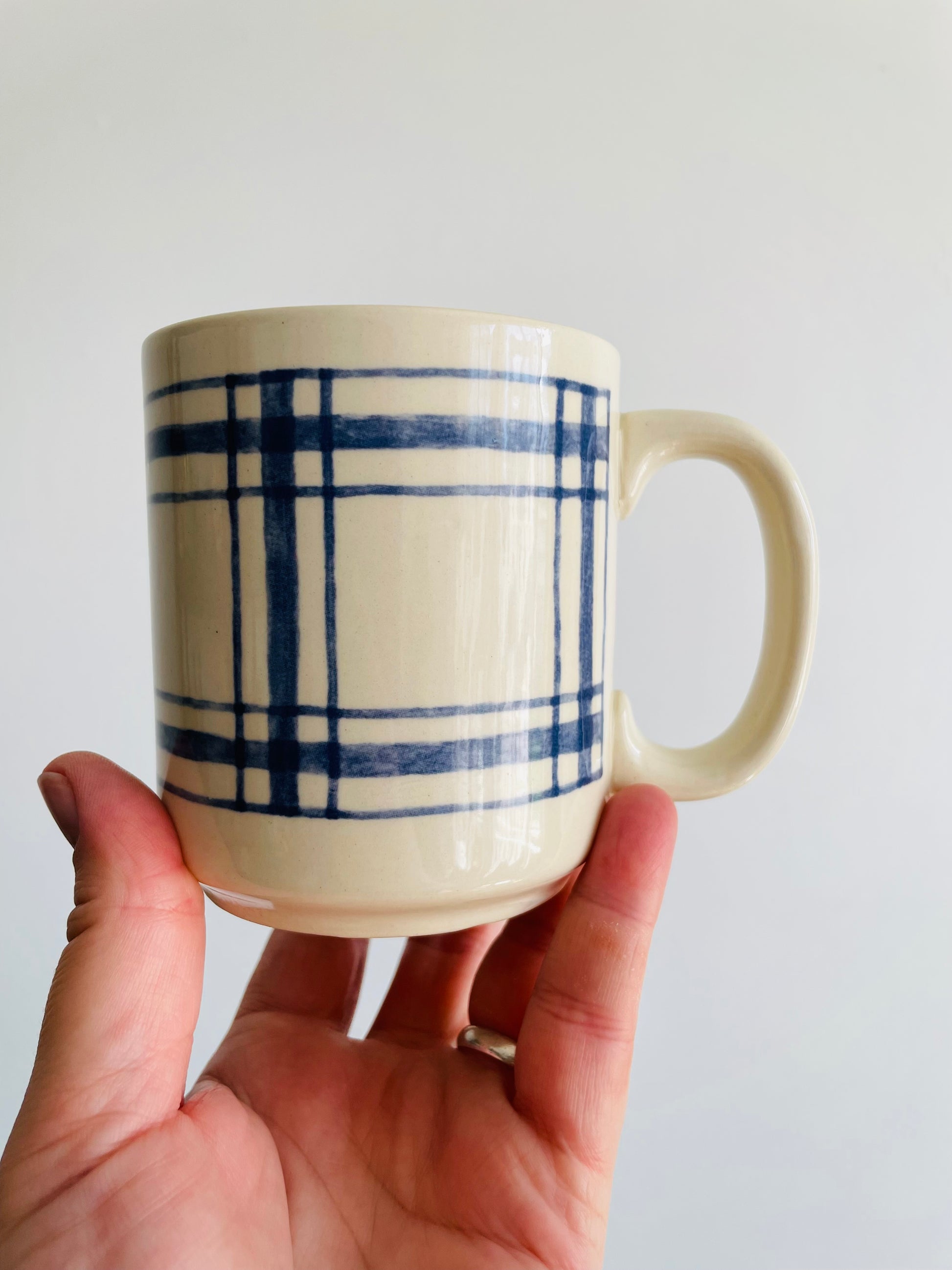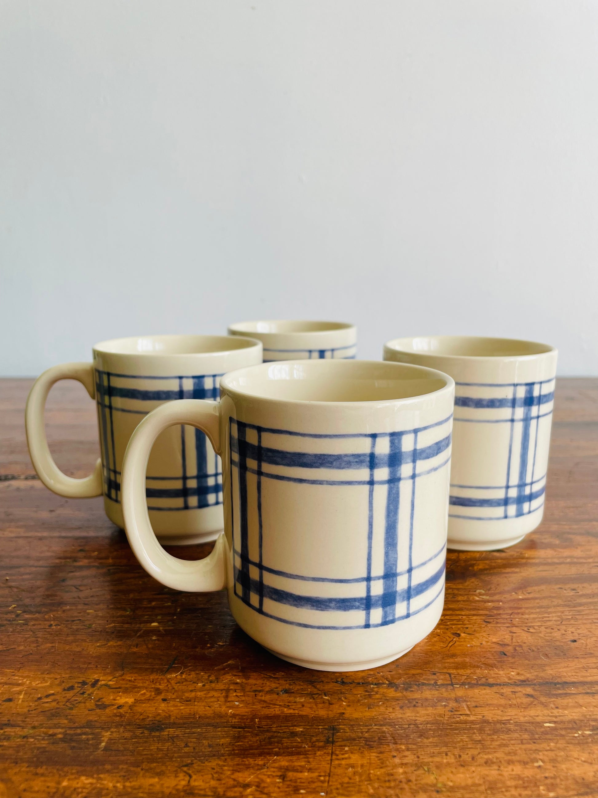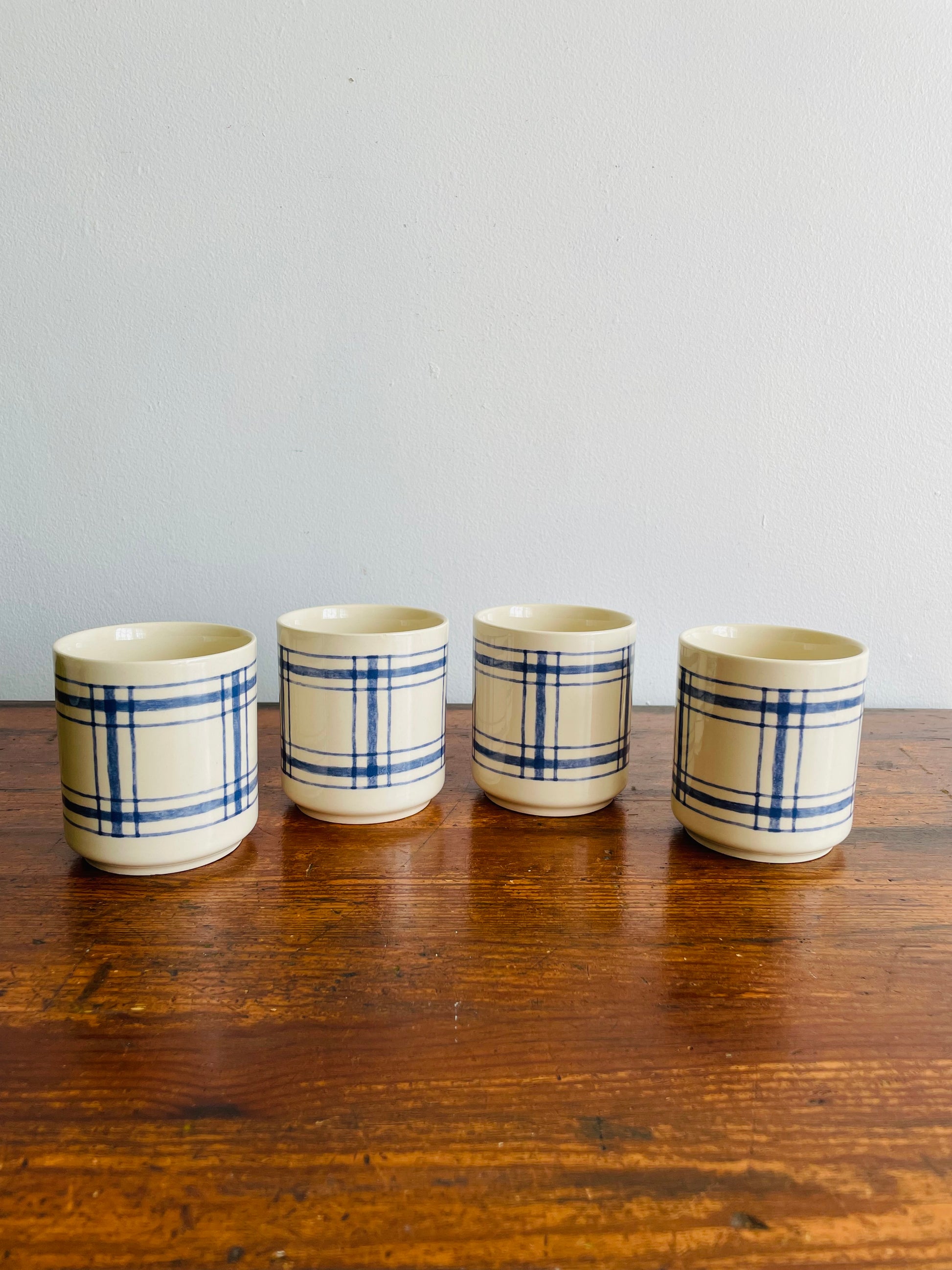 Eaton Home Blue Checkered Tartan Pattern Mugs - Set of 4 - # 2