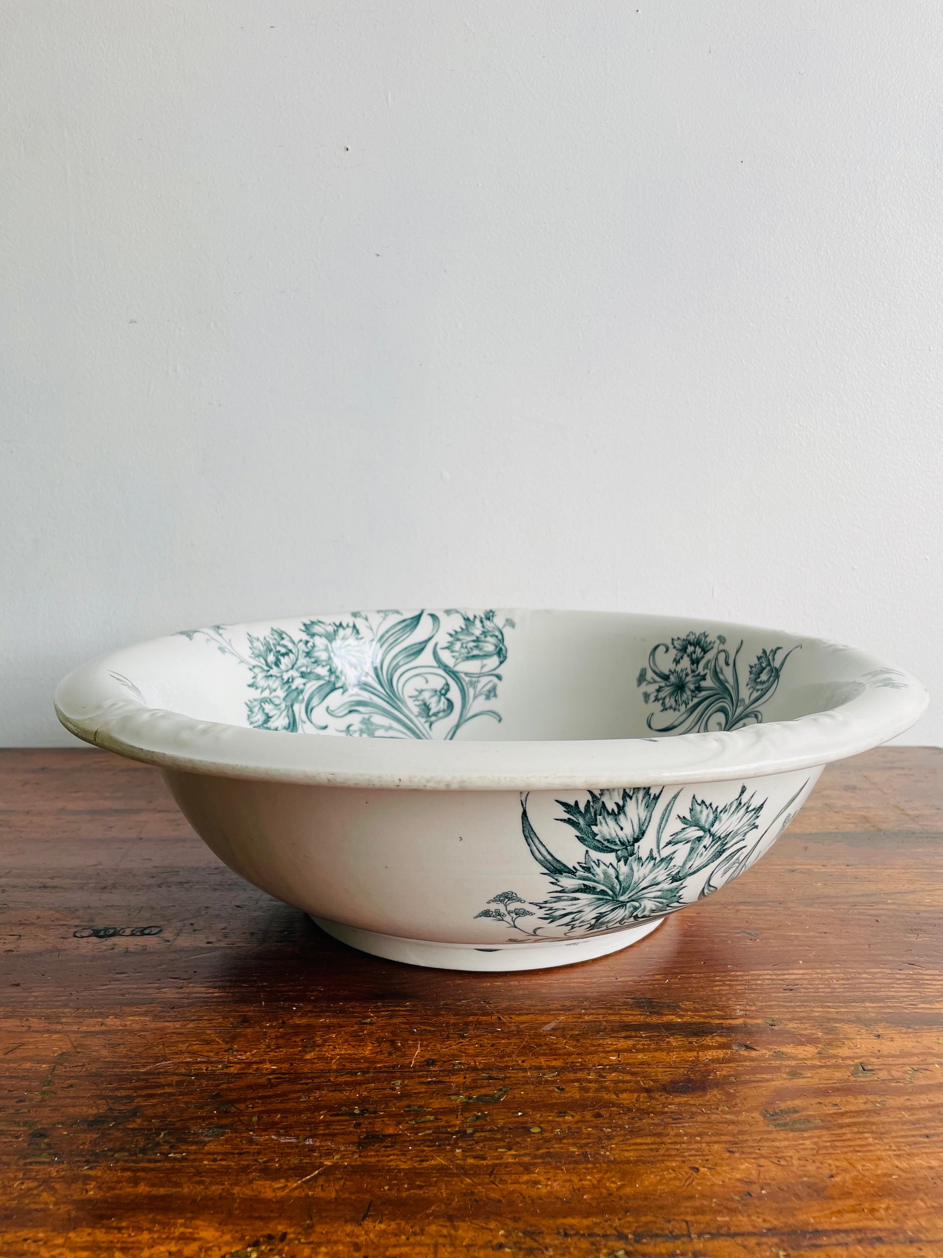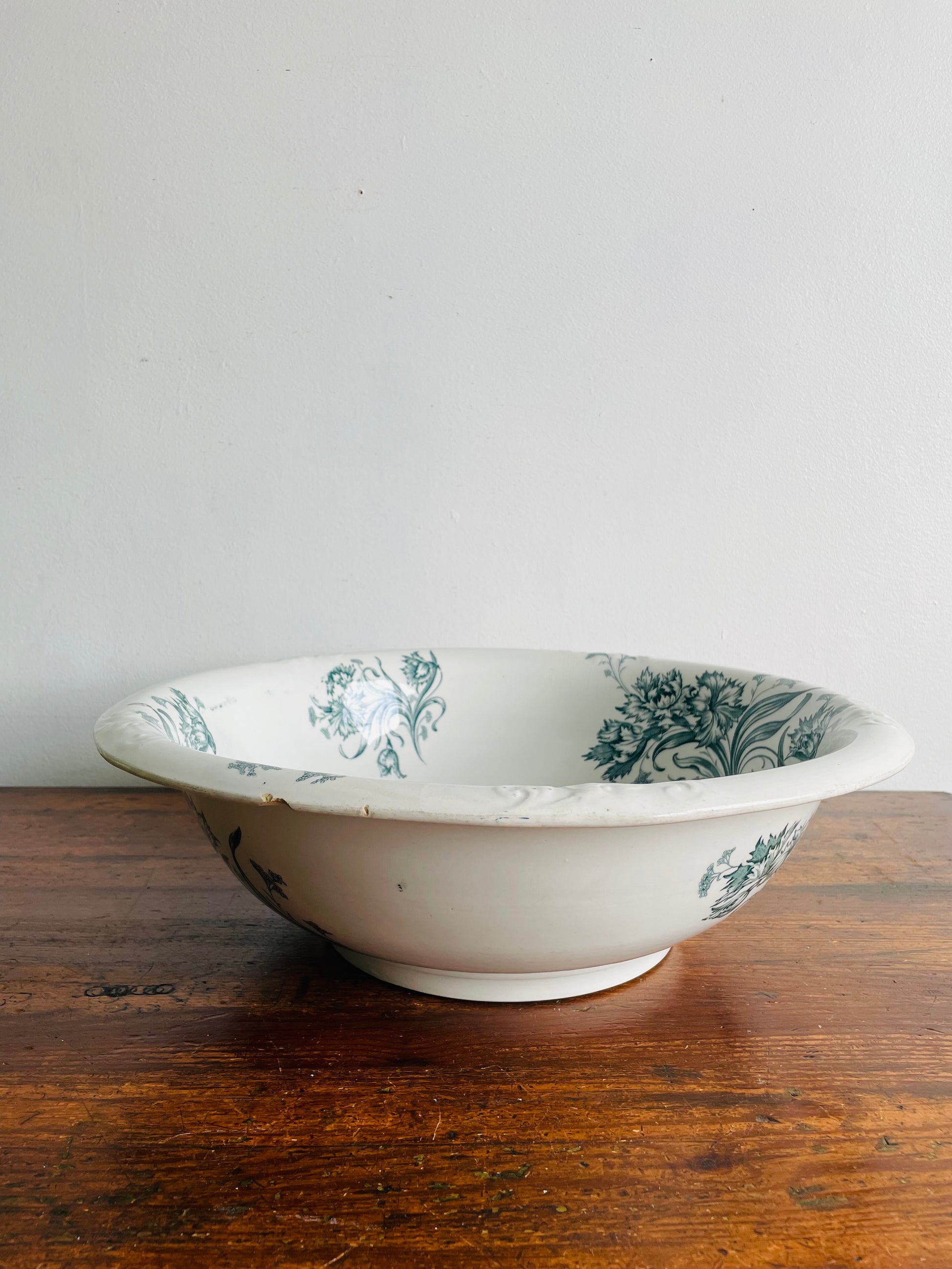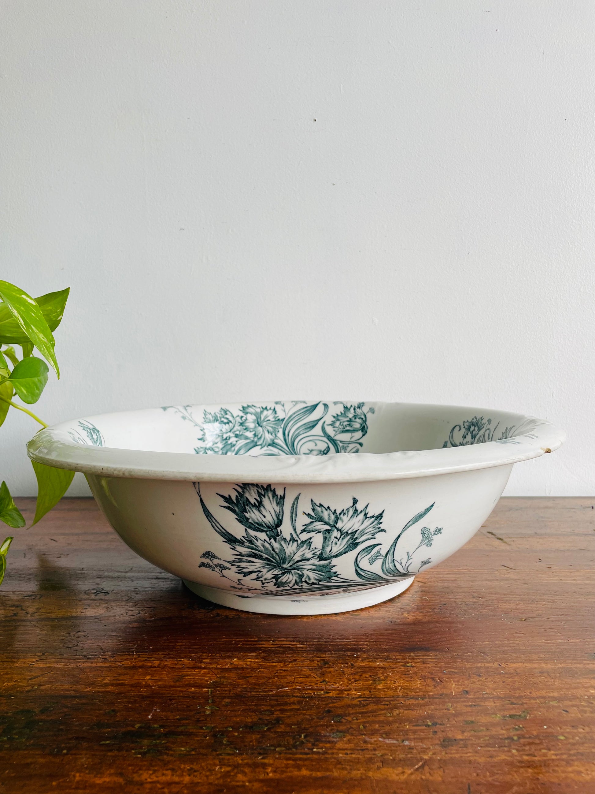 Alejandro Baker & Co. England Giant Ironstone Wash Basin Bowl with Blue Flower Pattern