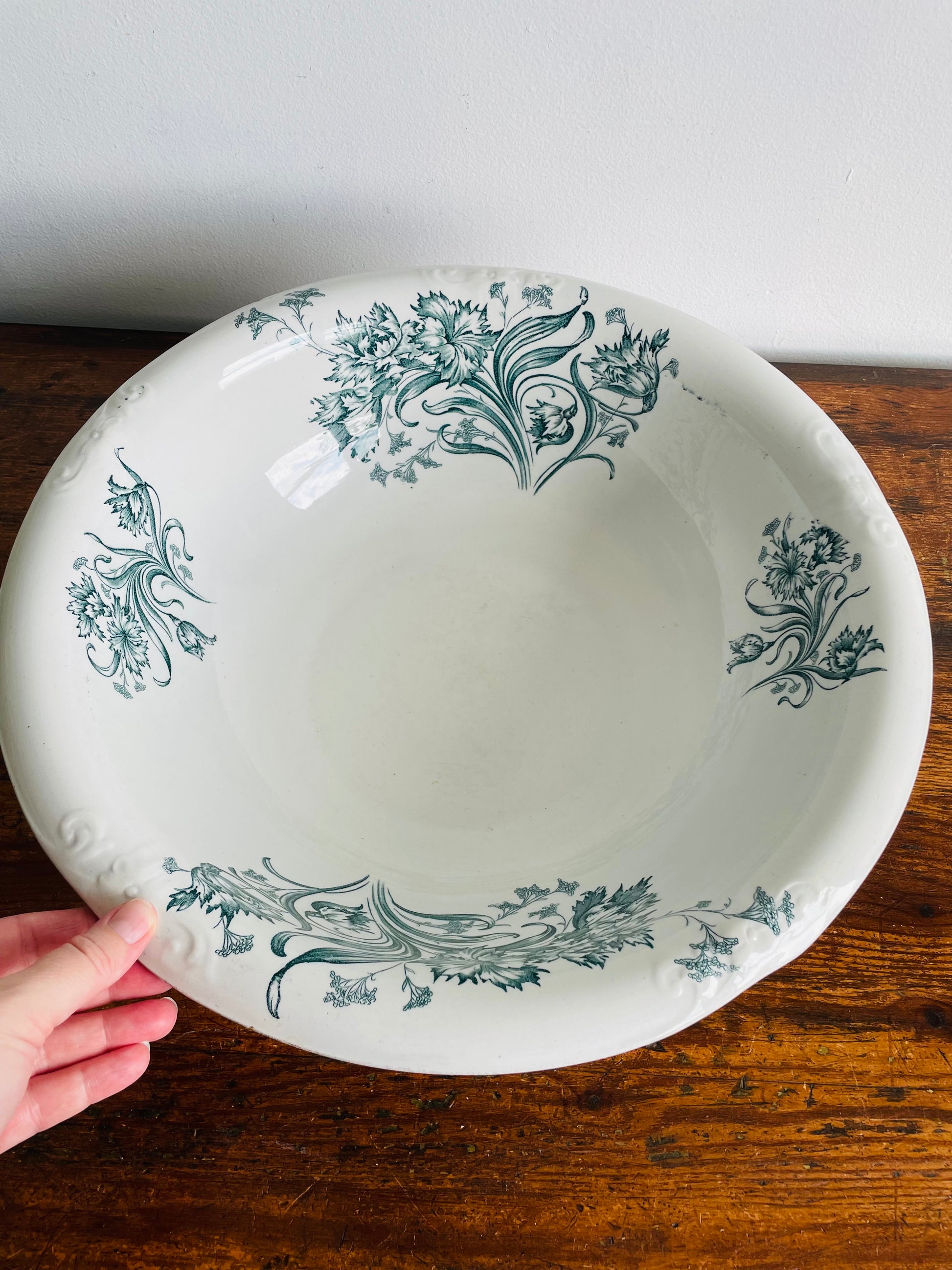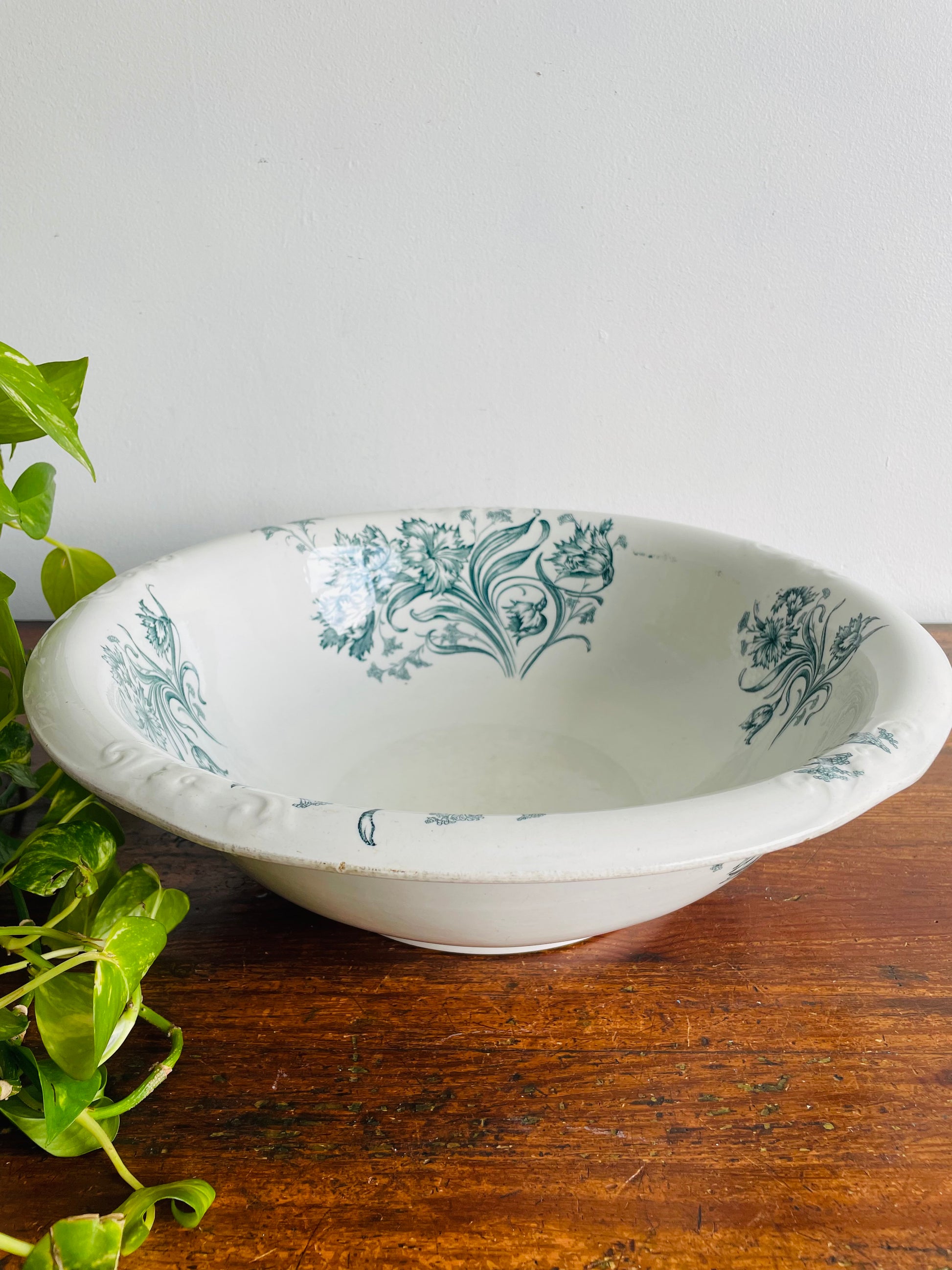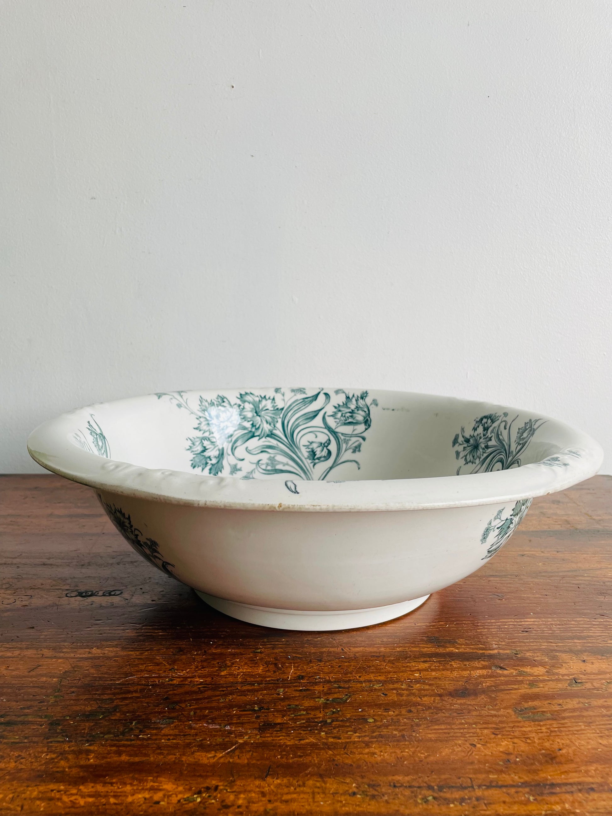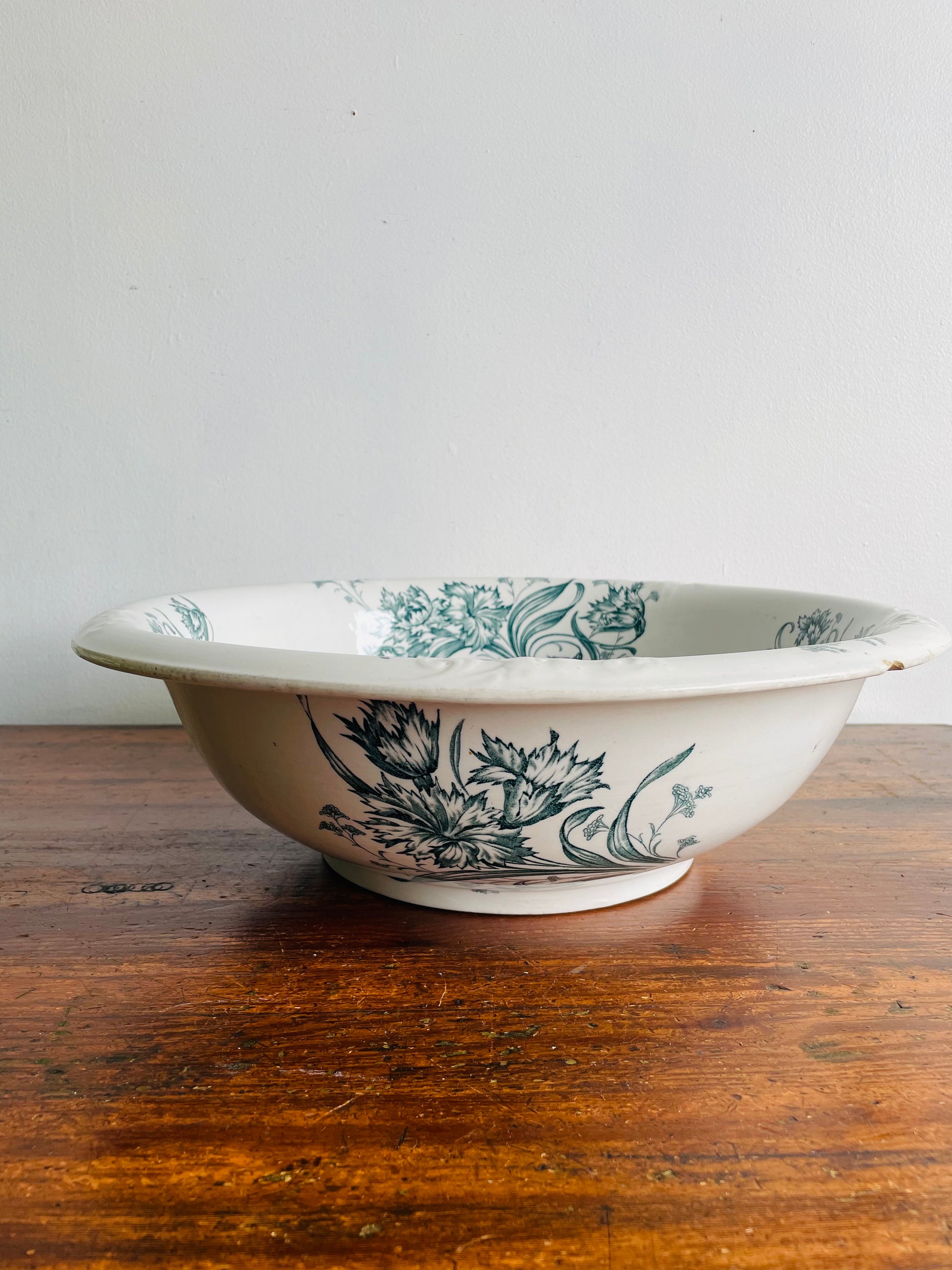 Alejandro Baker & Co. England Giant Ironstone Wash Basin Bowl with Blue Flower Pattern