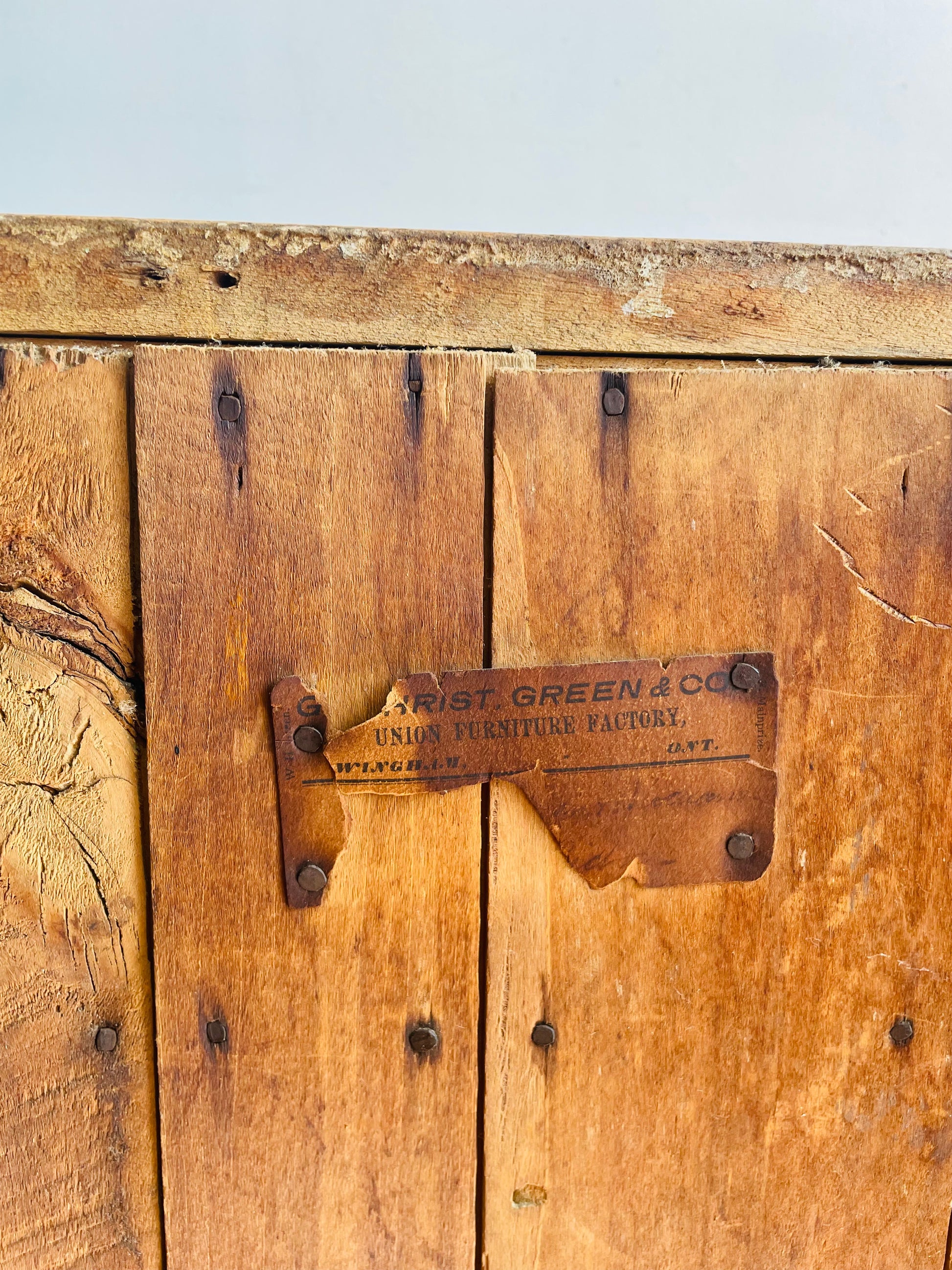 Antique 1800s Pine Wood Cabinet - Gilchrist Green & Co. Union Furniture Factory Wingham, Ontario - PICK-UP ONLY