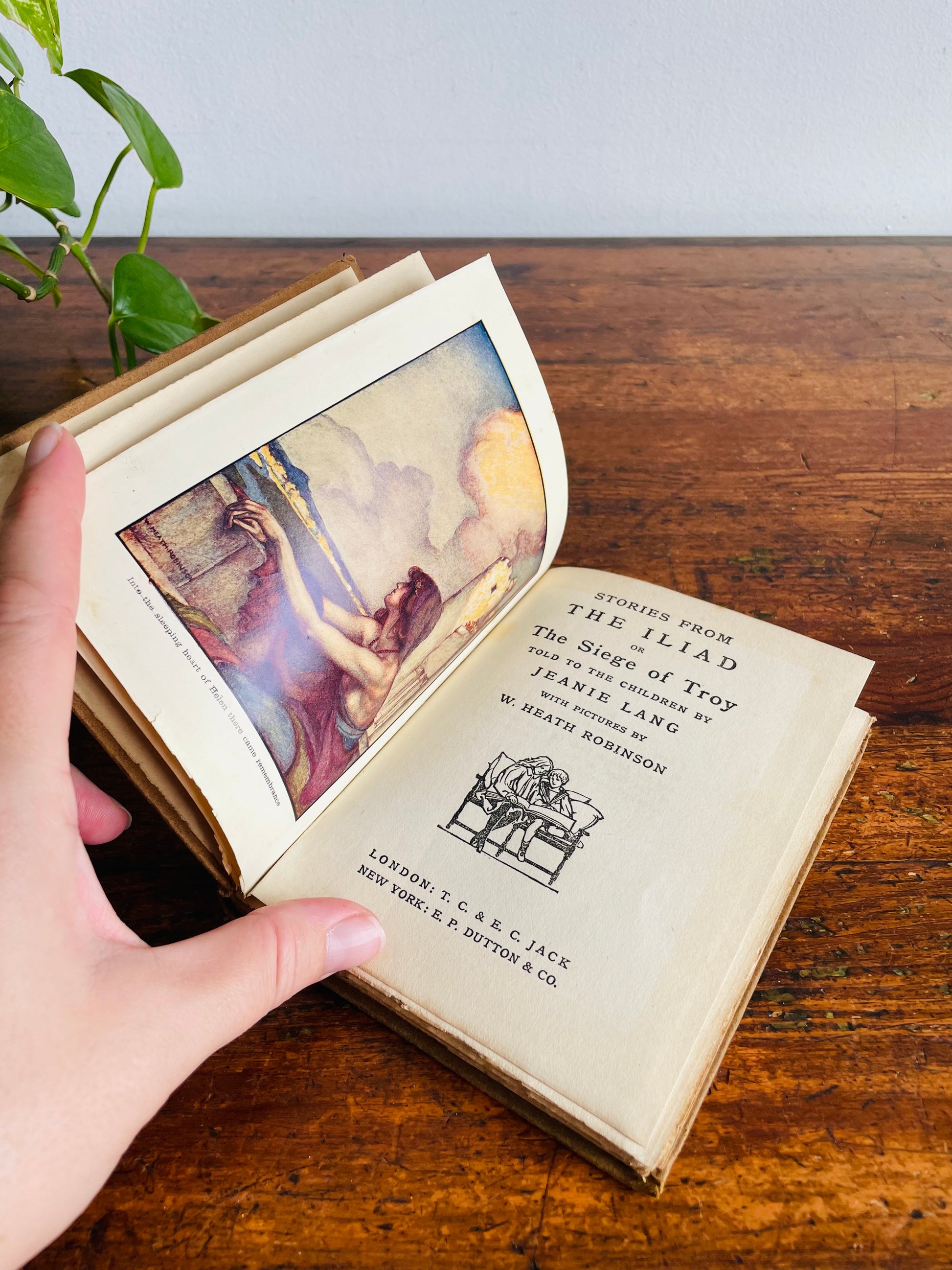 Antique Early 1900s Stories from The Iliad Hardcover Pocket Book - Told to the Children Series - Jeanie Lang - Pictures by W. Heath Robinson