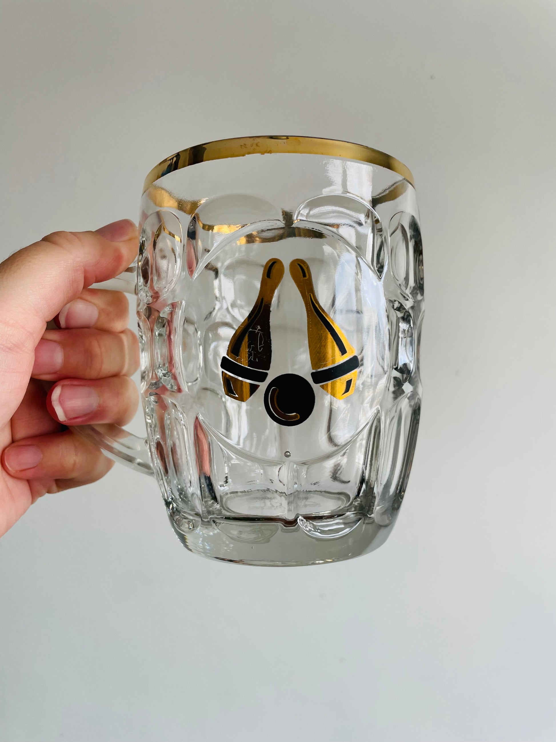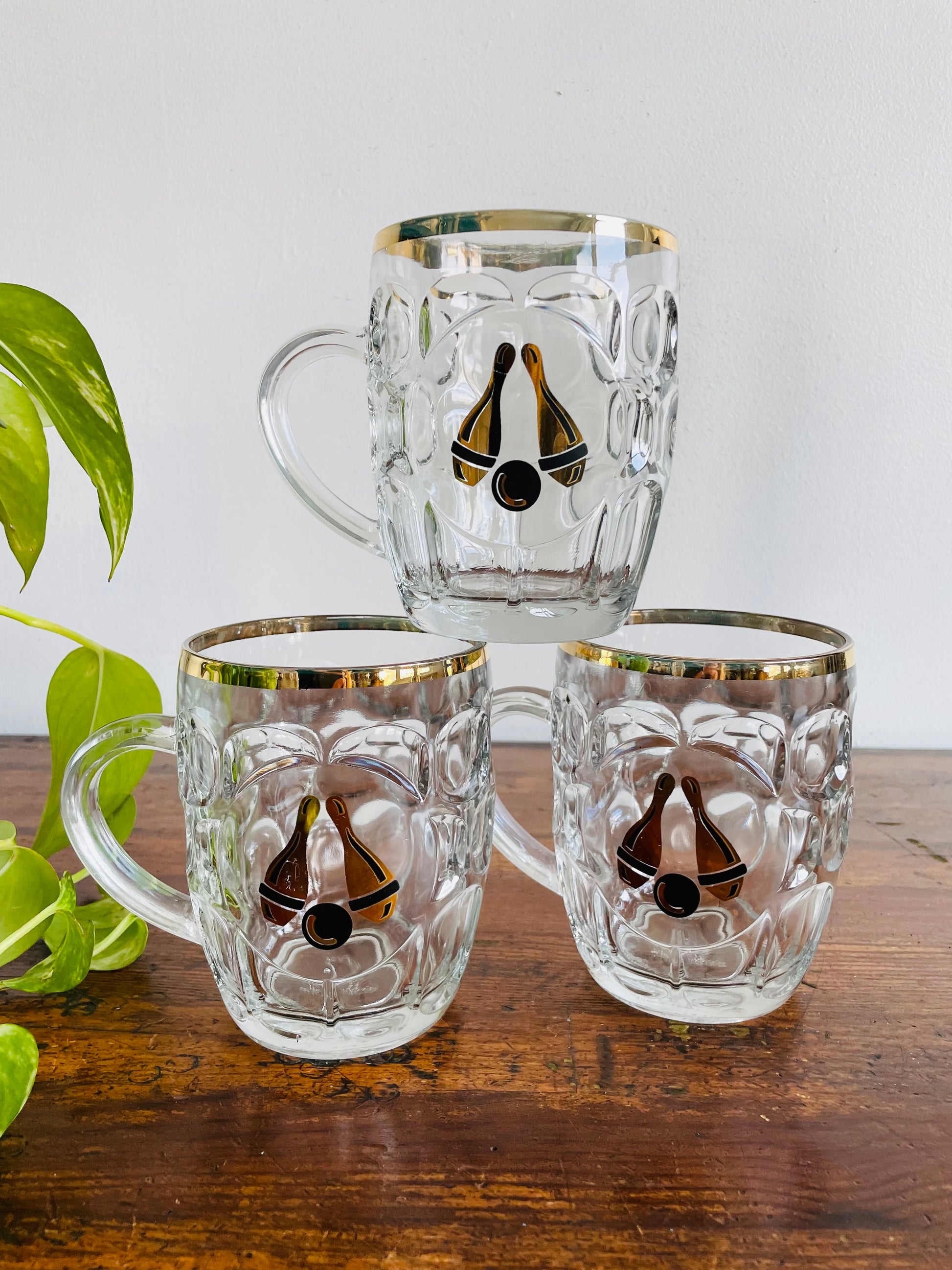 Beaverhead Glass Beer Mug Tankard with Bowling Graphic - Made in England - Set of 3