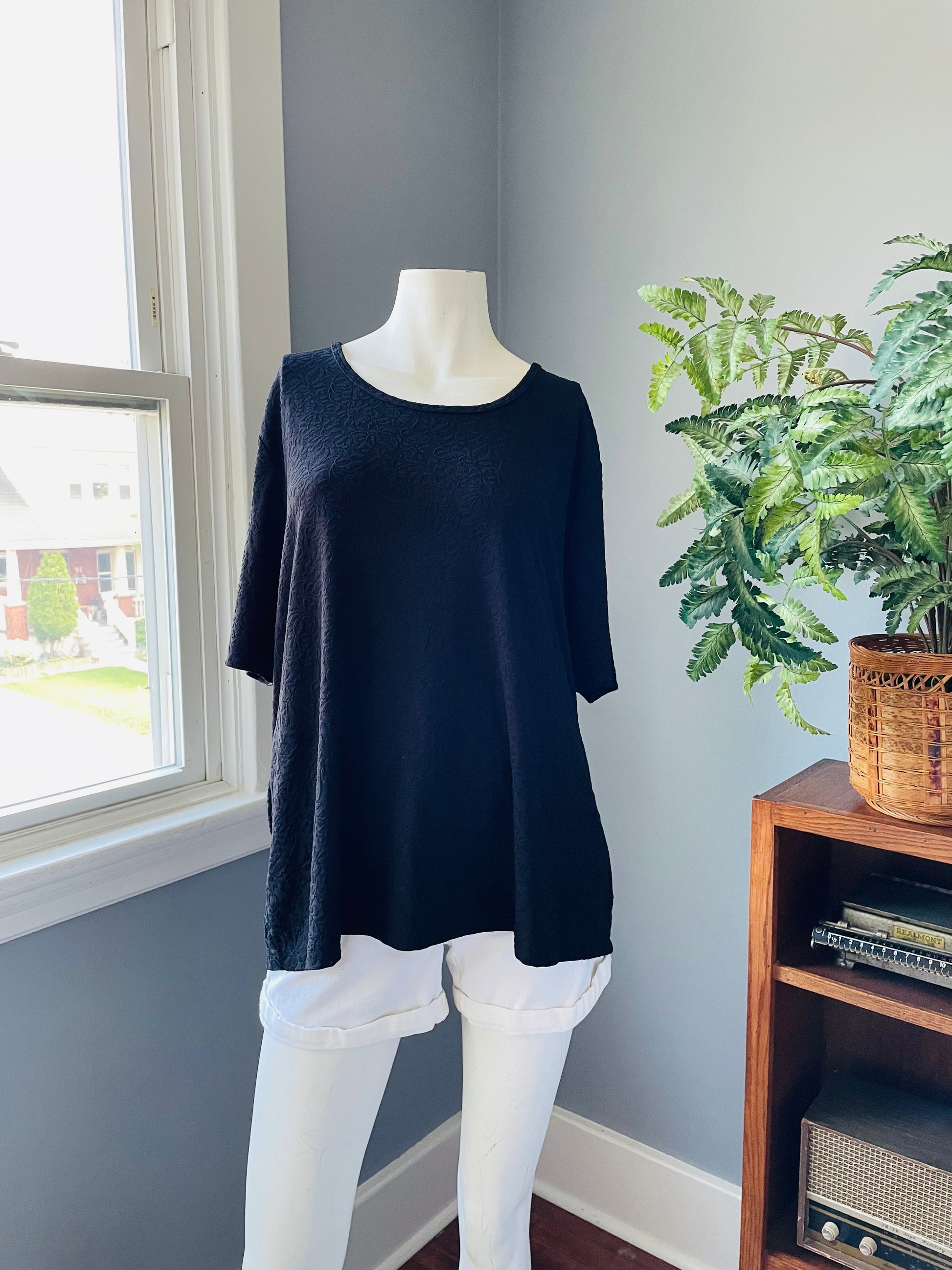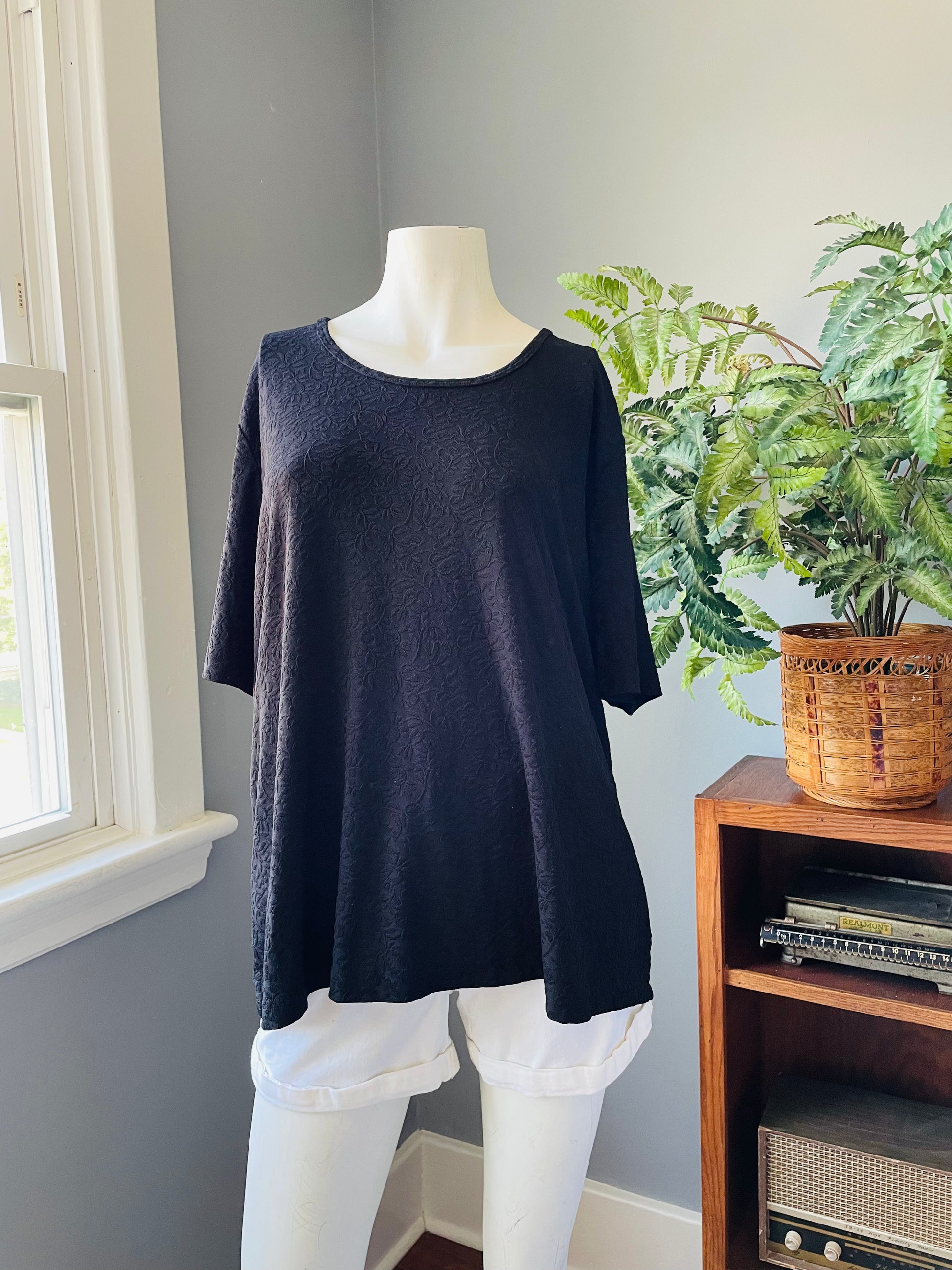 Vintage Wardrobe Essentials Plus Black T-Shirt with Floral Design