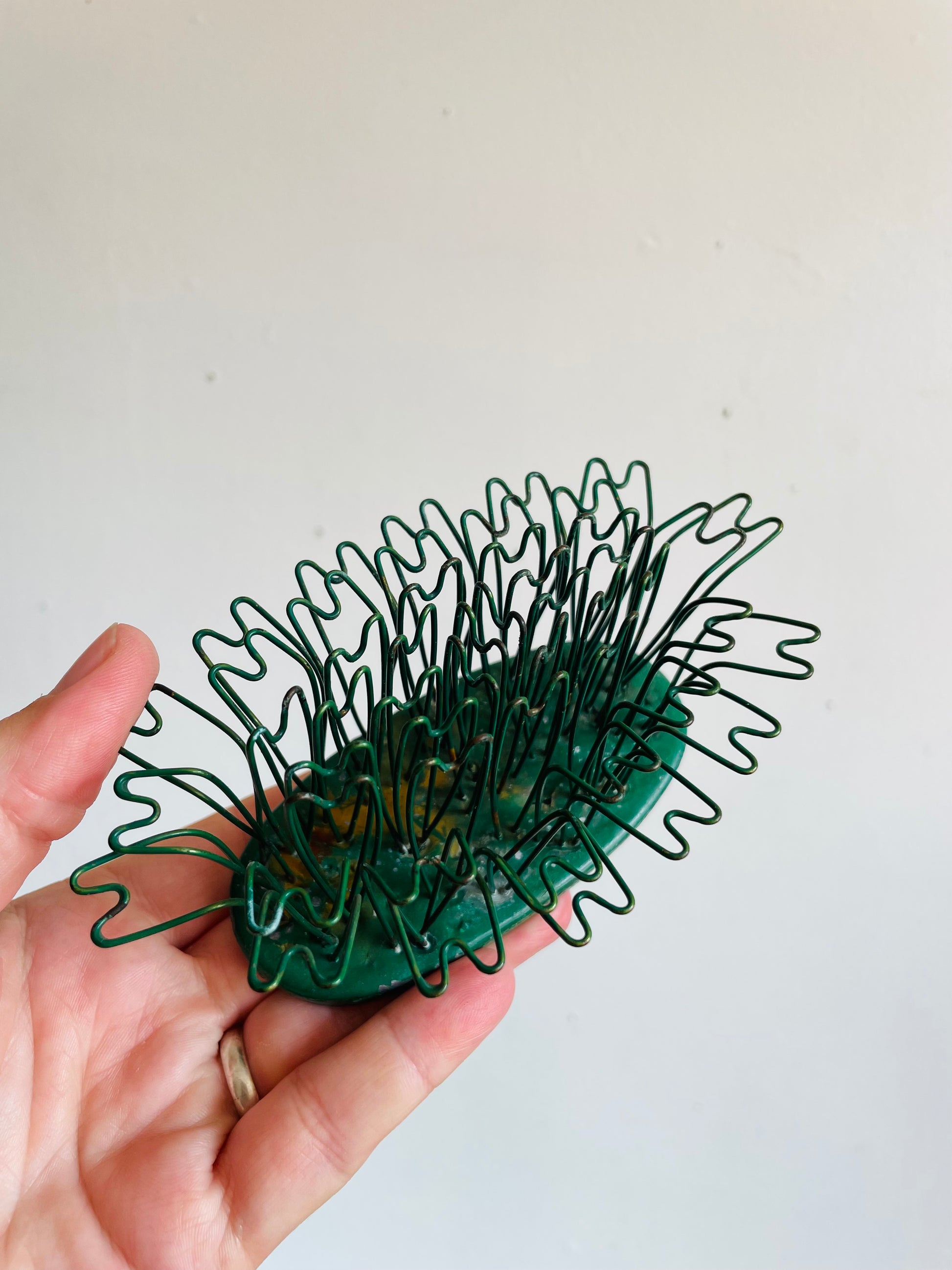 Blue Ribbon Flower Holder Cuyahoga Falls Ohio Green Metal Hairpin Flower Frog #4 - Also Holds Photos, Memos, Etc.