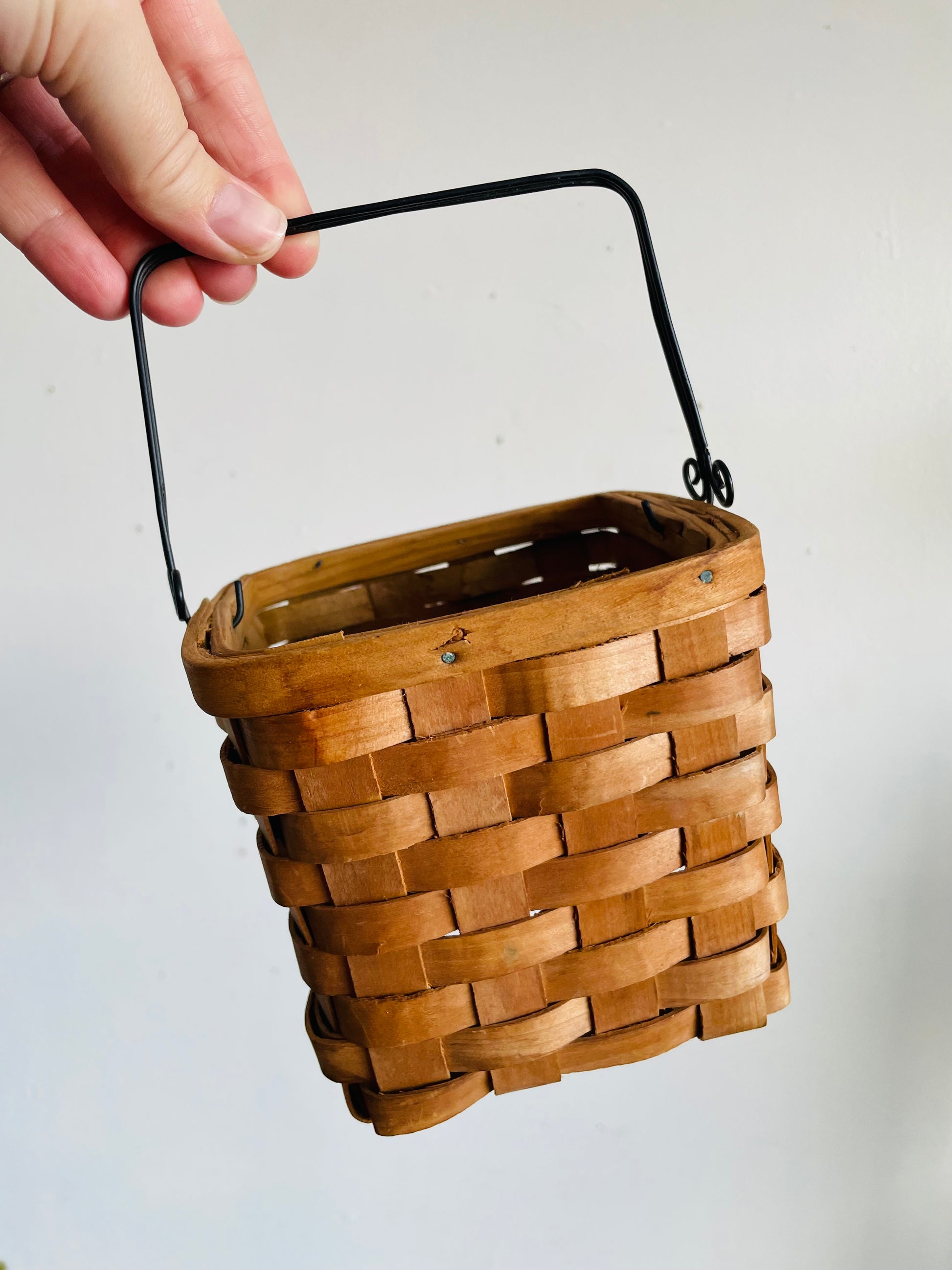 Basket: 4.75" by 4.75" and 4.25" tall, not including the metal handle