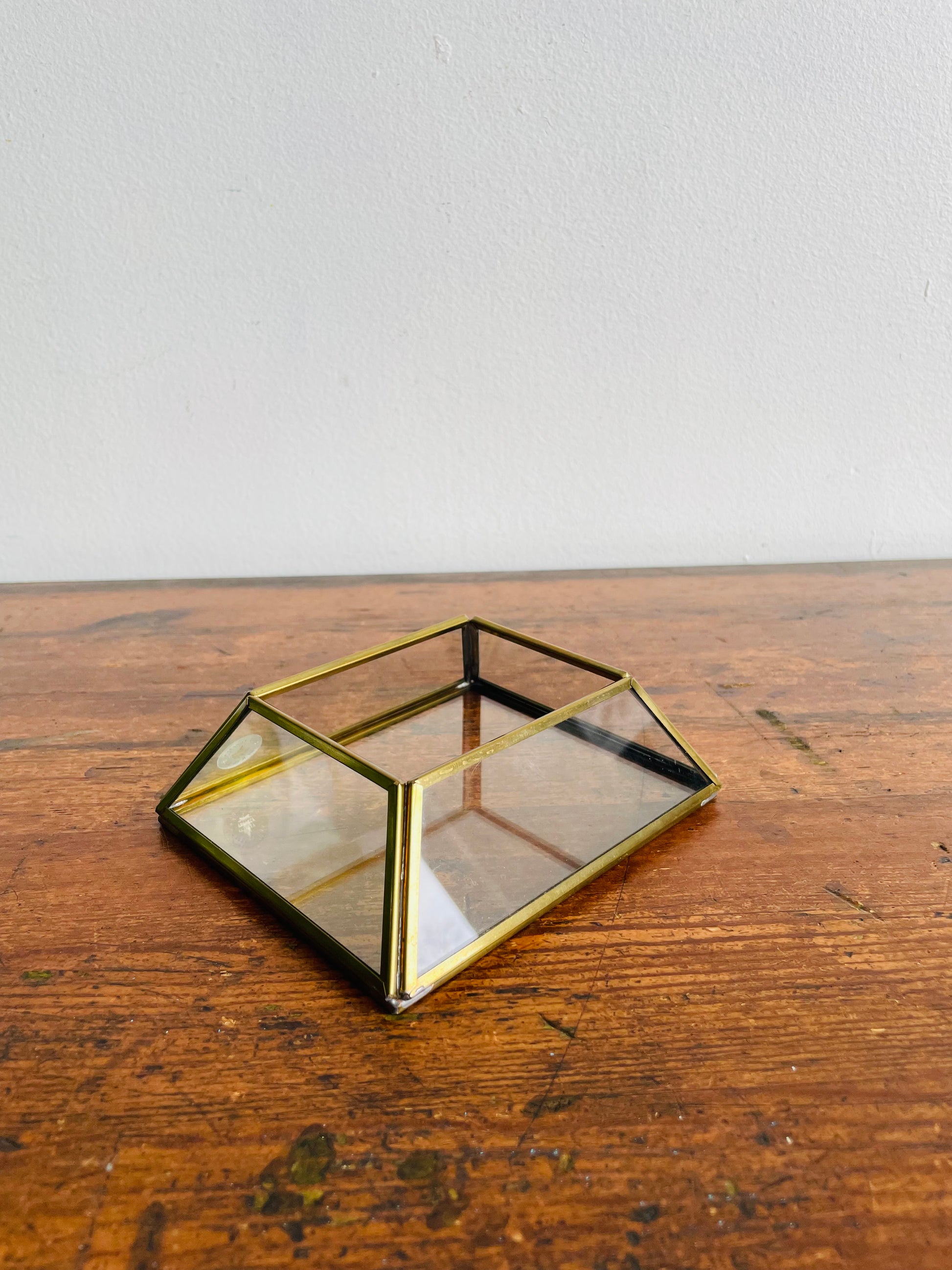 Brass Mirrored Box Holder - Great for Business Cards, Air Plants, Etc. - Made in Canada