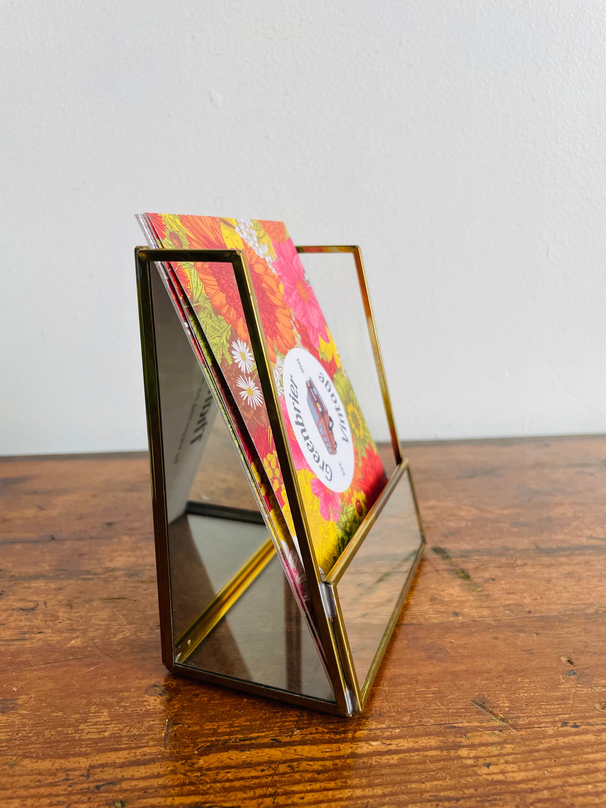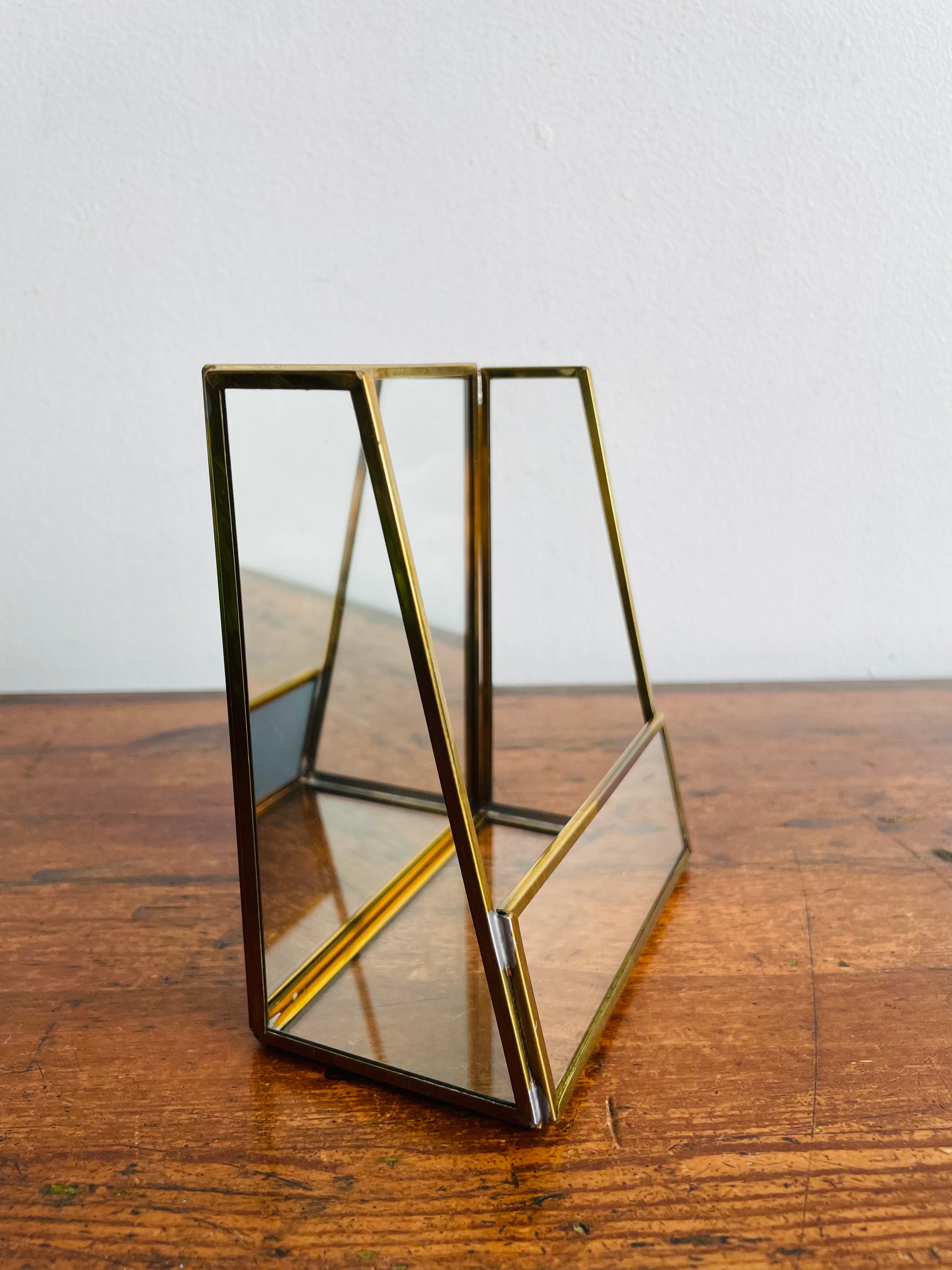Brass Mirrored Box Holder - Great for Business Cards, Air Plants, Letters, Etc. - Made in Canada