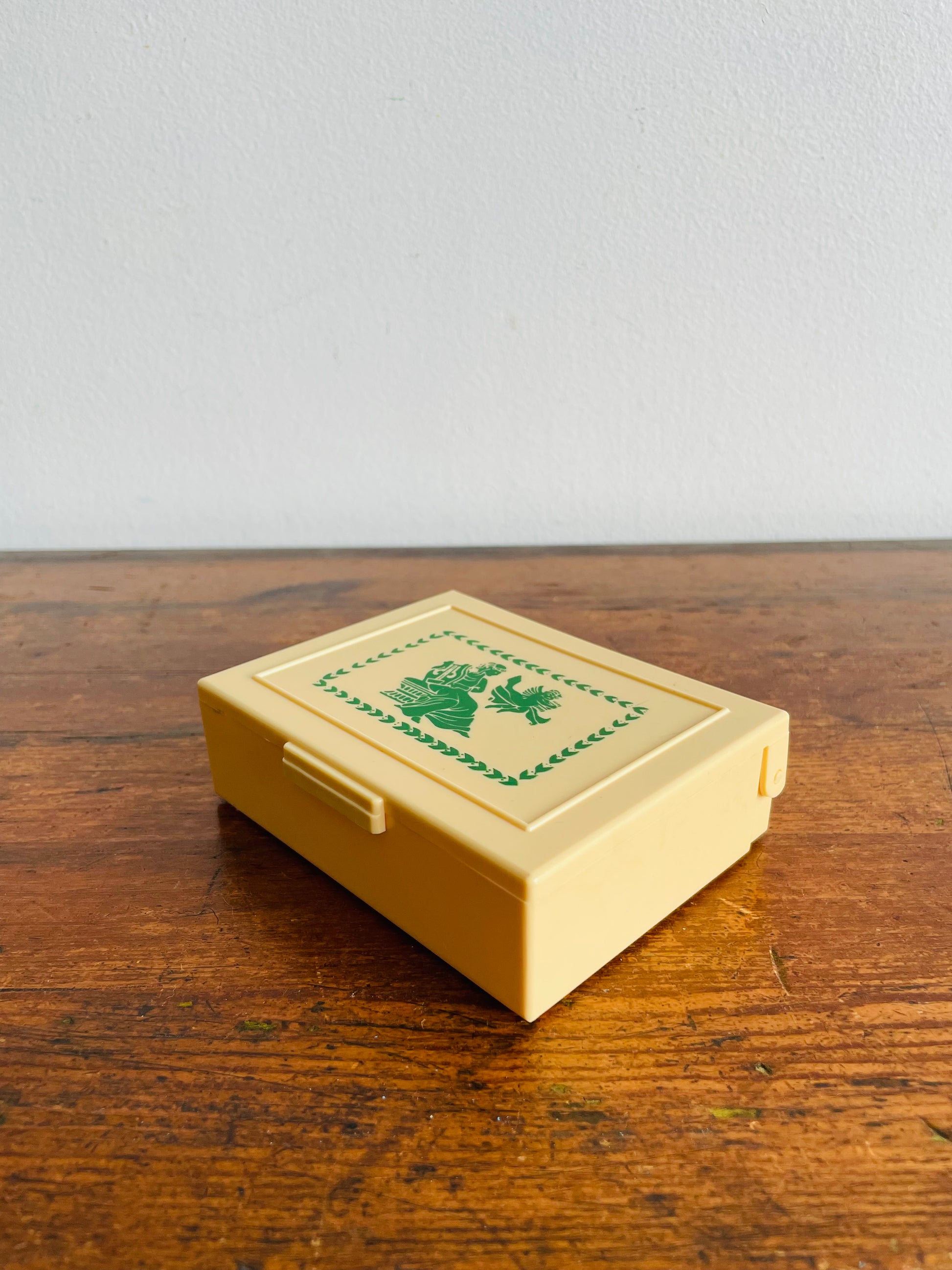 Celluloid Trinket Box with Hinged Lid & Green Grecian Design