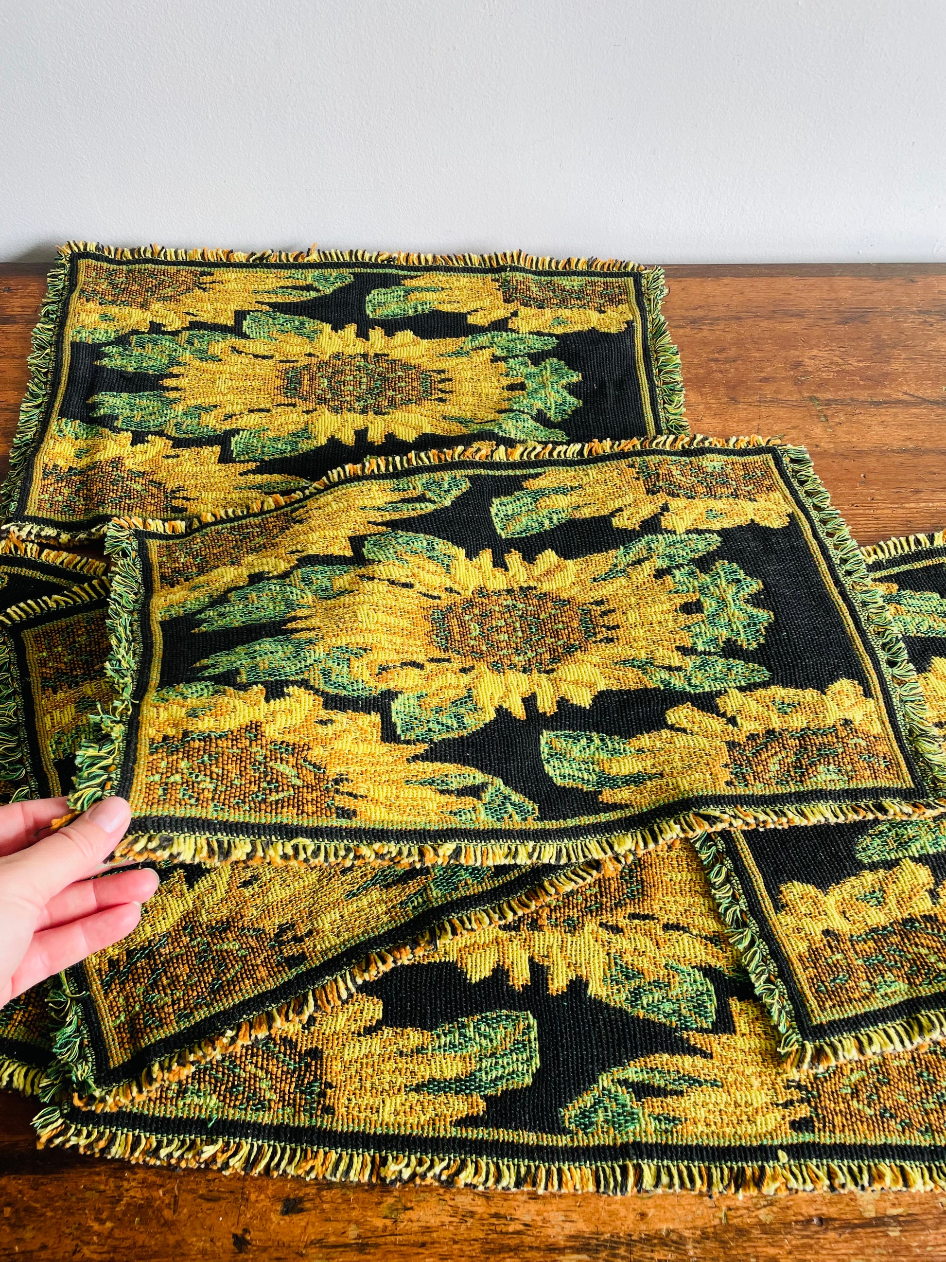 Cheerful Sunflower Placemats with Fringe - Set of 6