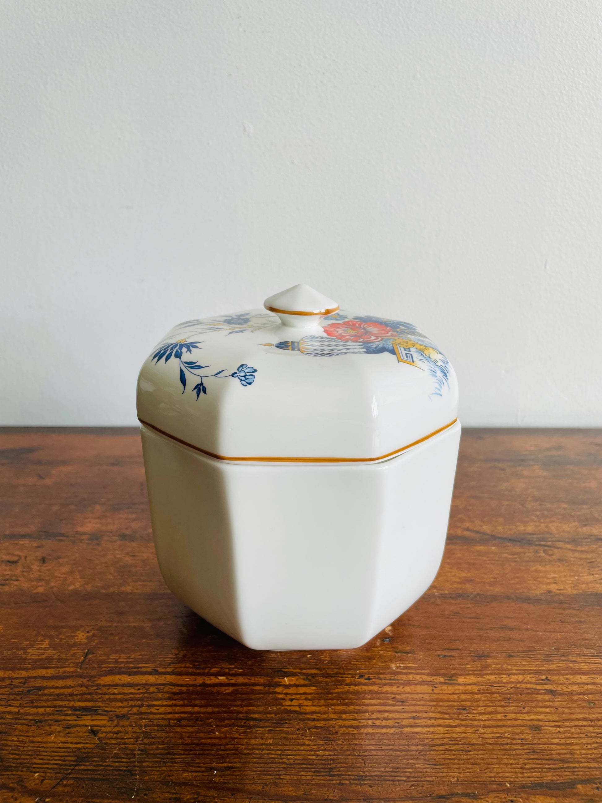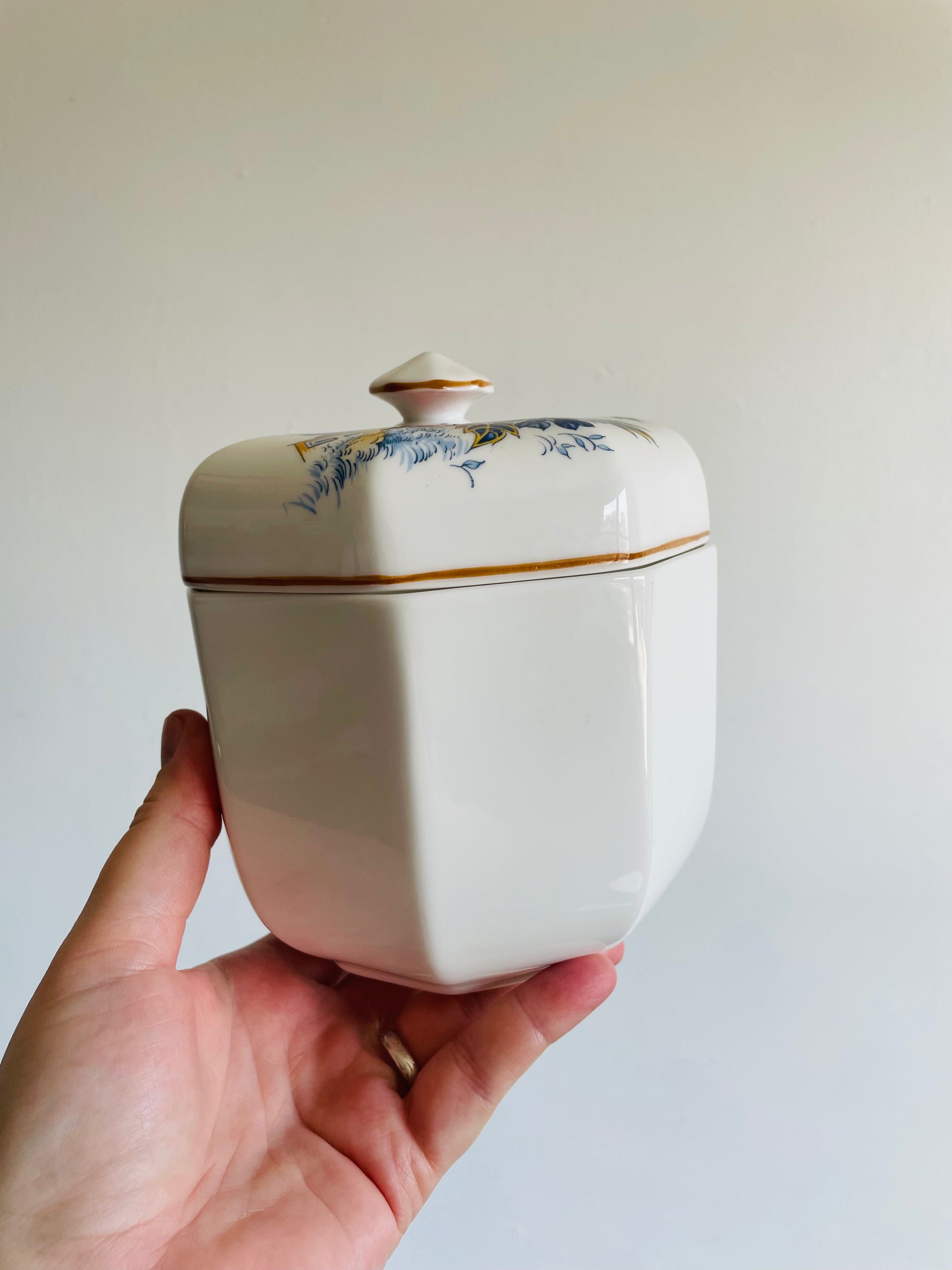 Crown Staffordshire Penang Fine Bone China Octagon Biscuit Canister Jar with Lid