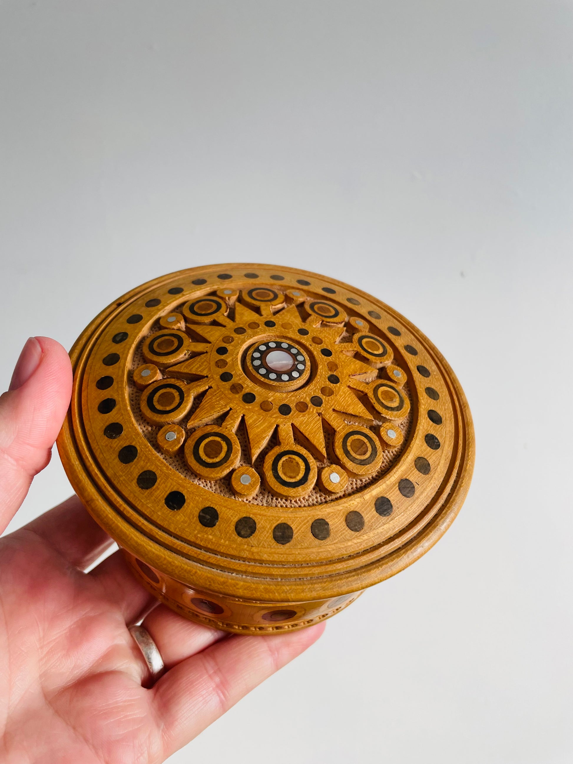 Eastern European Intricately Carved Wood Trinket Box with Lid