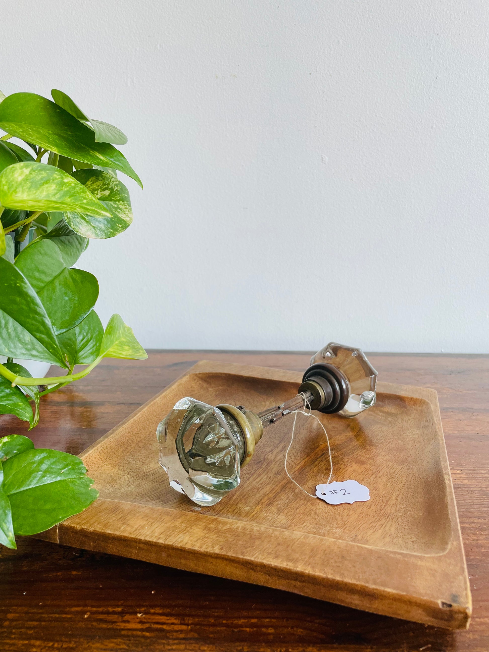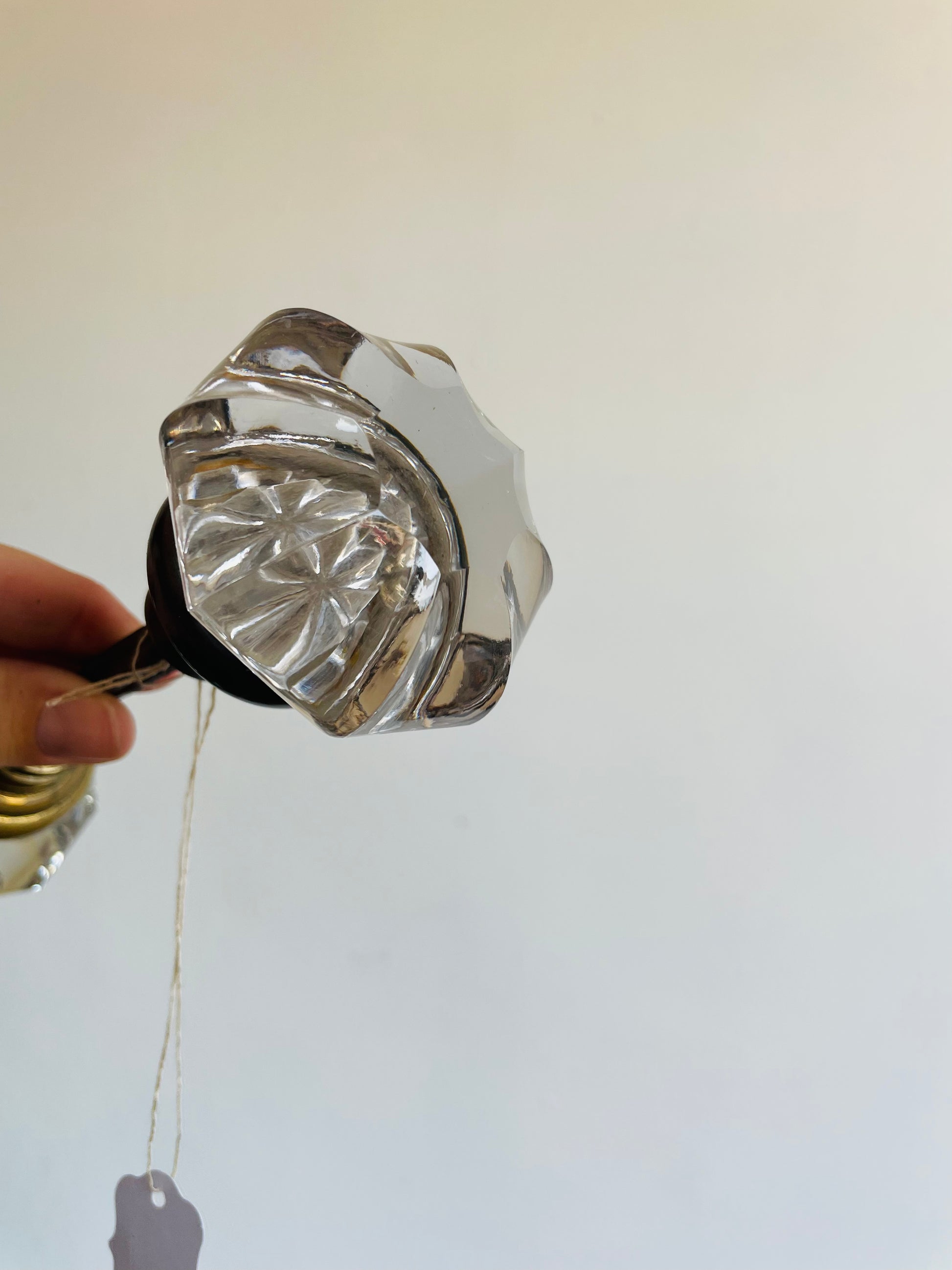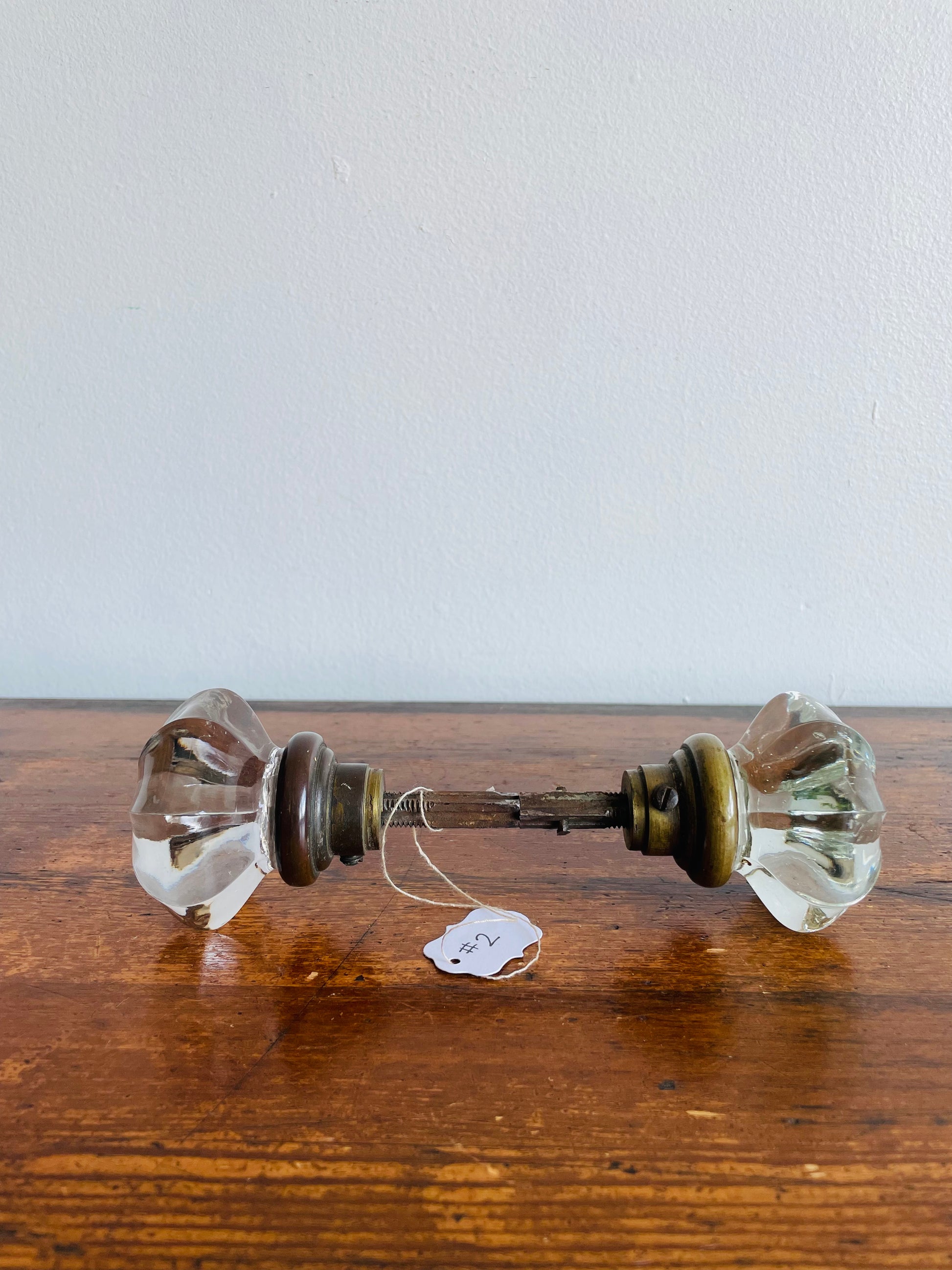 Fluted Glass 8 Point Door Knob Set with Brass Connecting Spindle Shaft #2