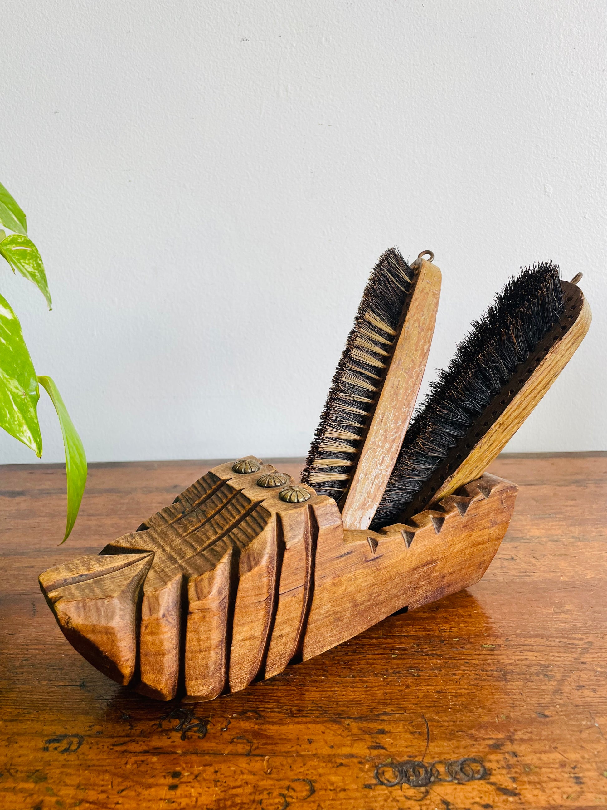 French Carved Wooden Shoe Brush Holder - Also Great for a Plant or Business Cards - Found in Dublin, Ireland