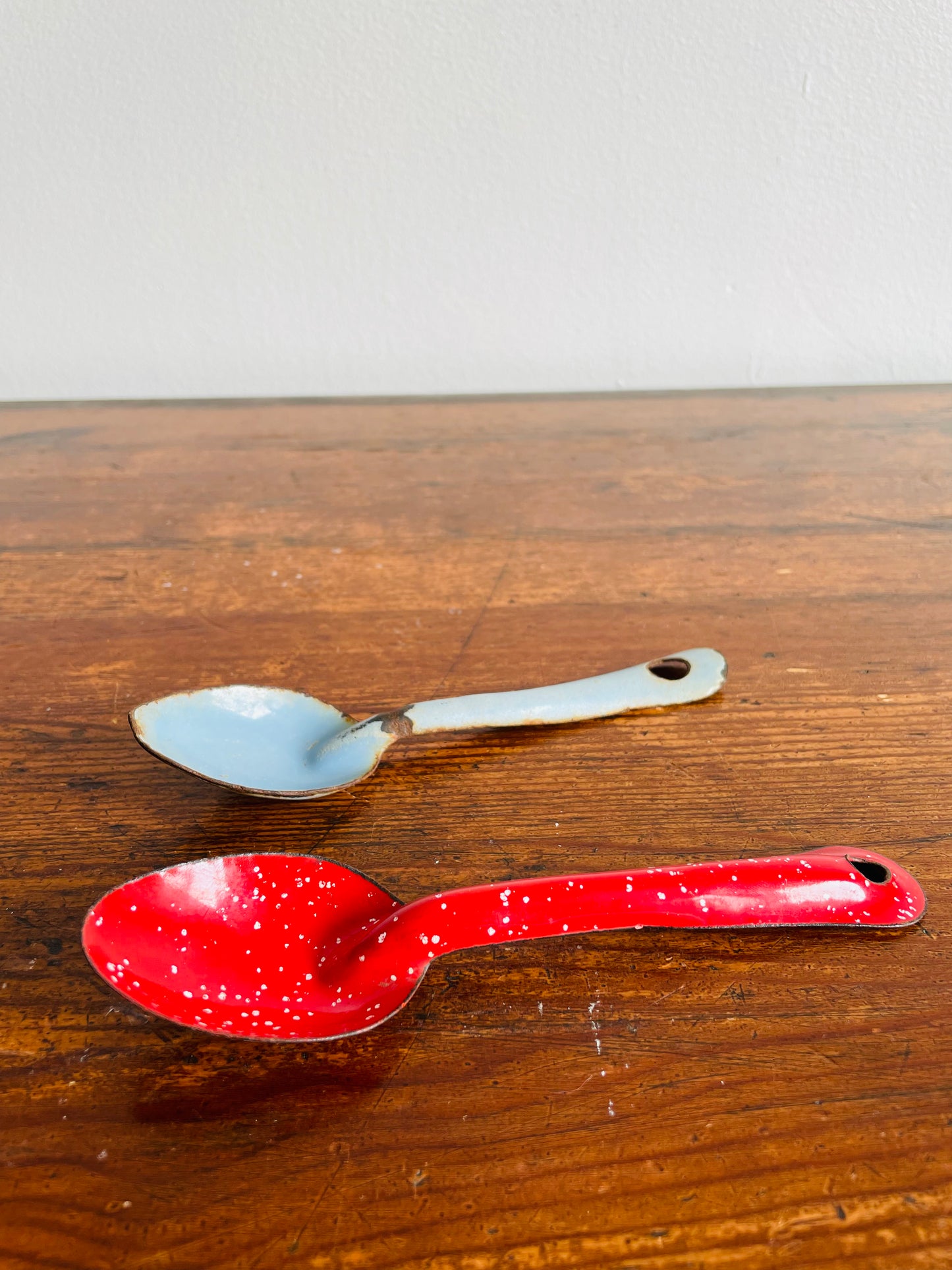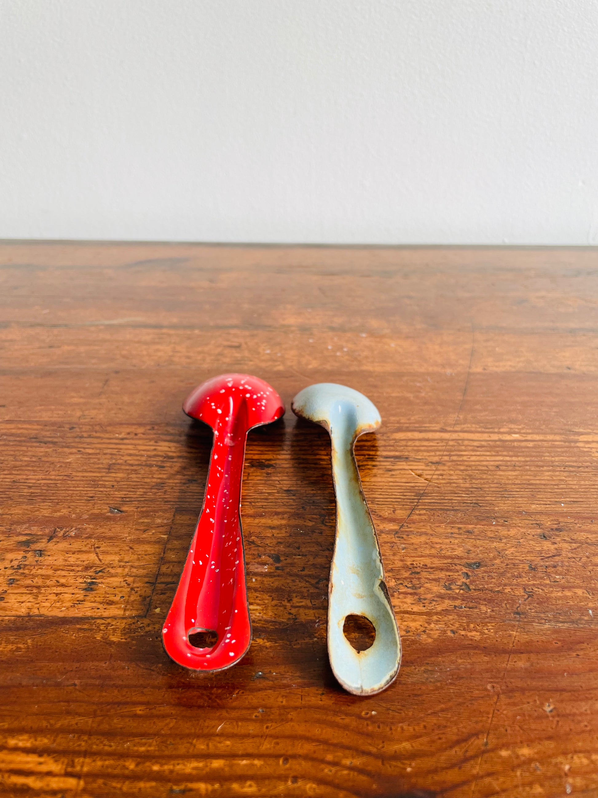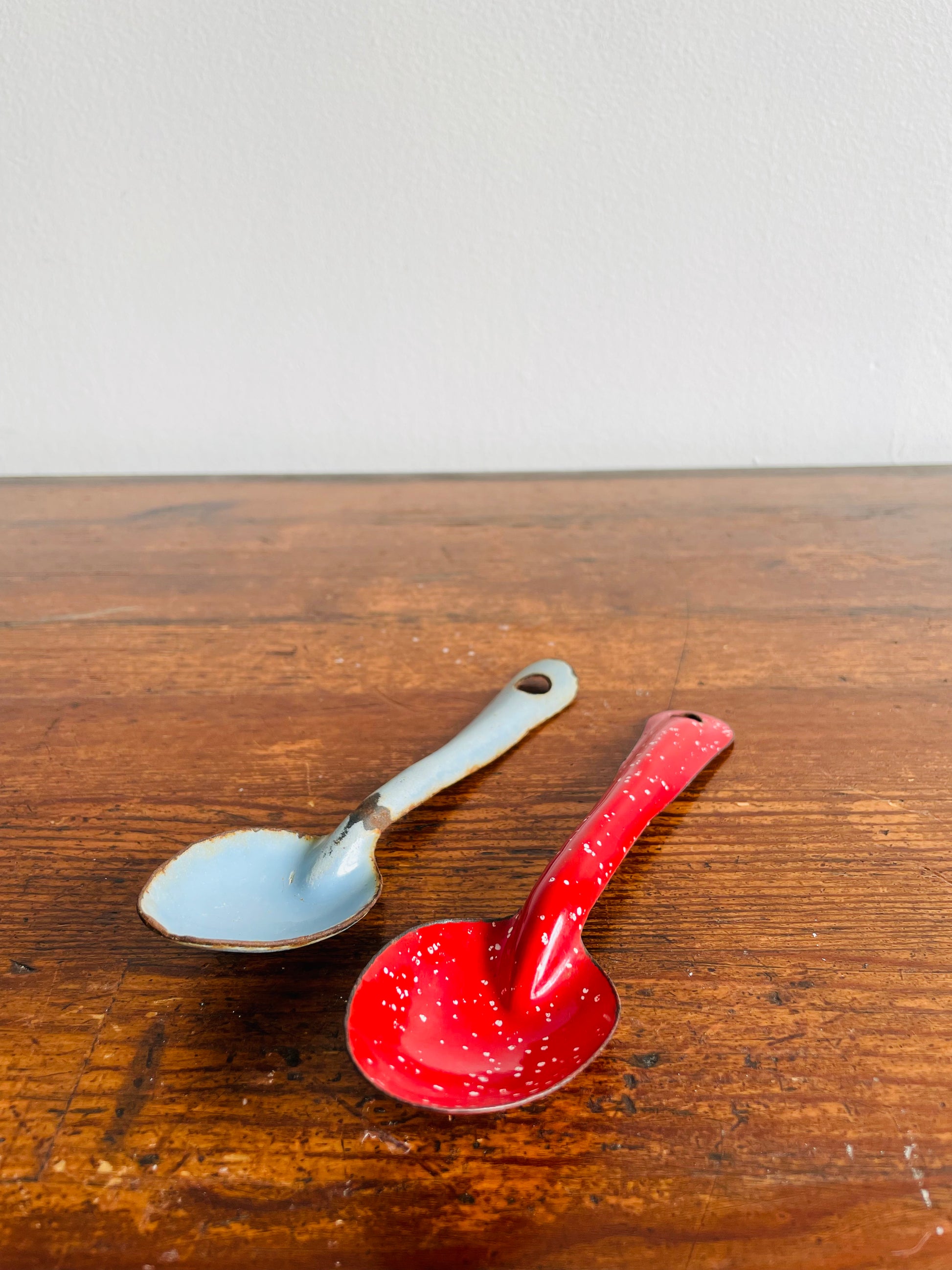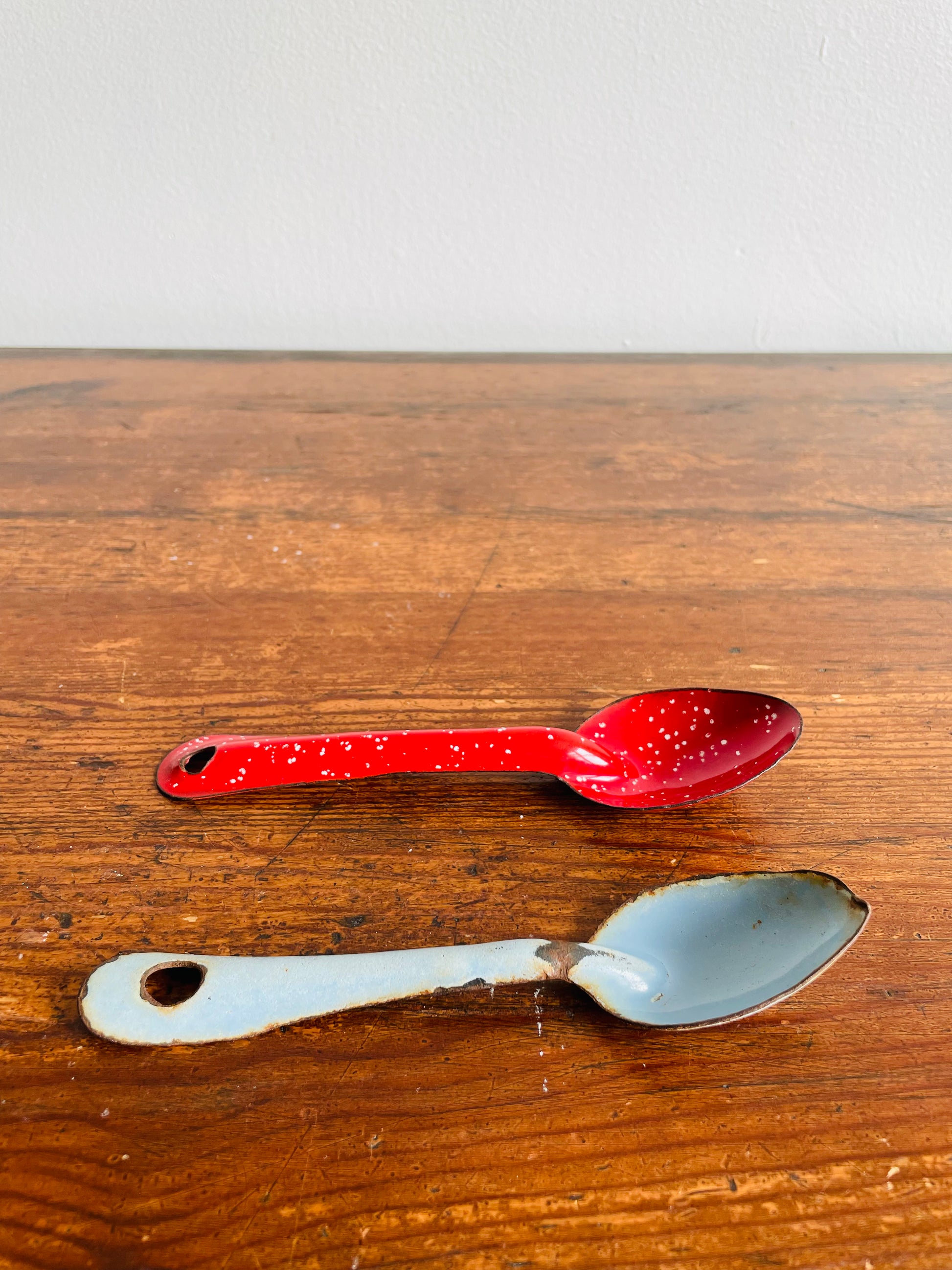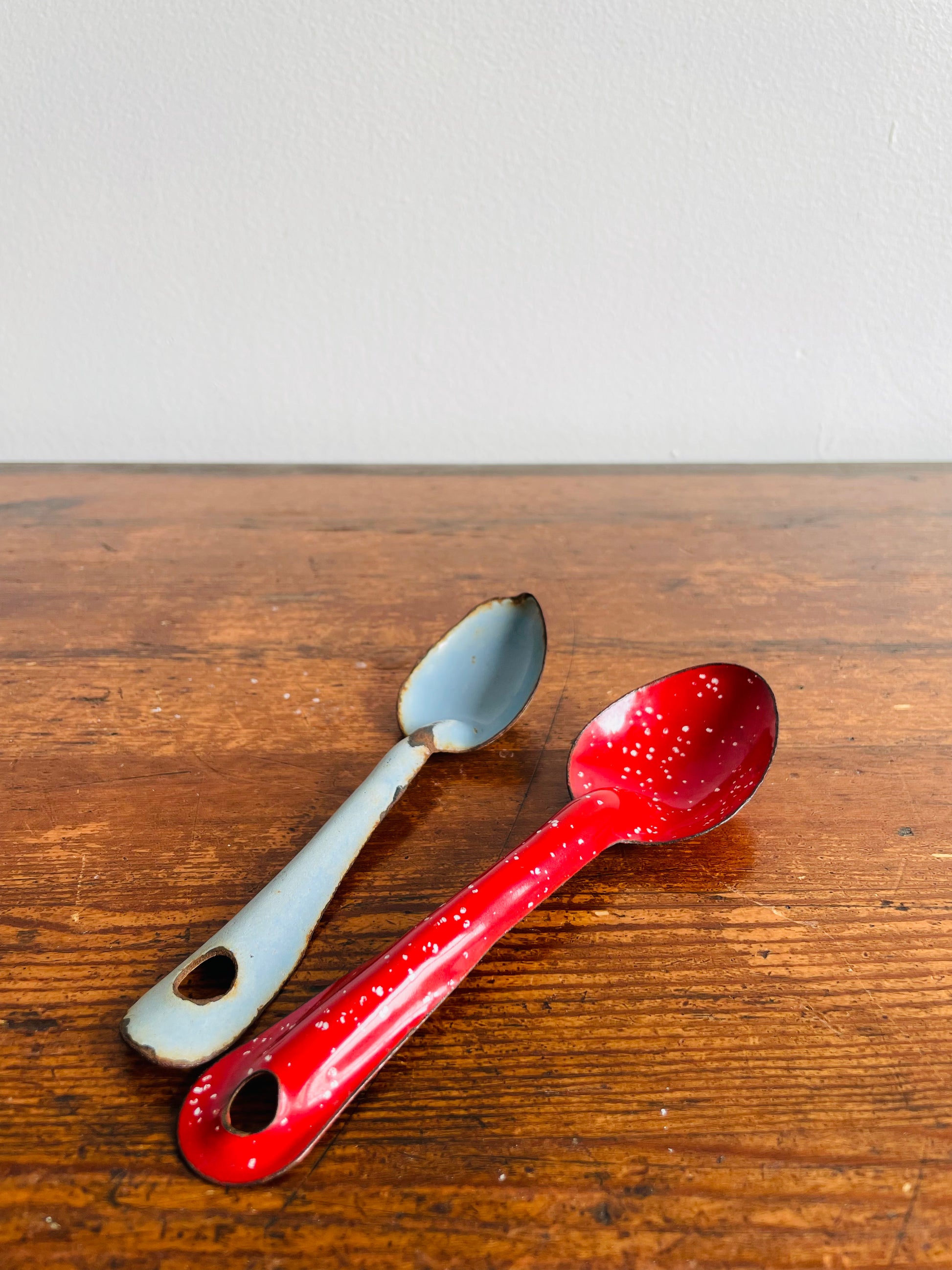 Graniteware Enamelware Set of Two Spoons - Red with White Flecks & Robin Egg Blue