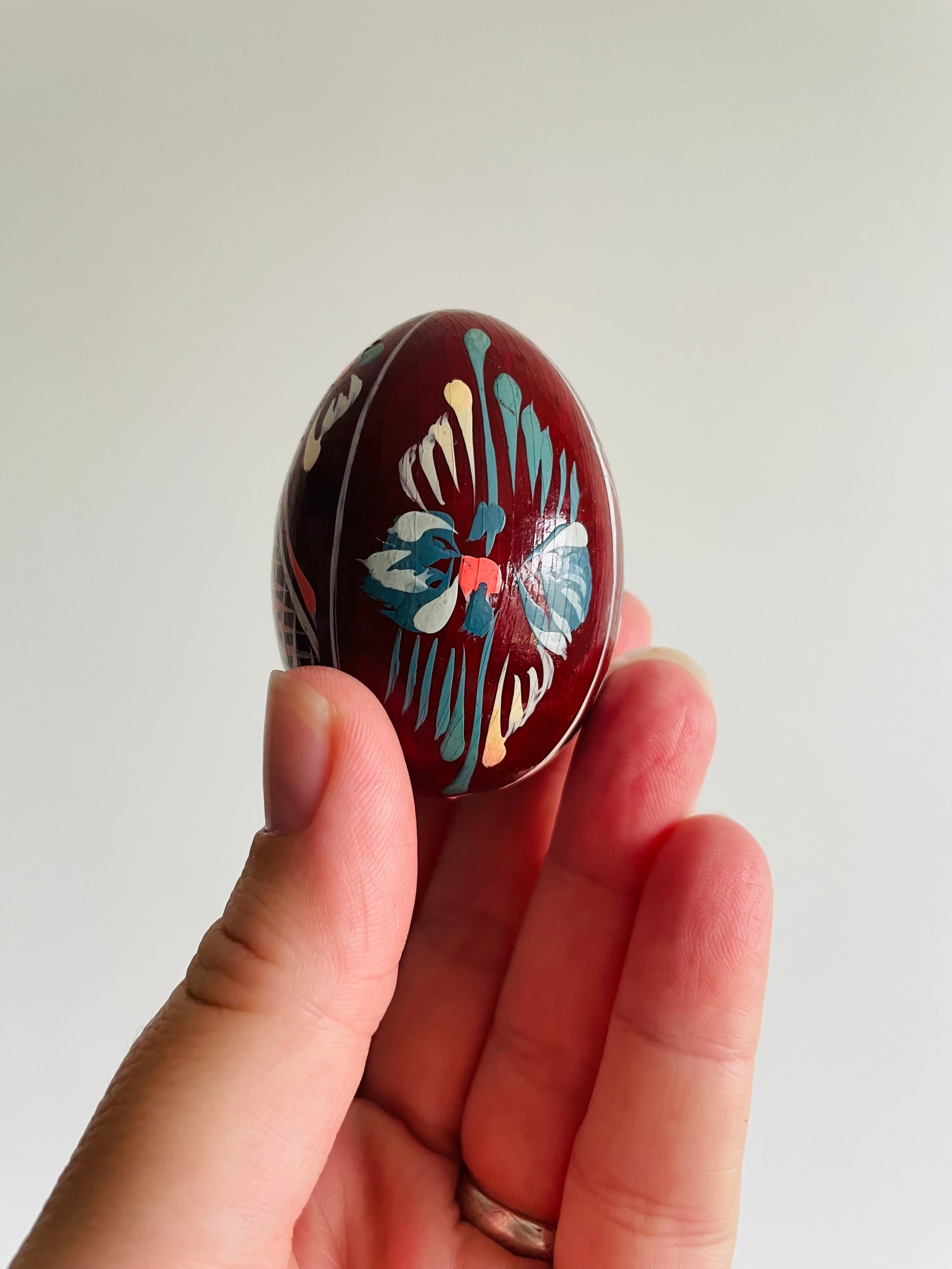 Hand Painted Wood Eggs with Various Designs - Set of 4