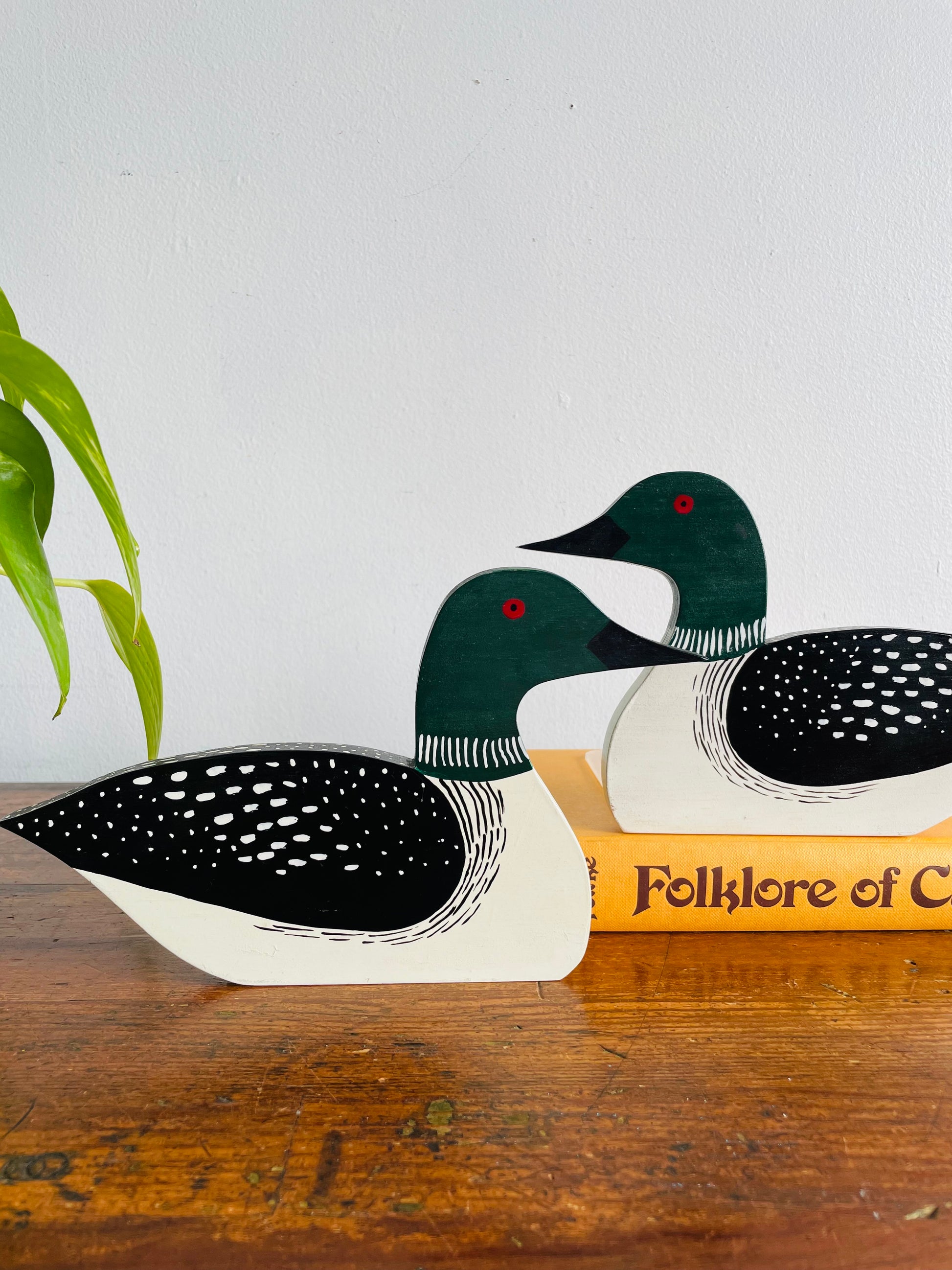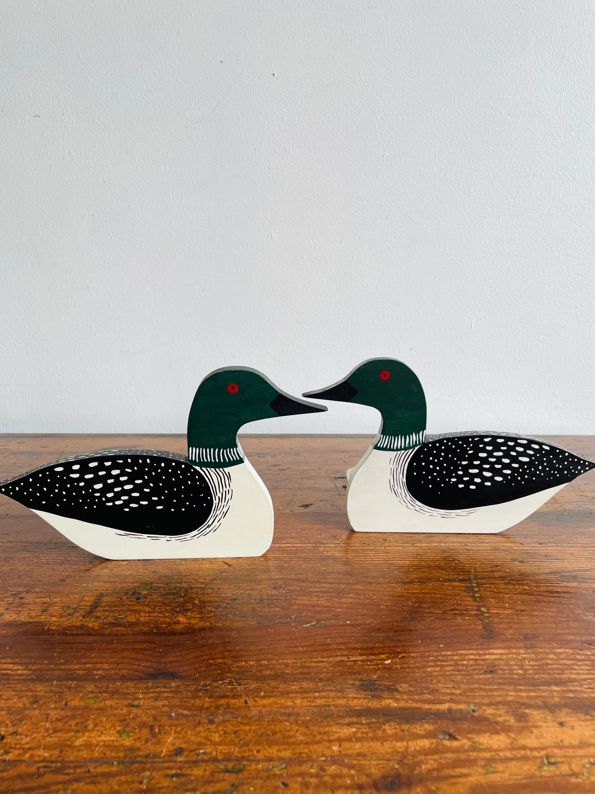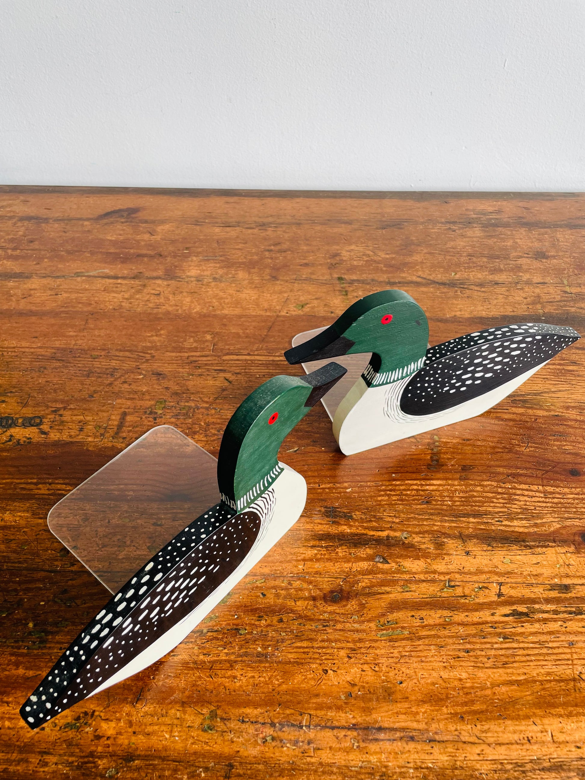 Handmade & Hand Painted Wooden Loon Bookends - Set of 2