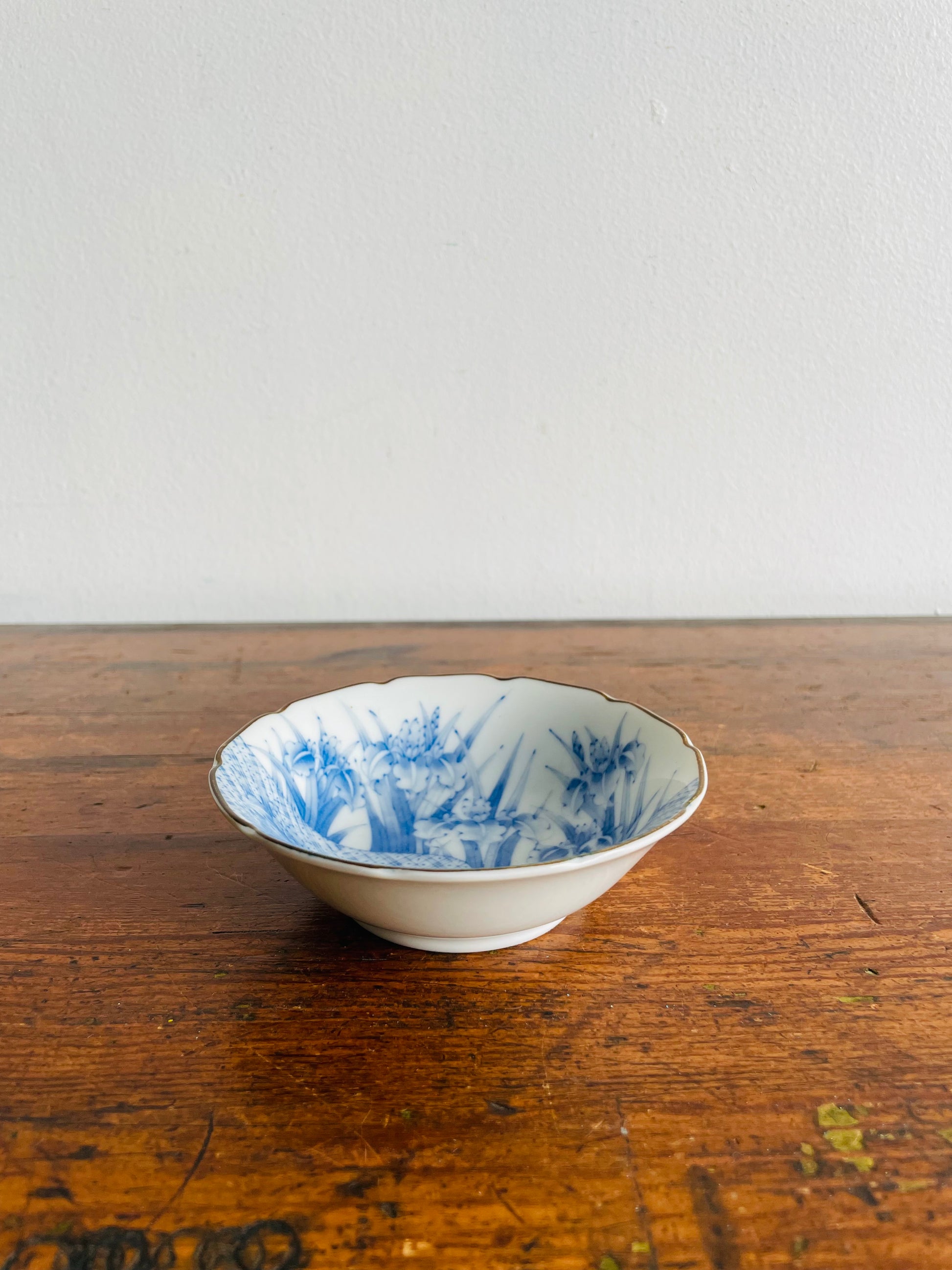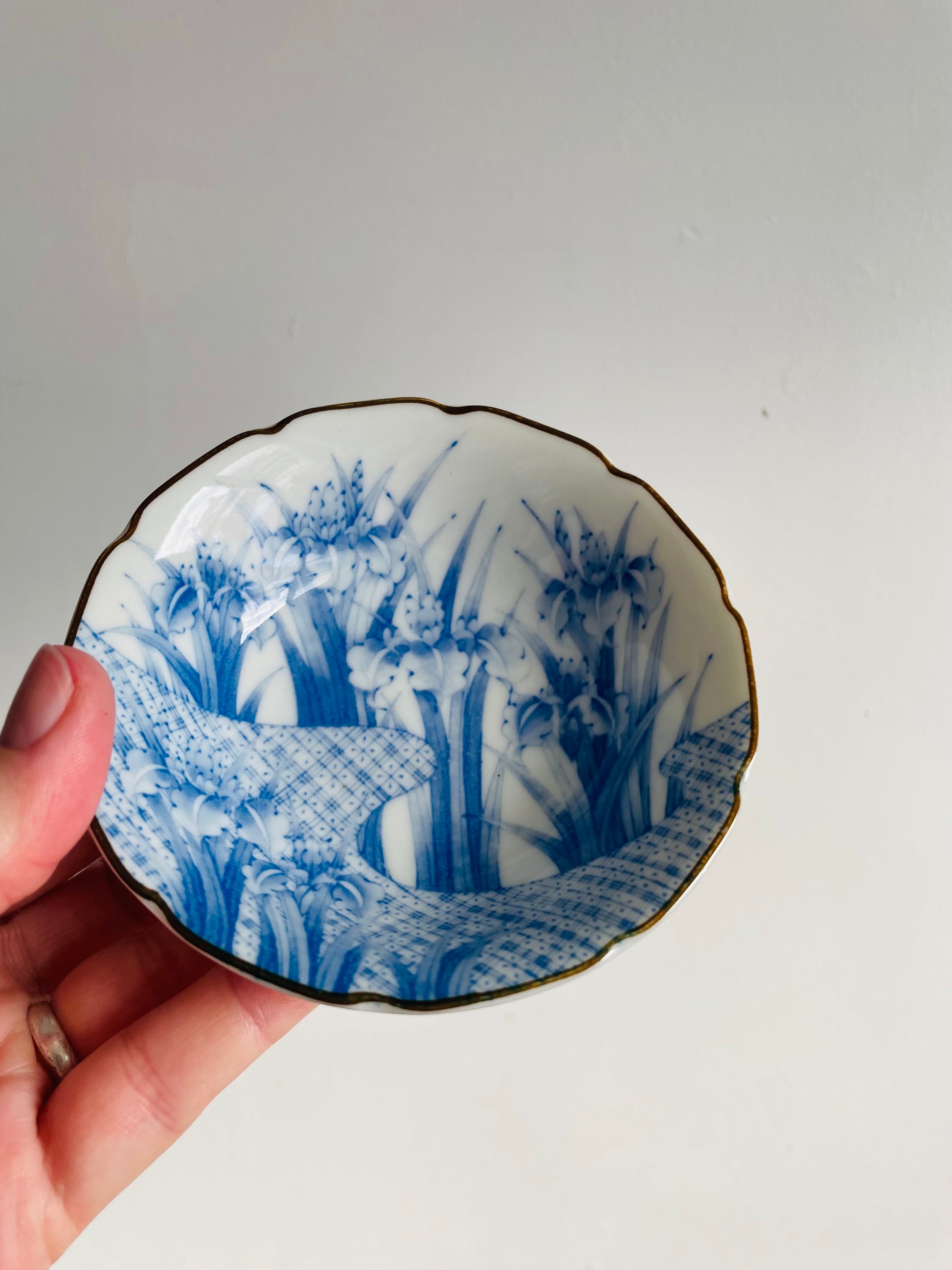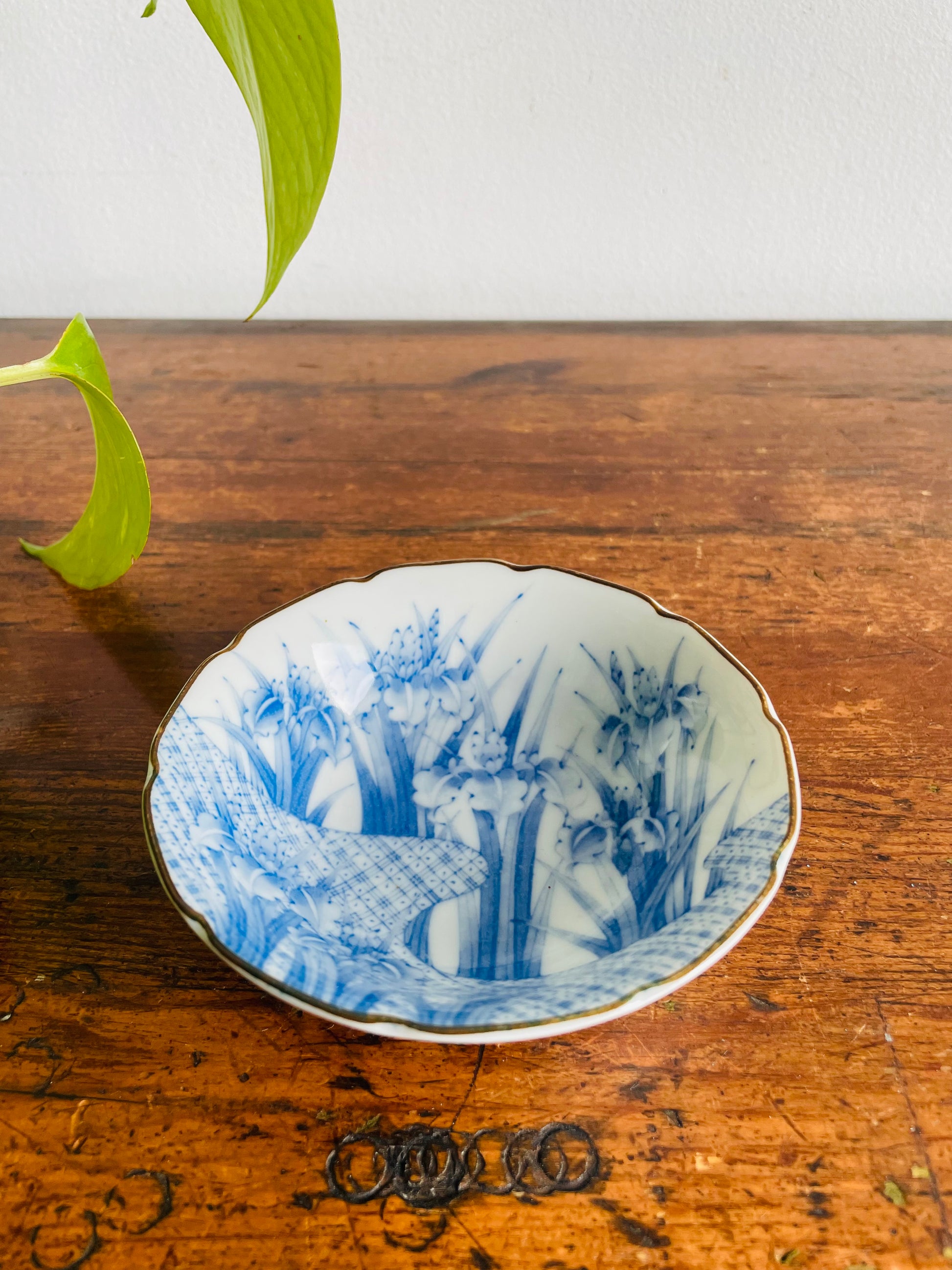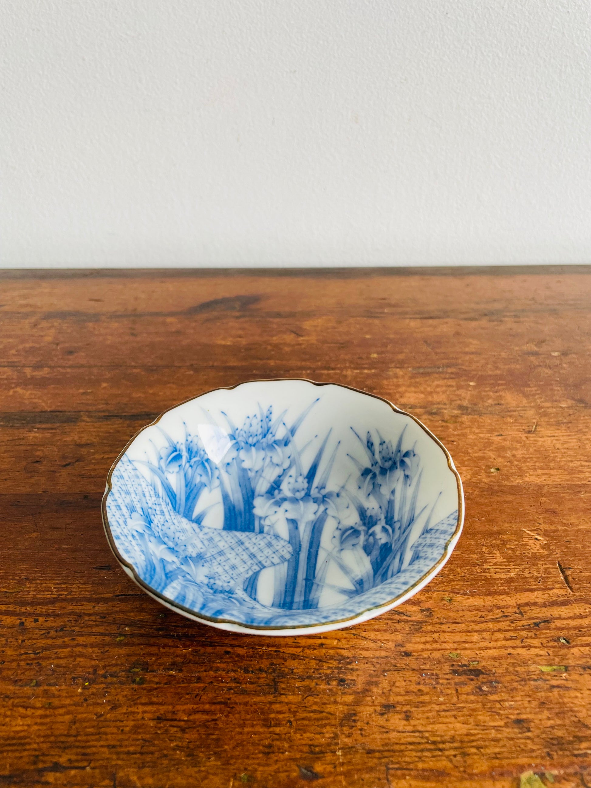 Japanese Trinket Bowl Dish with Blue Flower Design