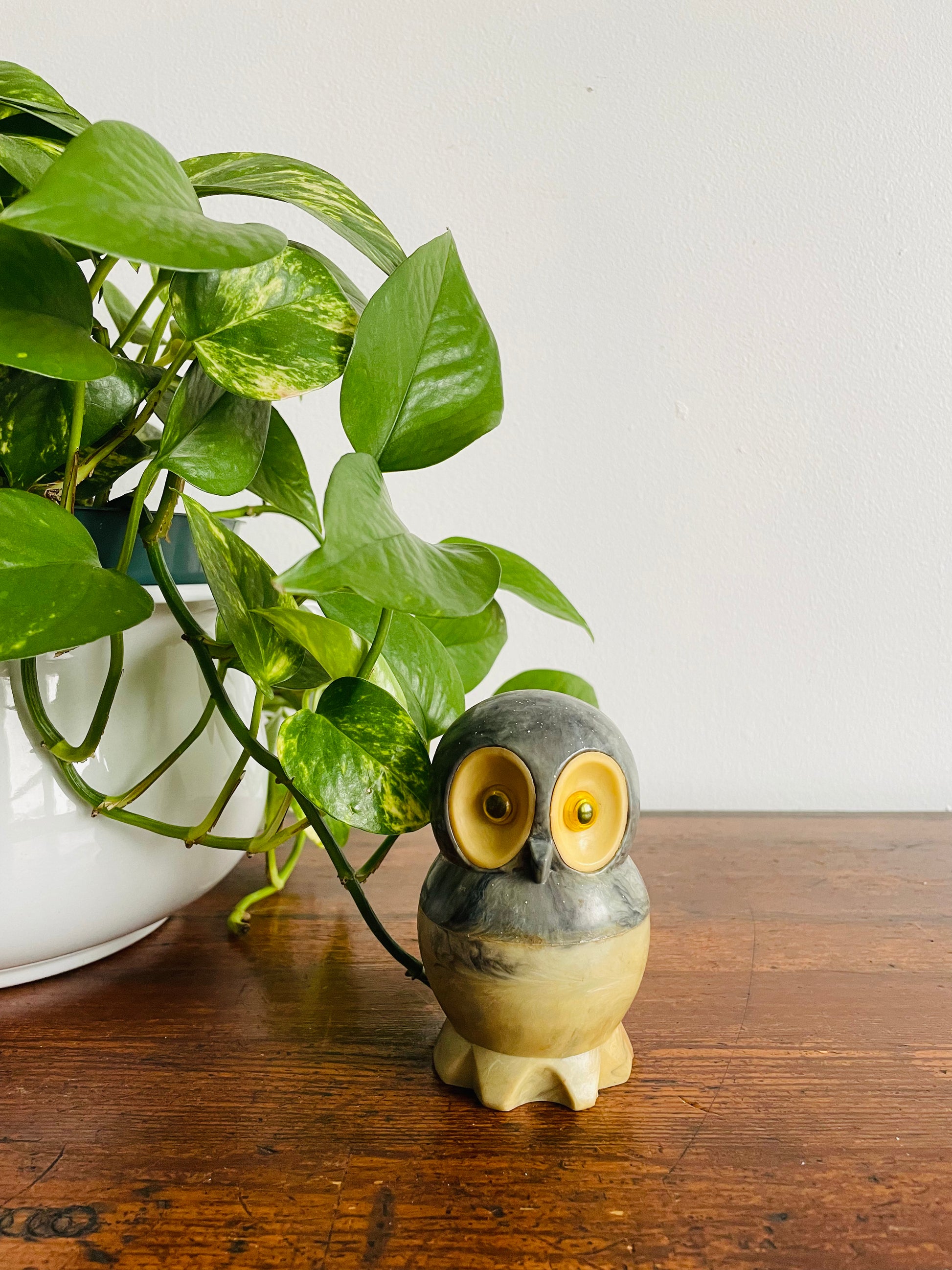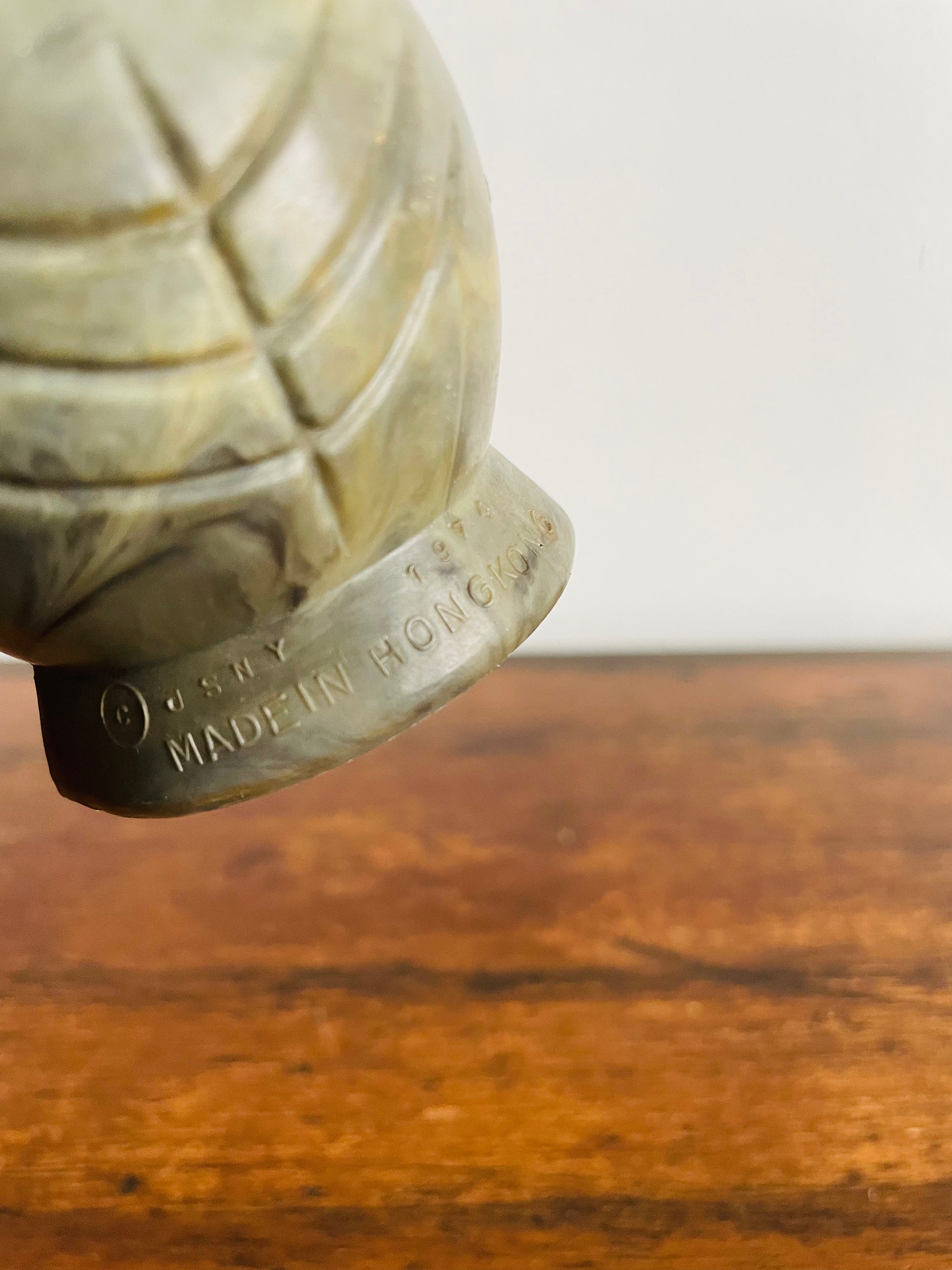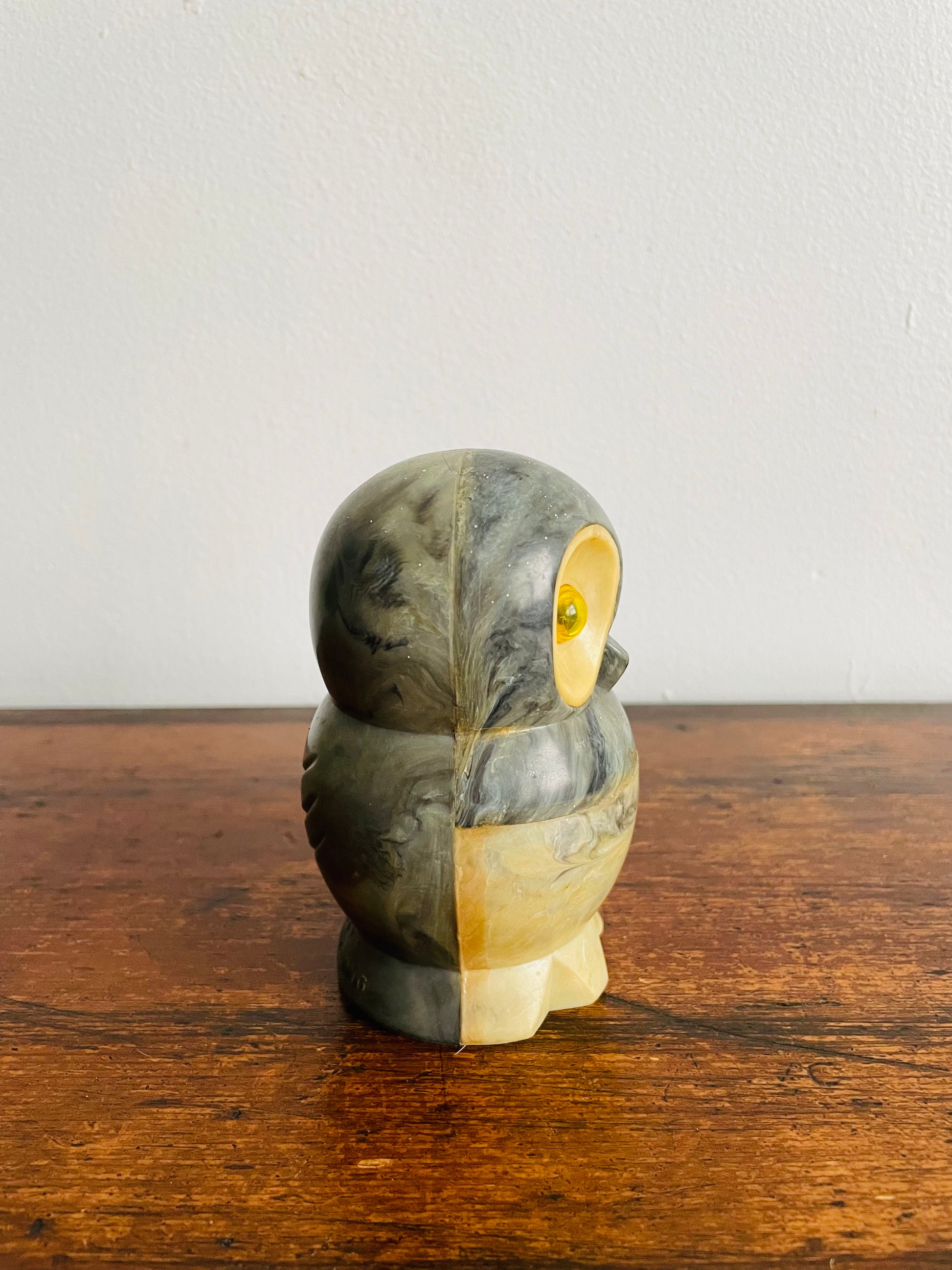JSNY 1974 Marbled Plastic Owl Figurine Paperweight - Made in Hong Kong