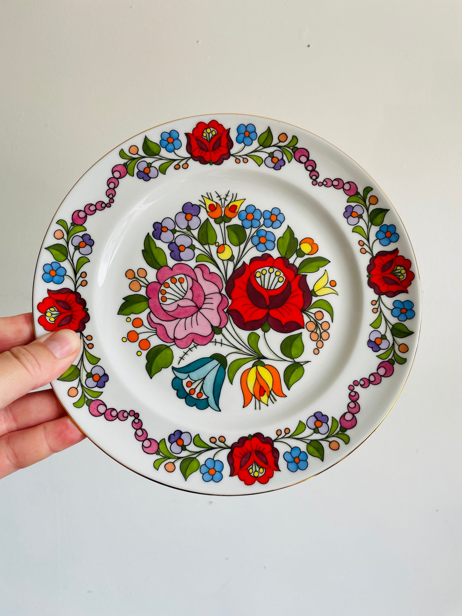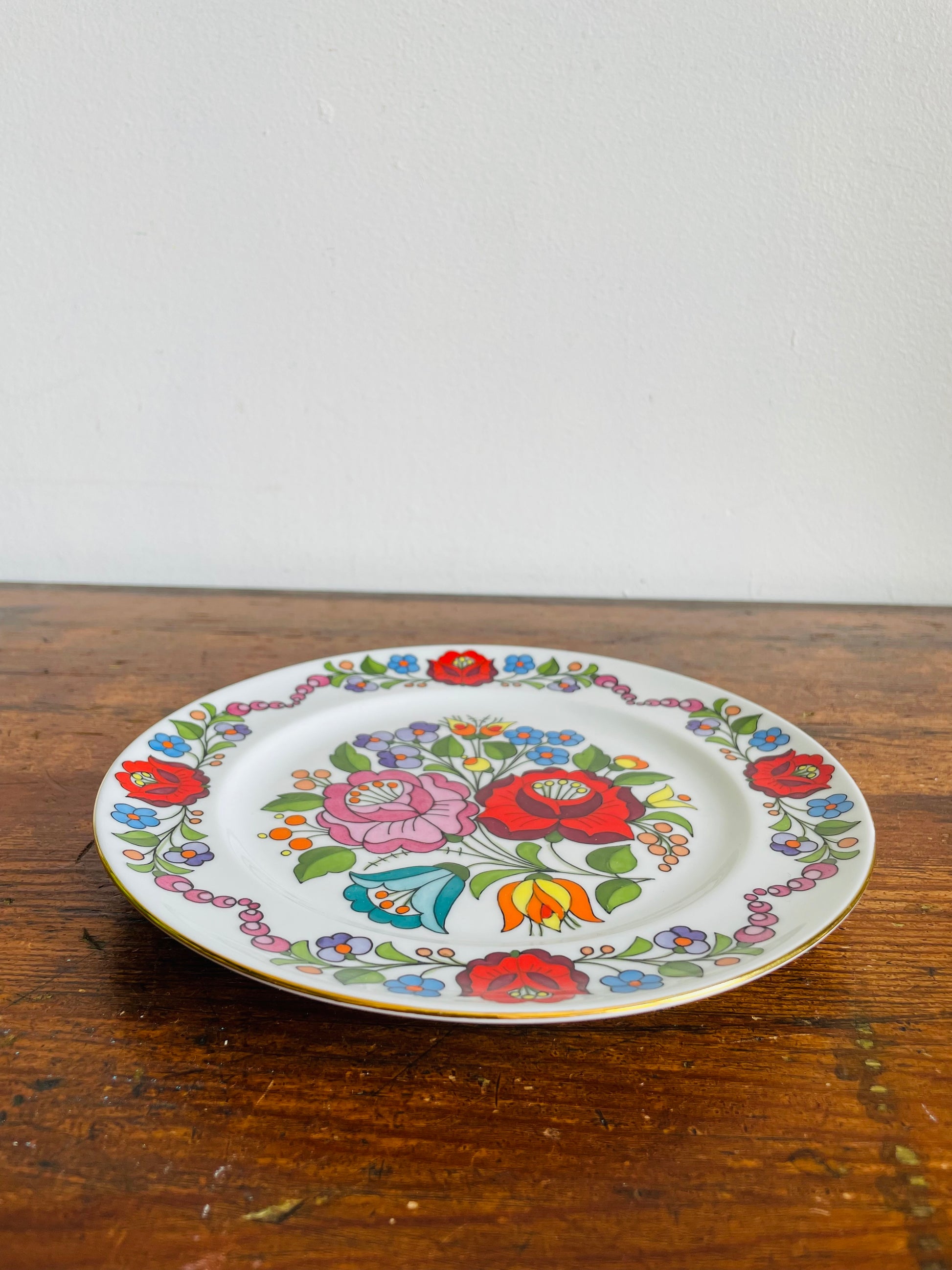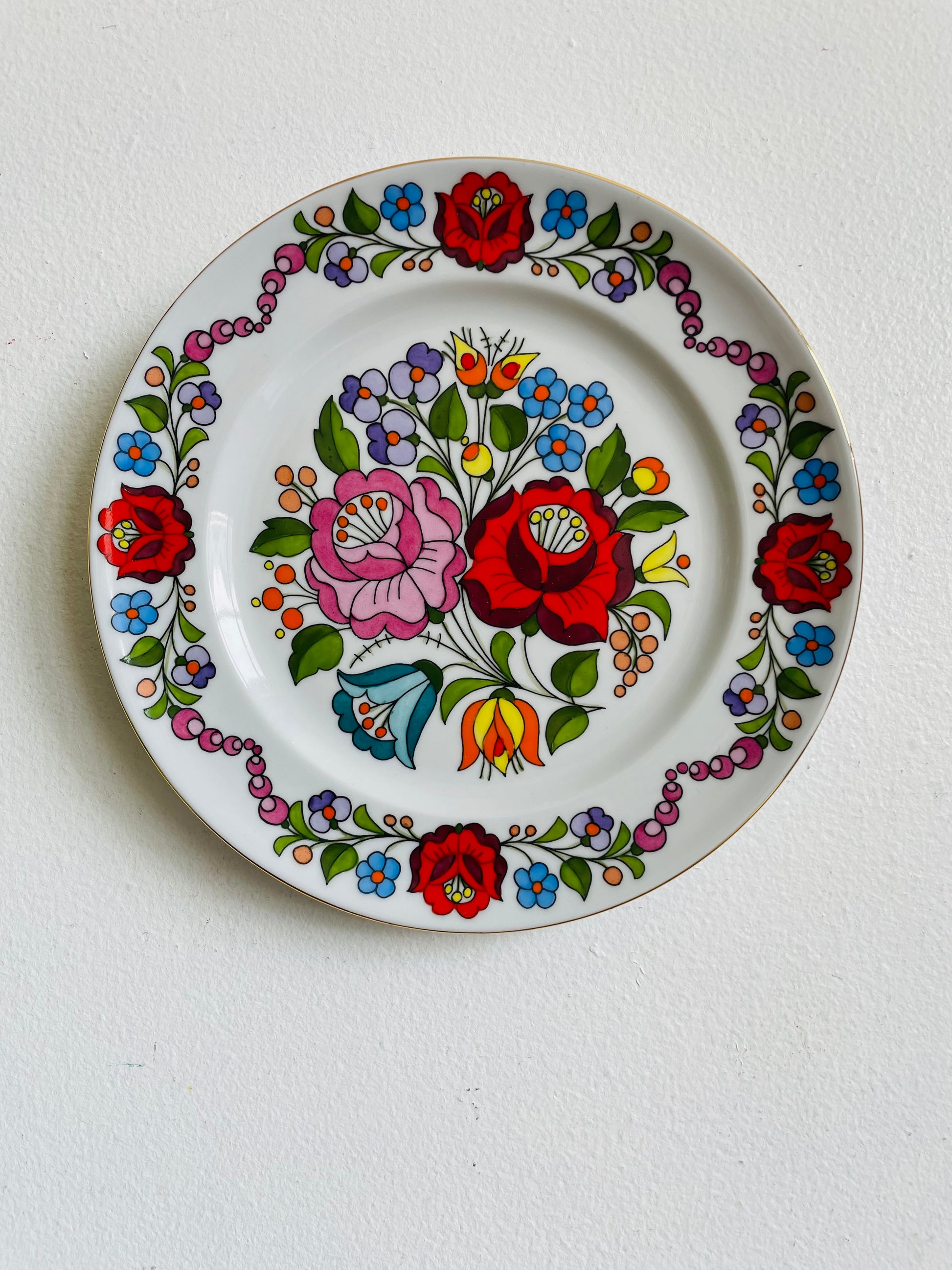 Kalocsa Hungary Hand Painted Folk Art Wall Hanging Plate with Large Multicoloured Flower Design