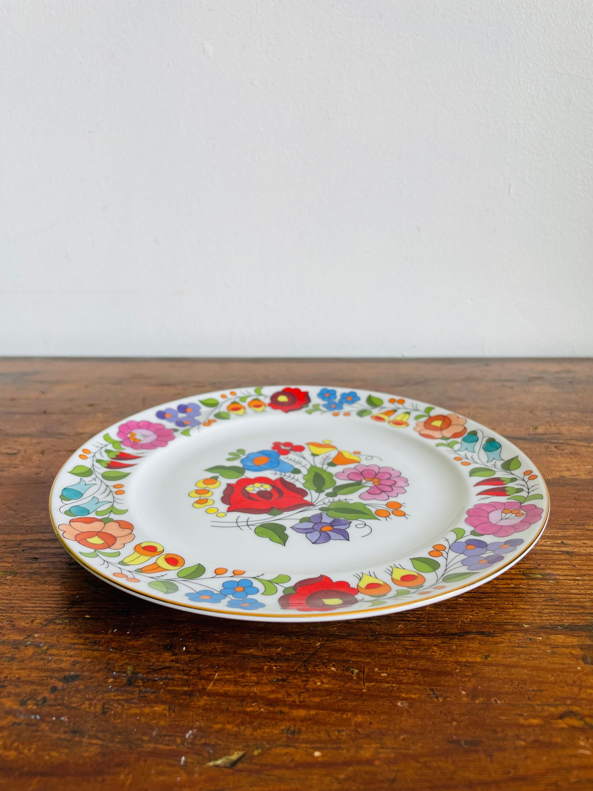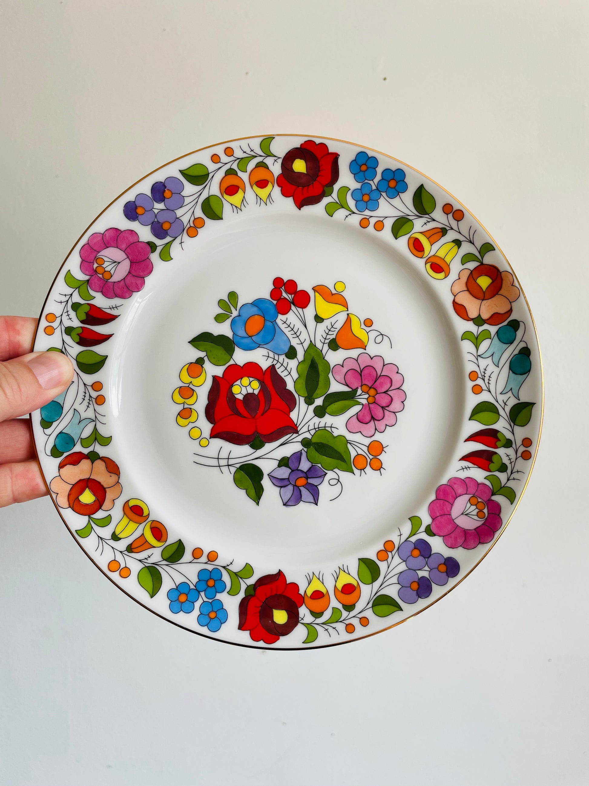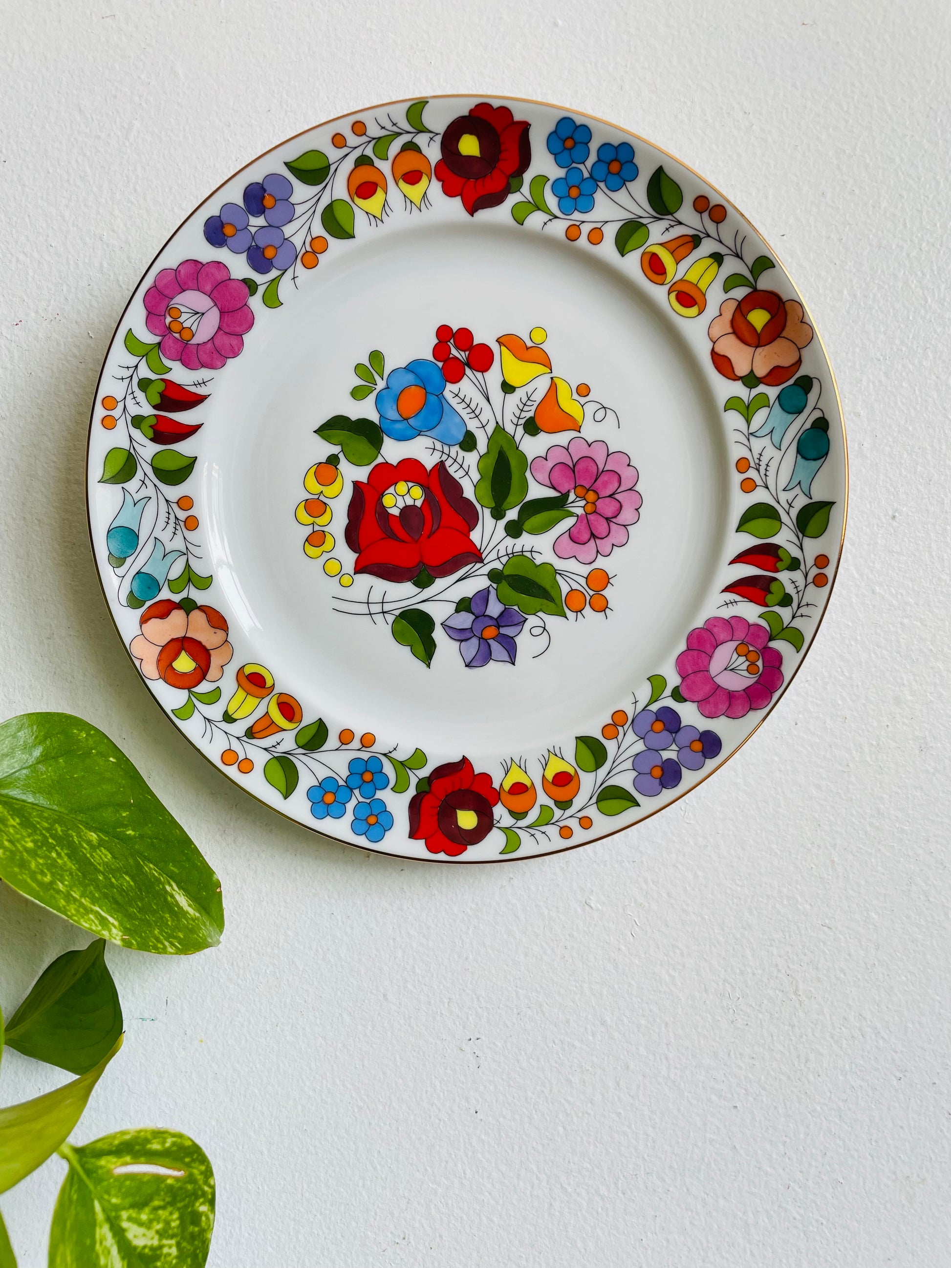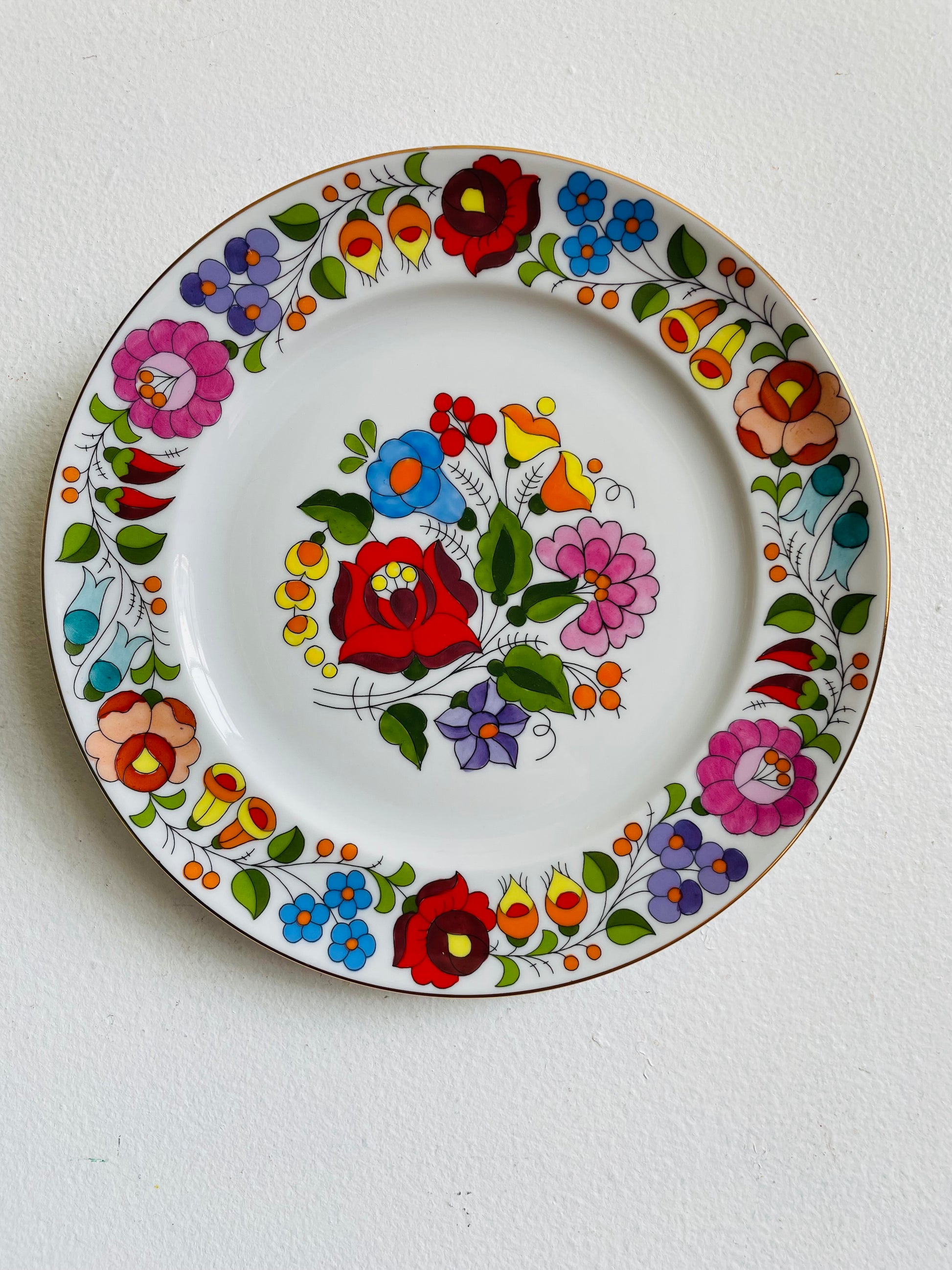 Kalocsa Hungary Hand Painted Wall Hanging Plate with Smaller Multicoloured Flower Design