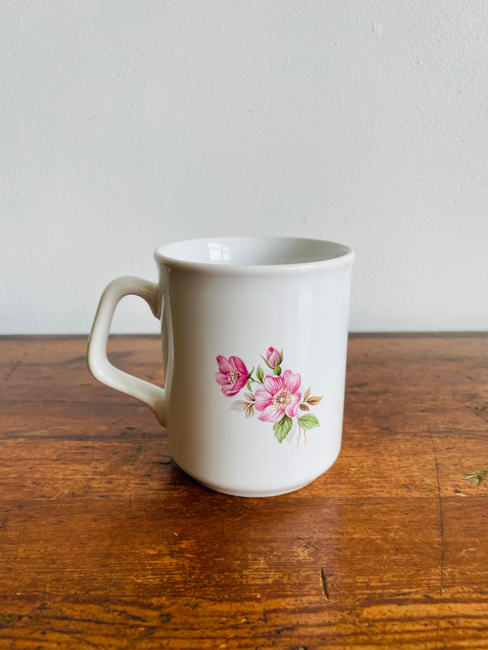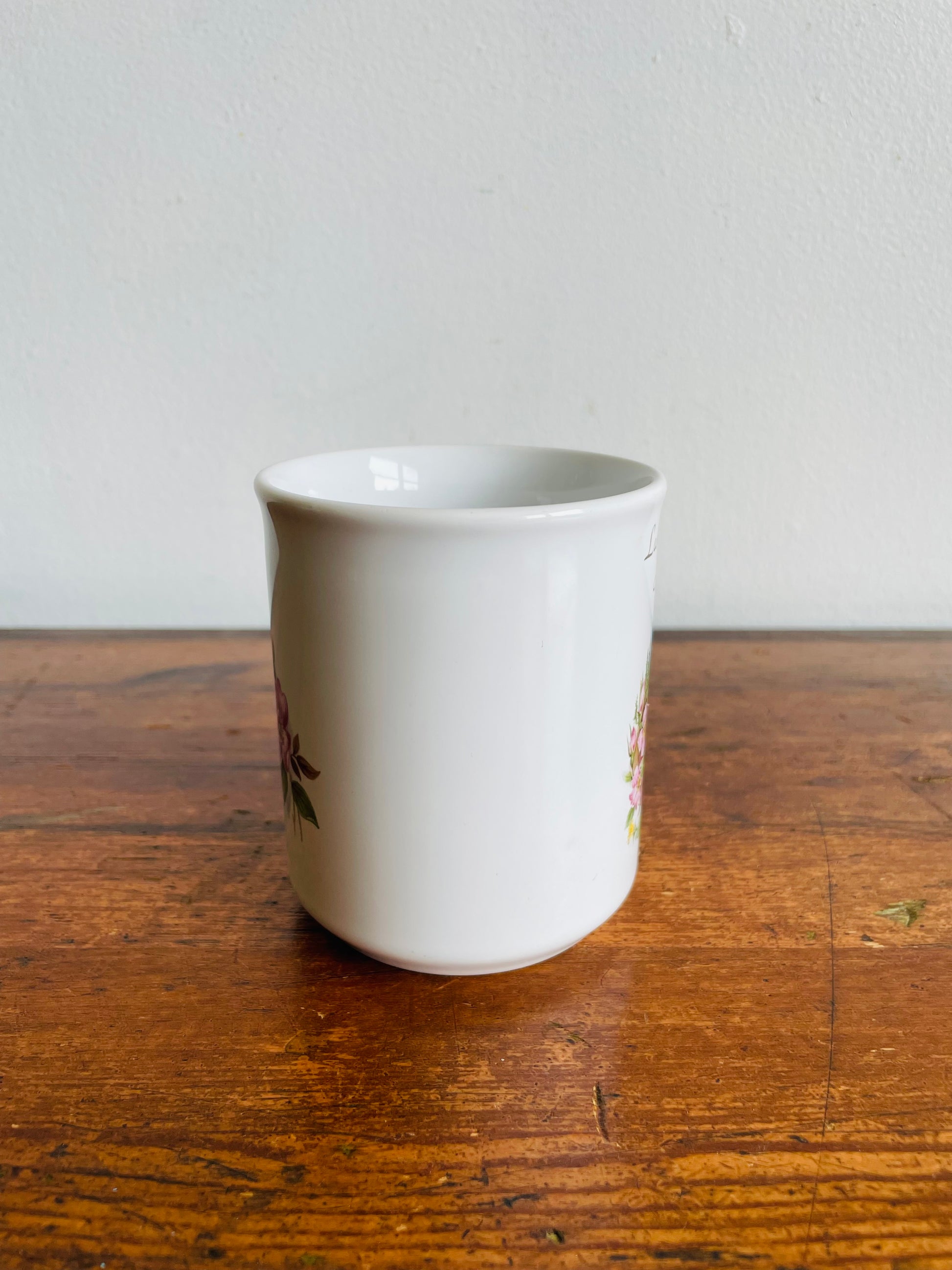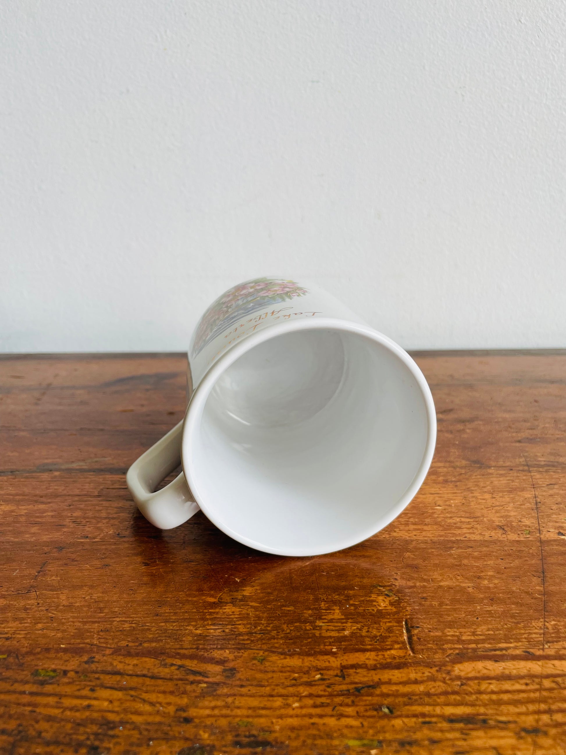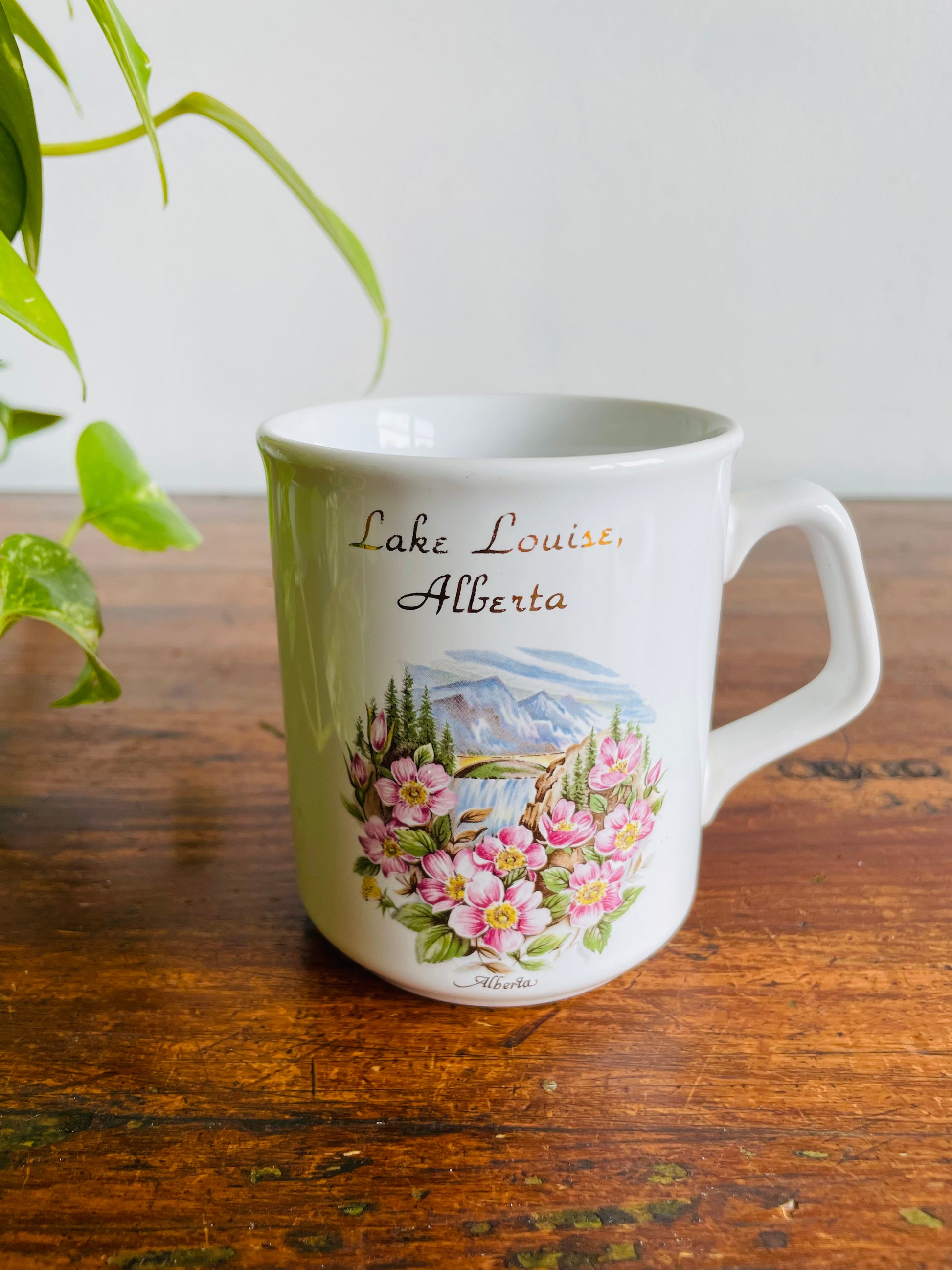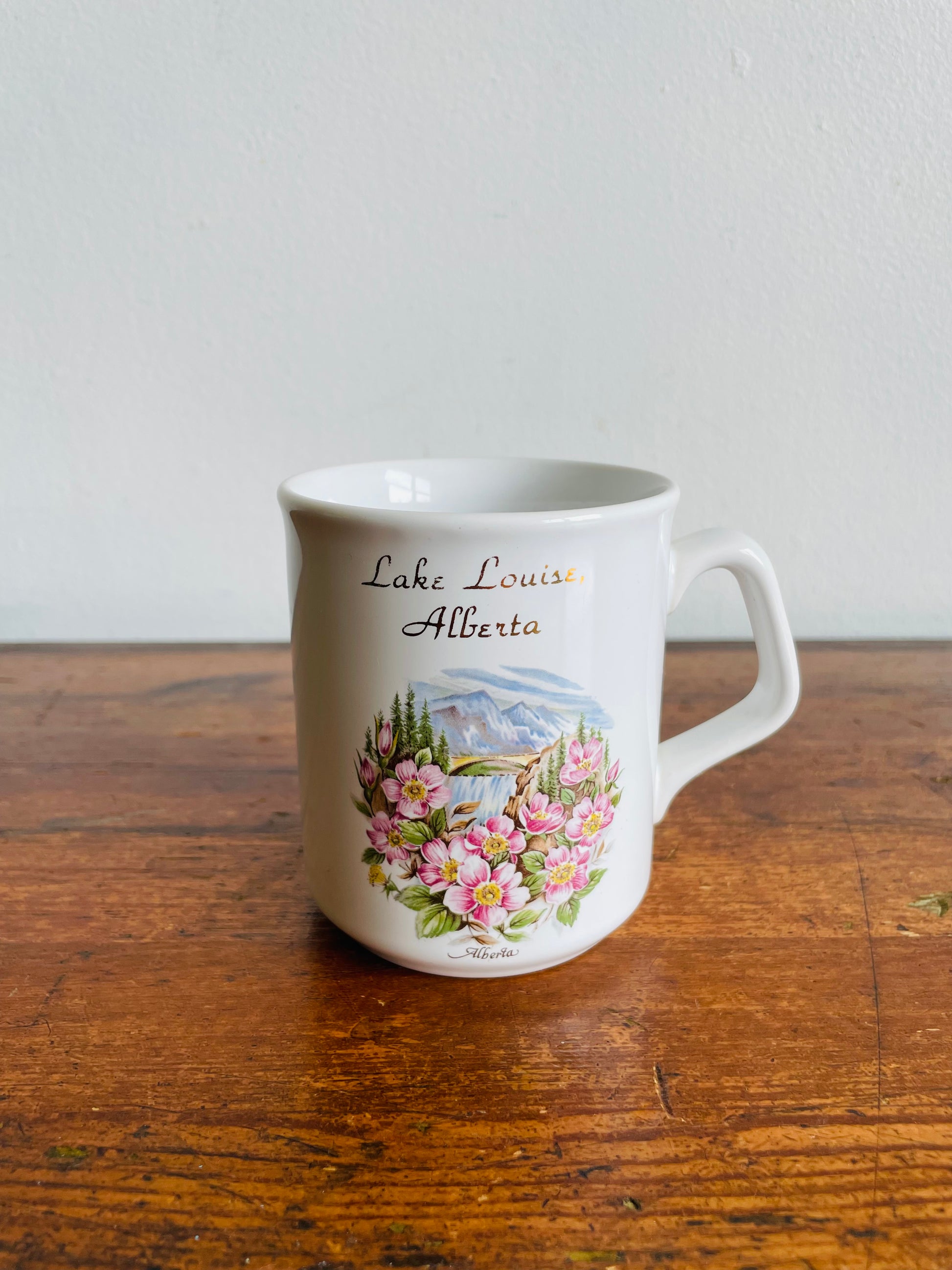 Lake Louise, Alberta White Mug with Flower & Mountain Graphic - Tams Made in England