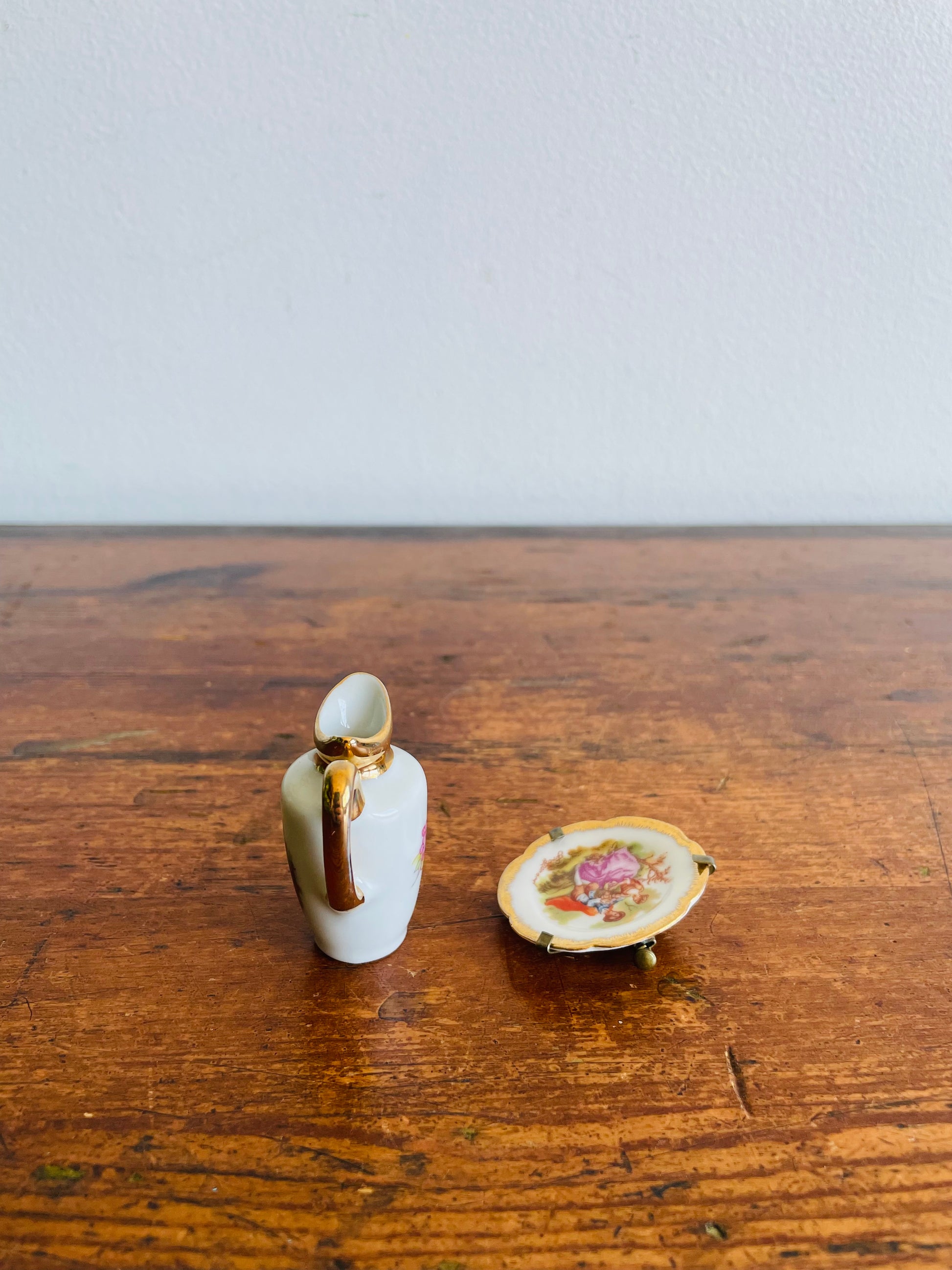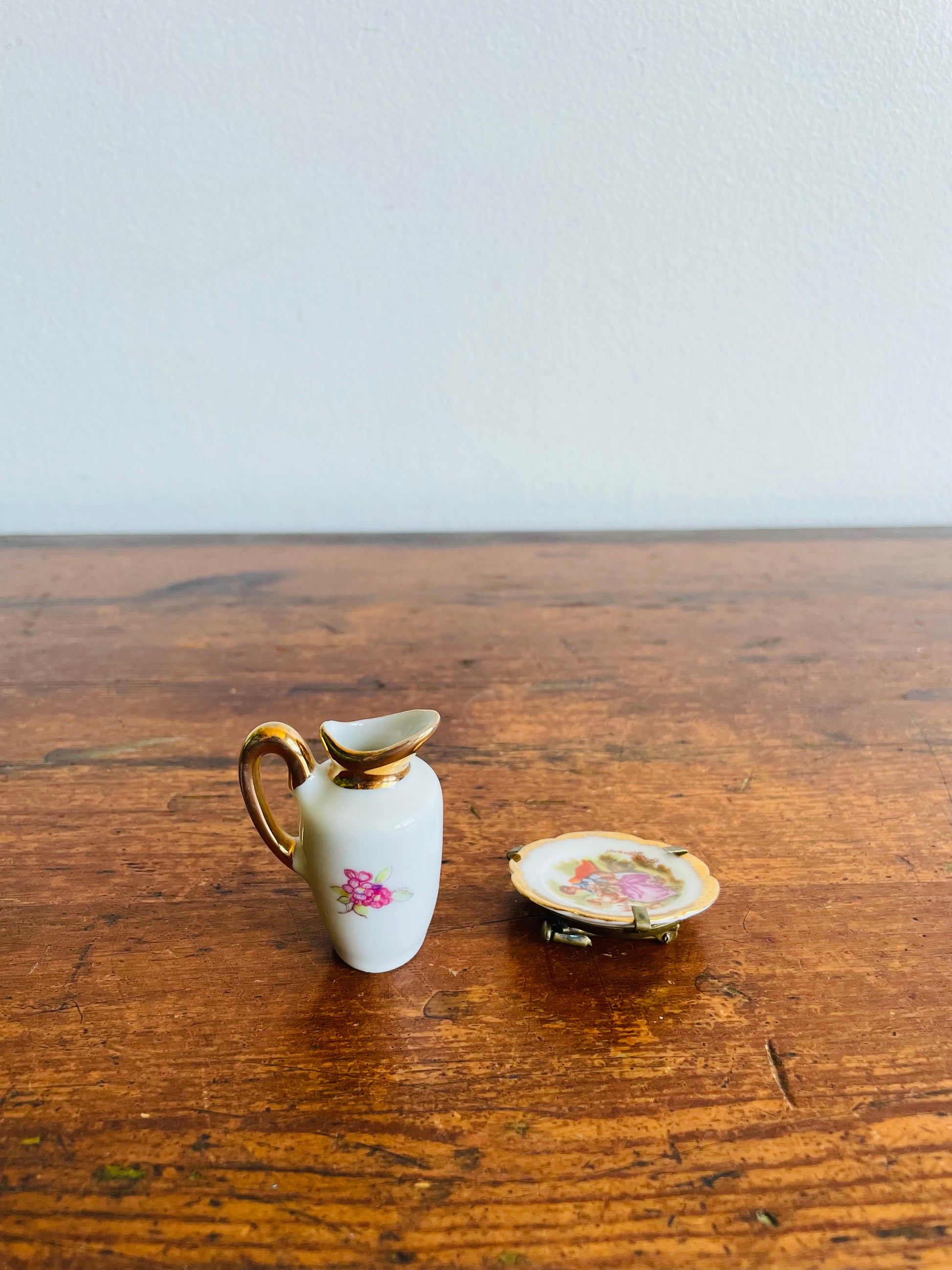 Limoges France Porcelain Dollhouse Miniatures - Pitcher & Plate