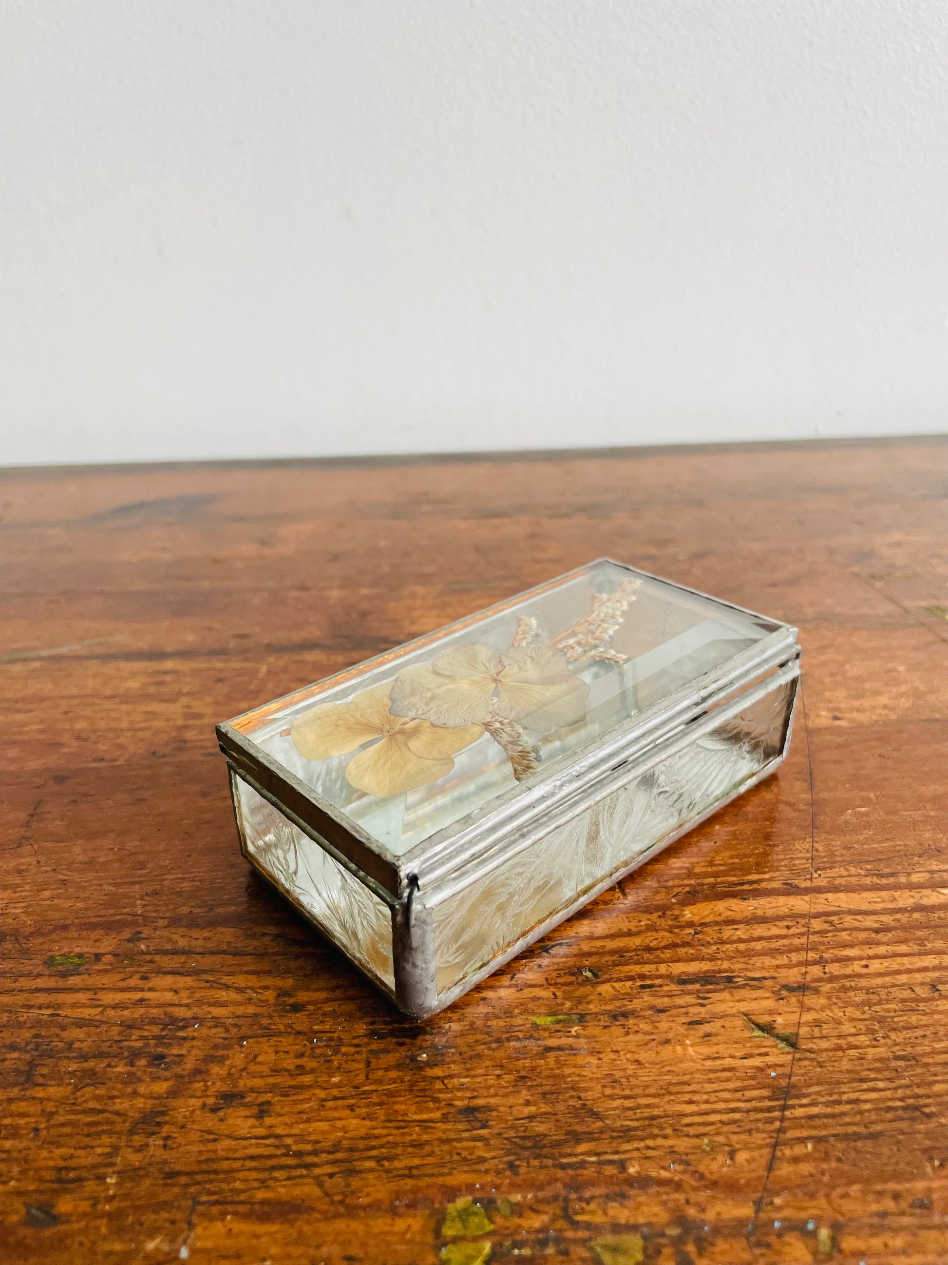 Metal & Glass Mirrored Trinket Jewellery Box with Dried Pressed Flower Lid