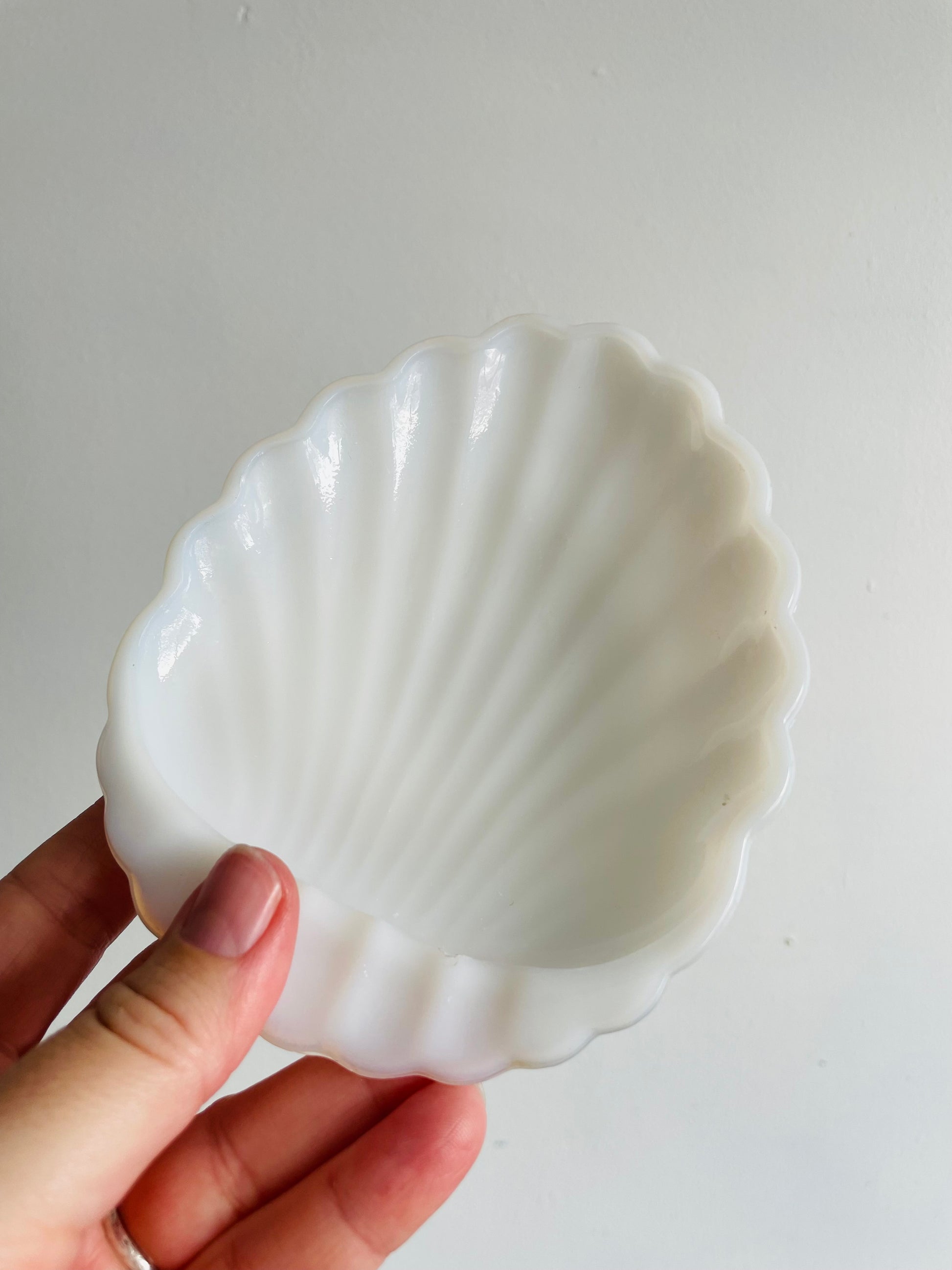 Milk Glass Shell Shaped Trinket Dish - Great for Jewellery, Soap, Scrubber, Business Cards, Etc.