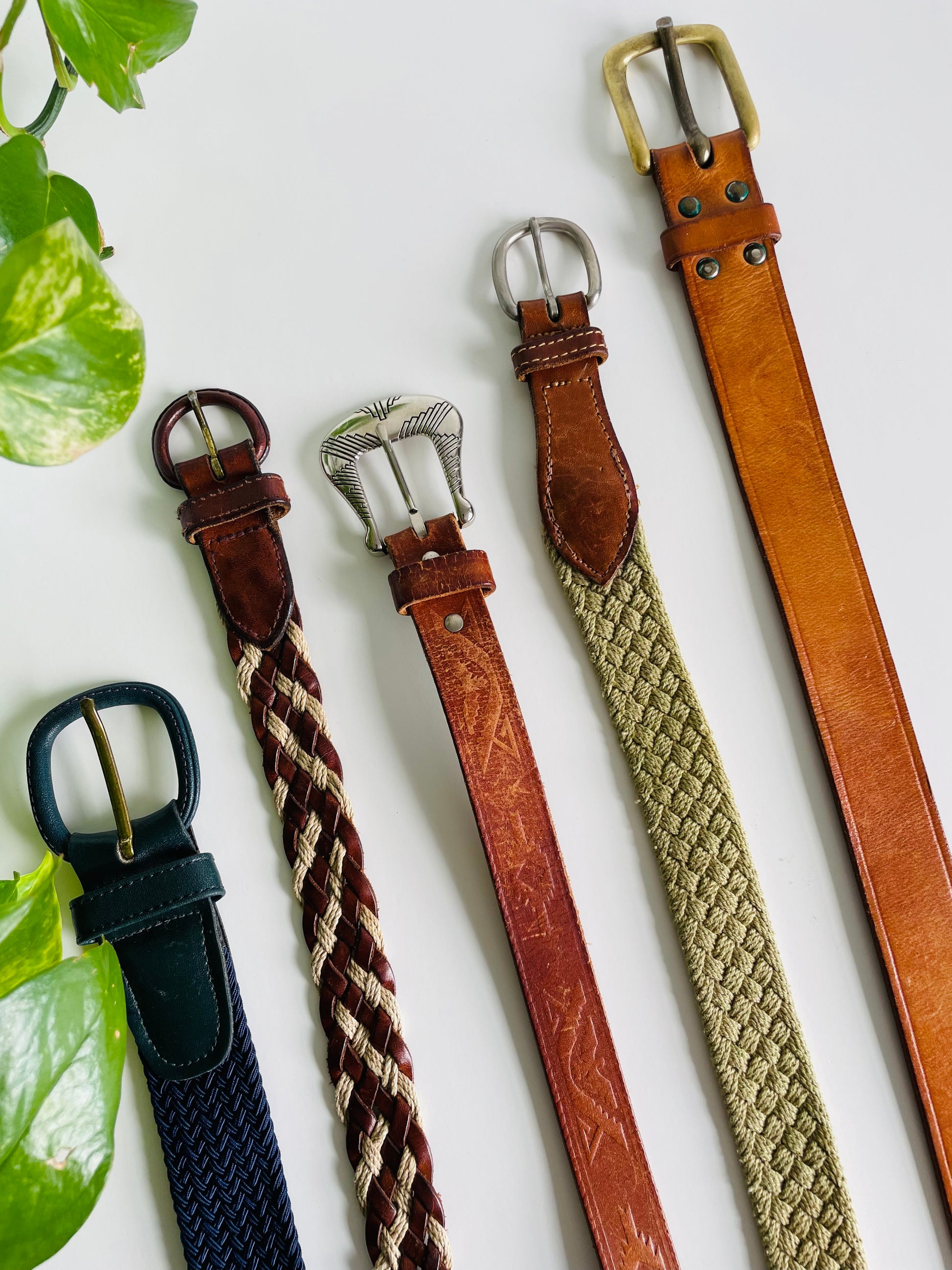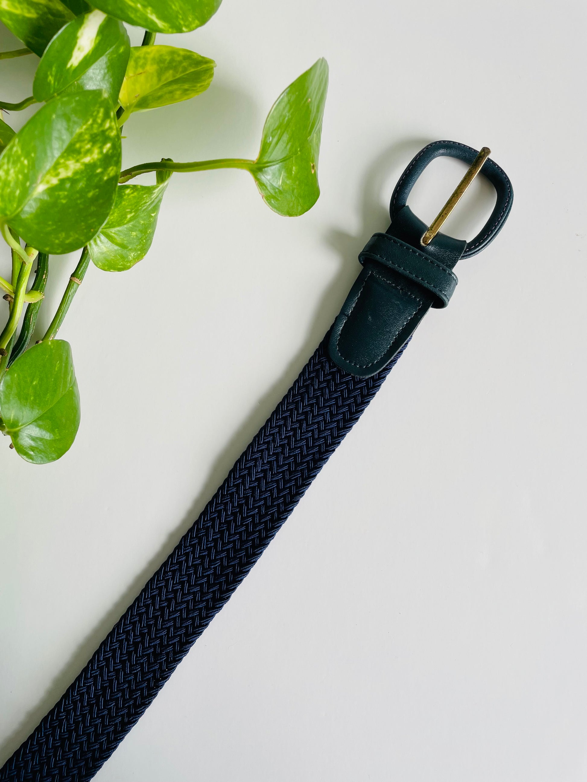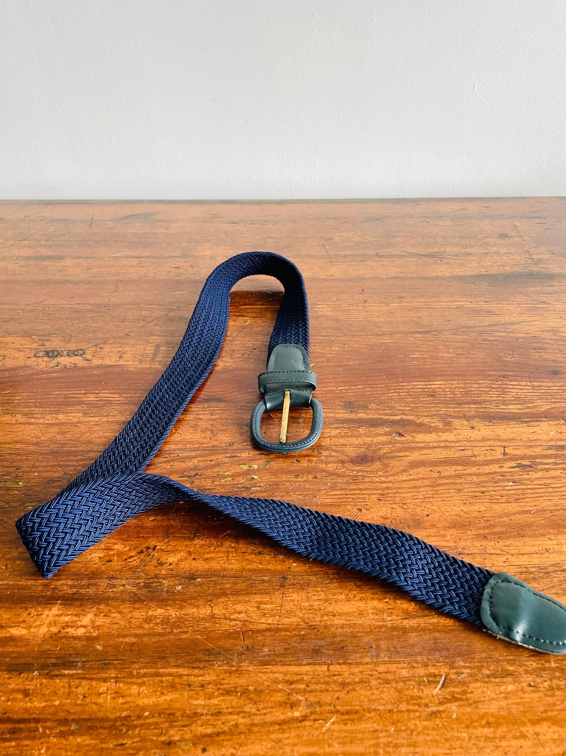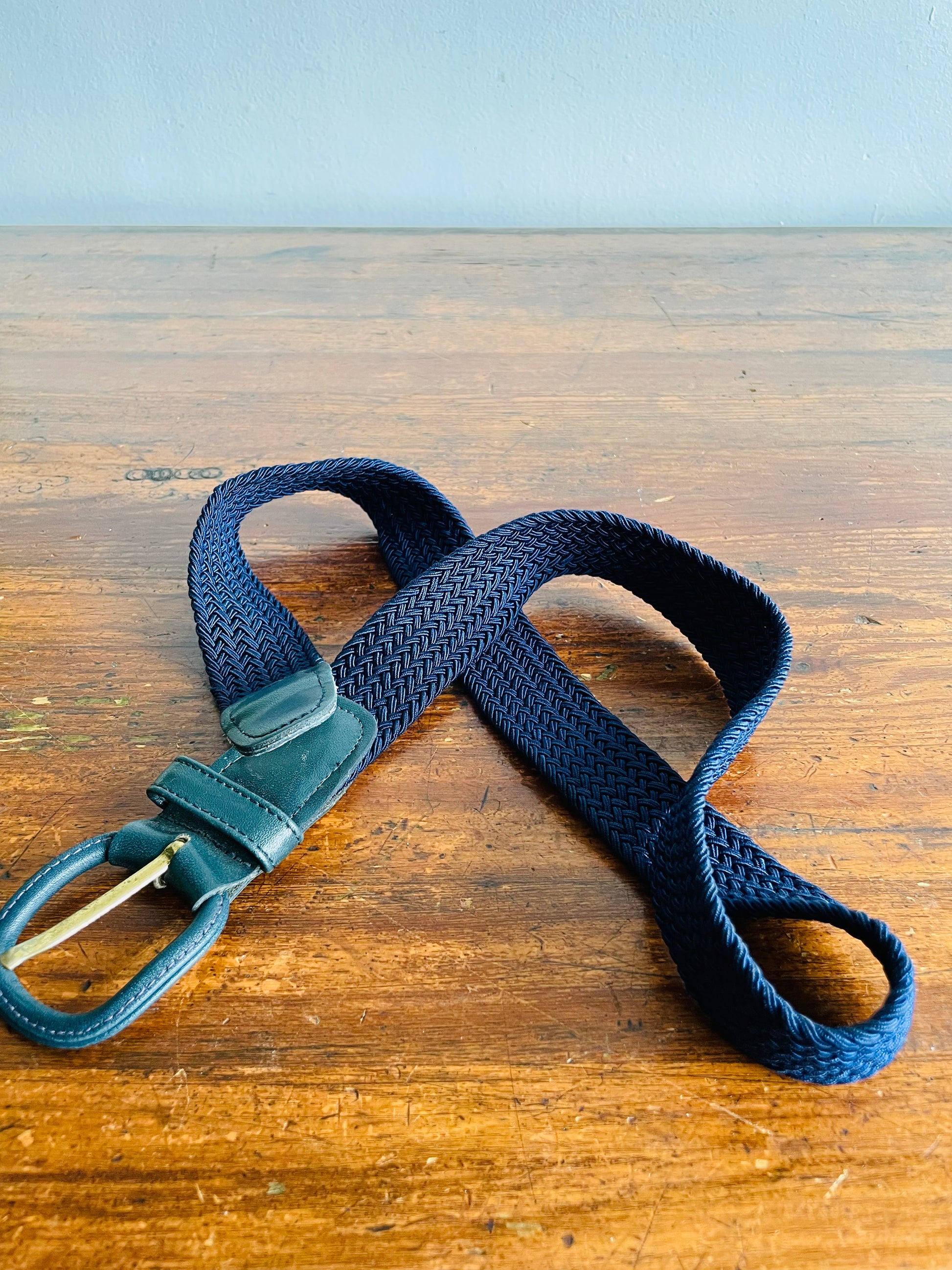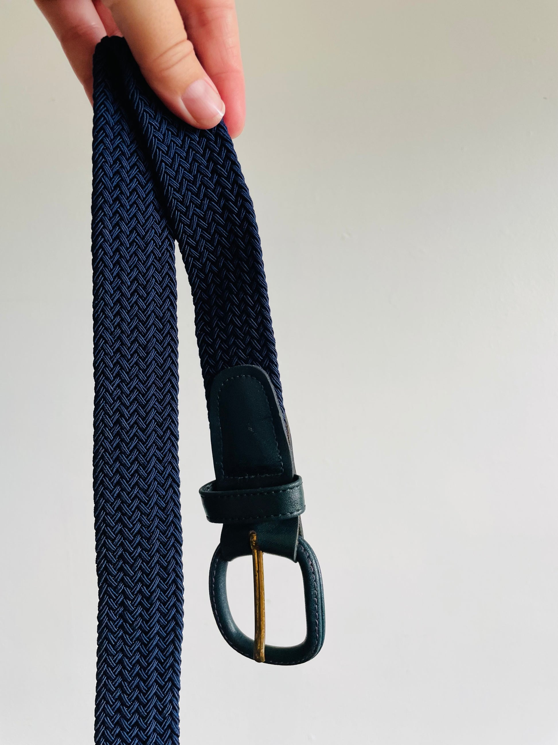 Navy Blue Braided Rope Belt with Leather Buckle - Very Stretchy Rope!