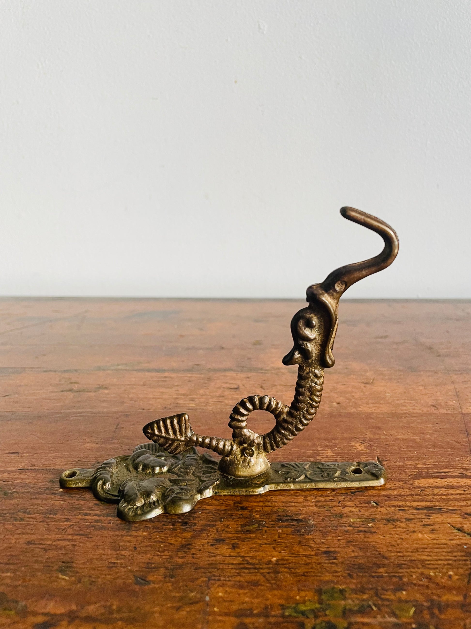 Vintage Ornate Brass Wall Hook with Dragon Serpent Mystical Animal
