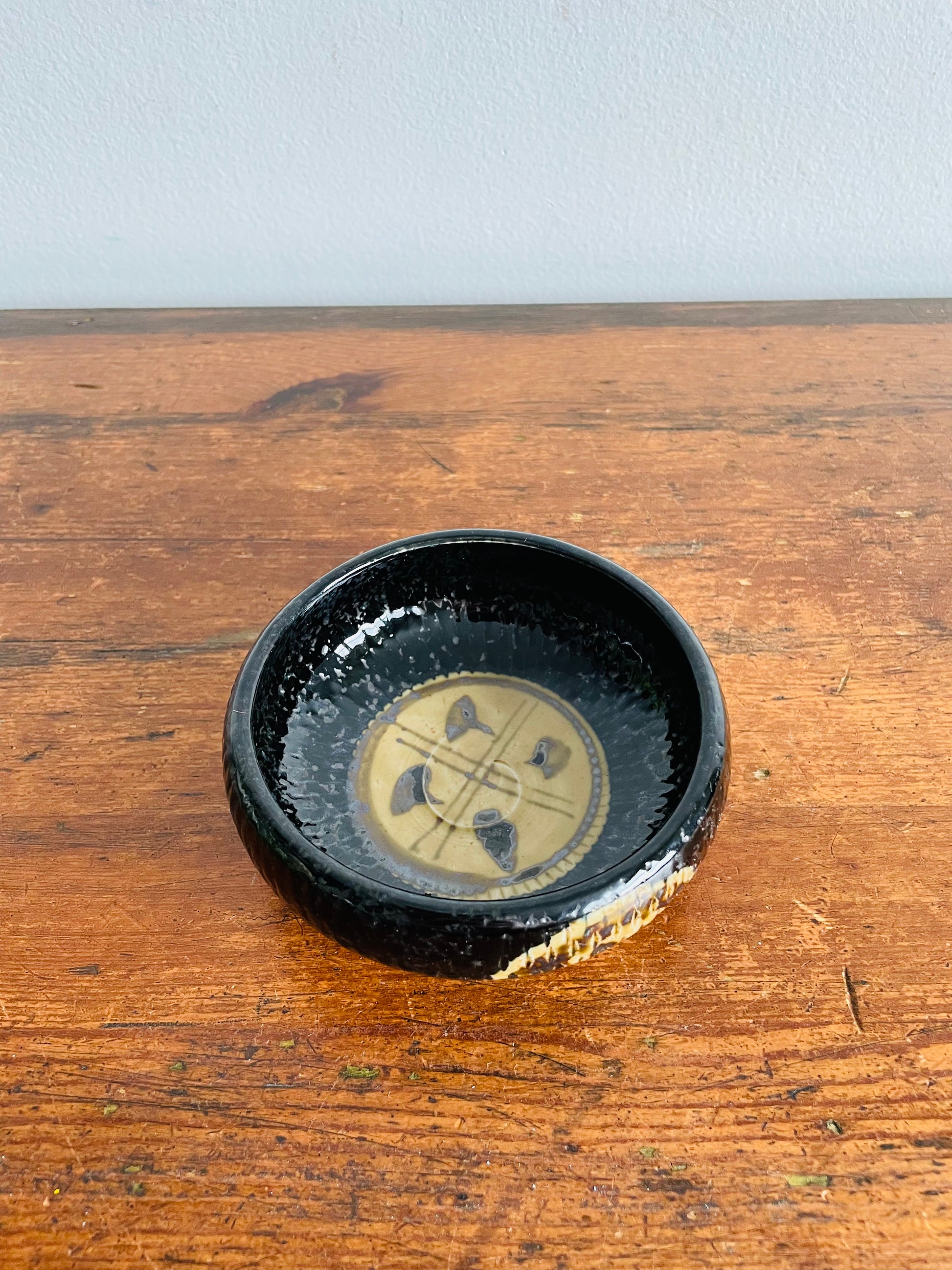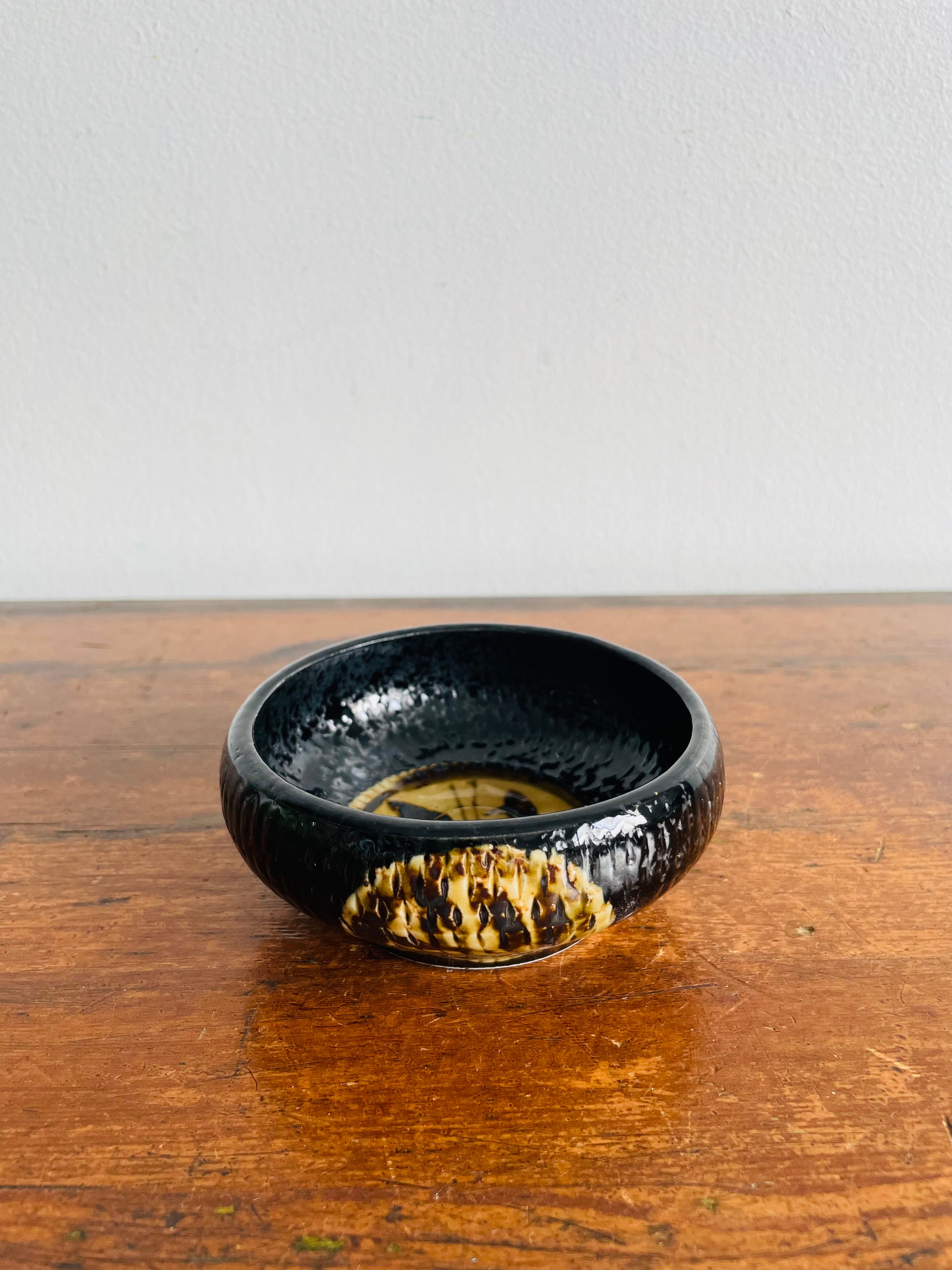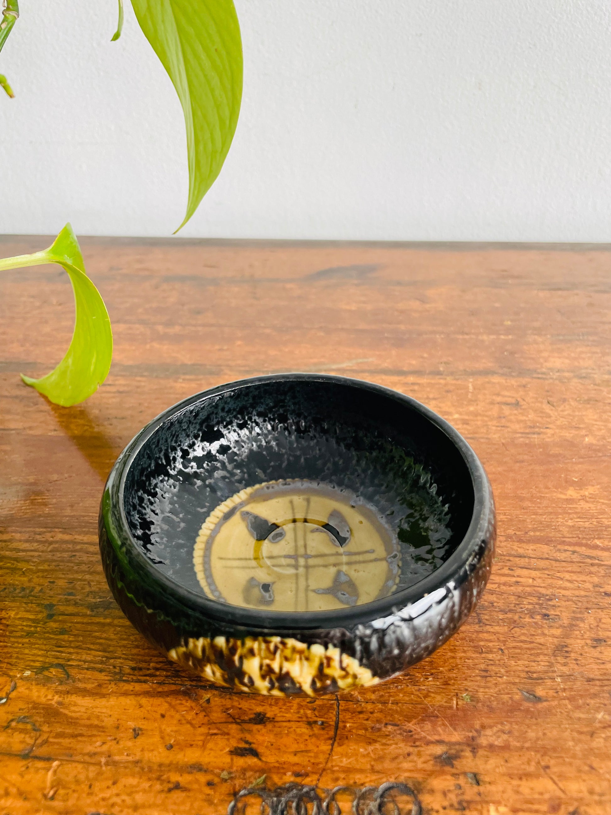 Pottery Trinket Bowl Dish with Black & Brown Design