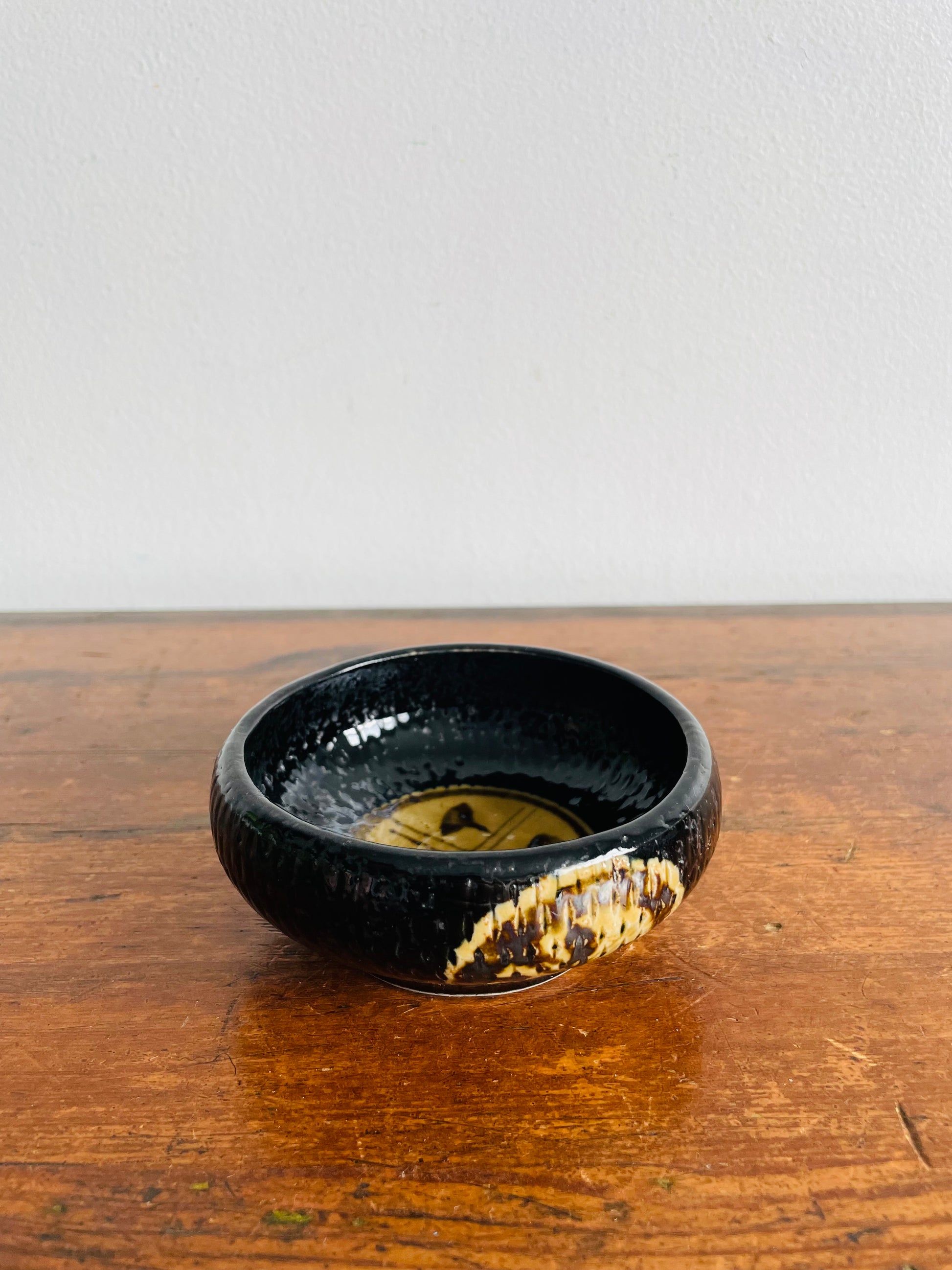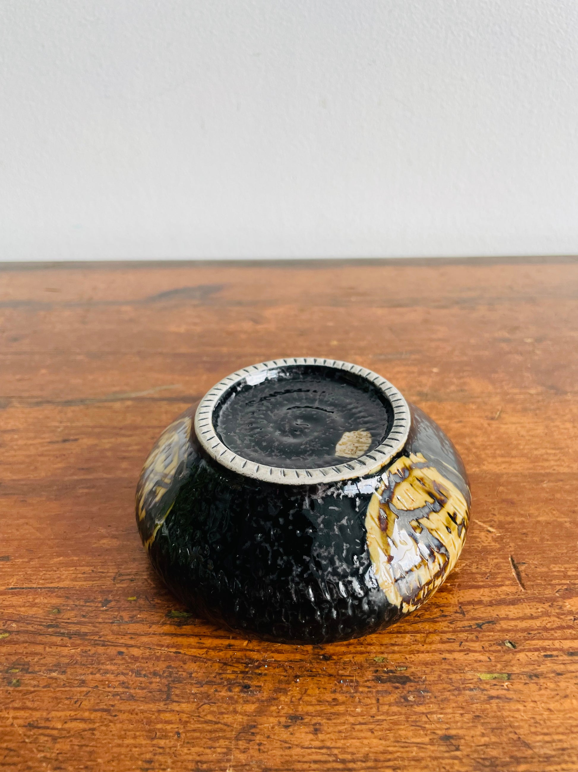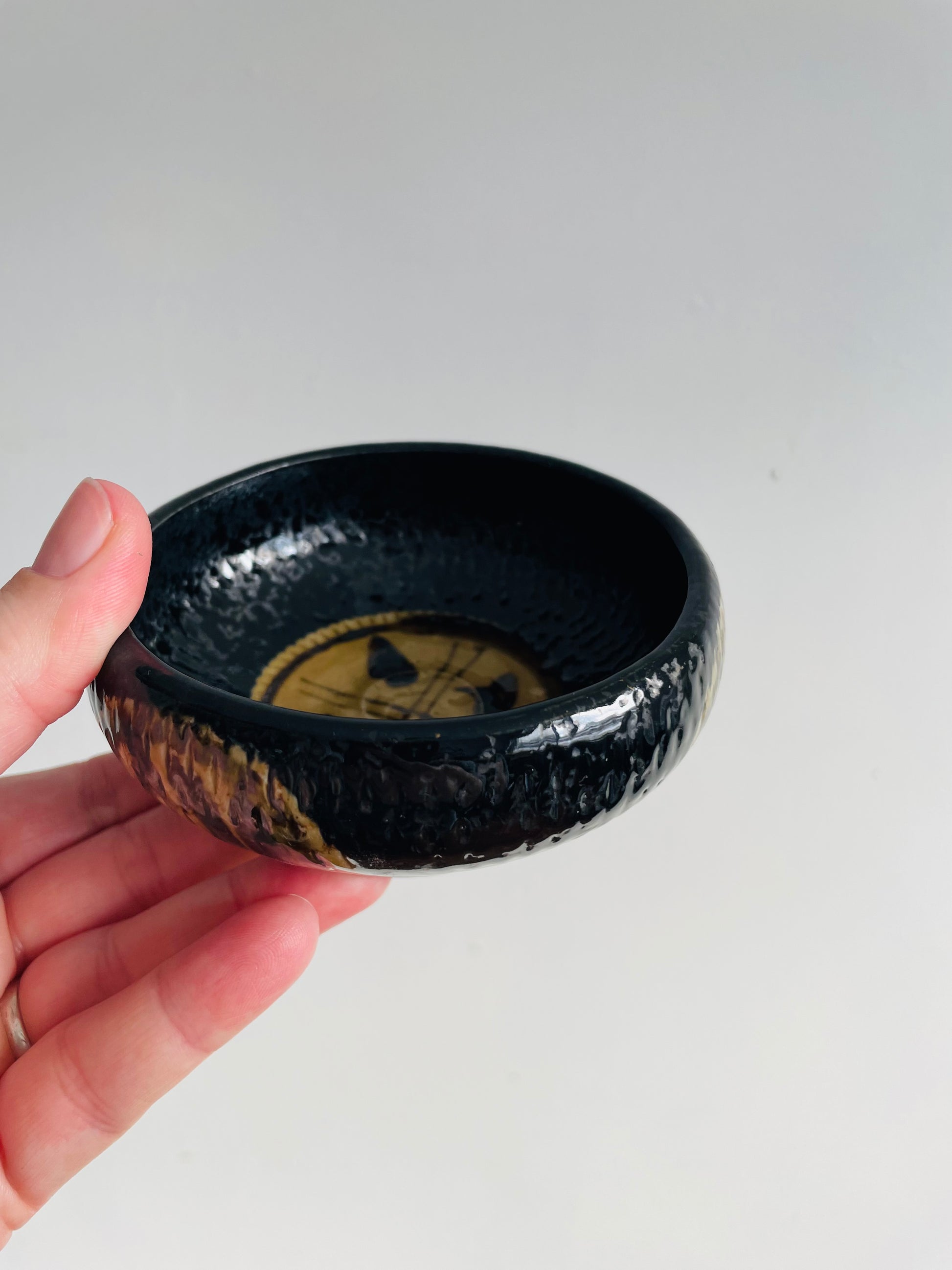 Pottery Trinket Bowl Dish with Black & Brown Design