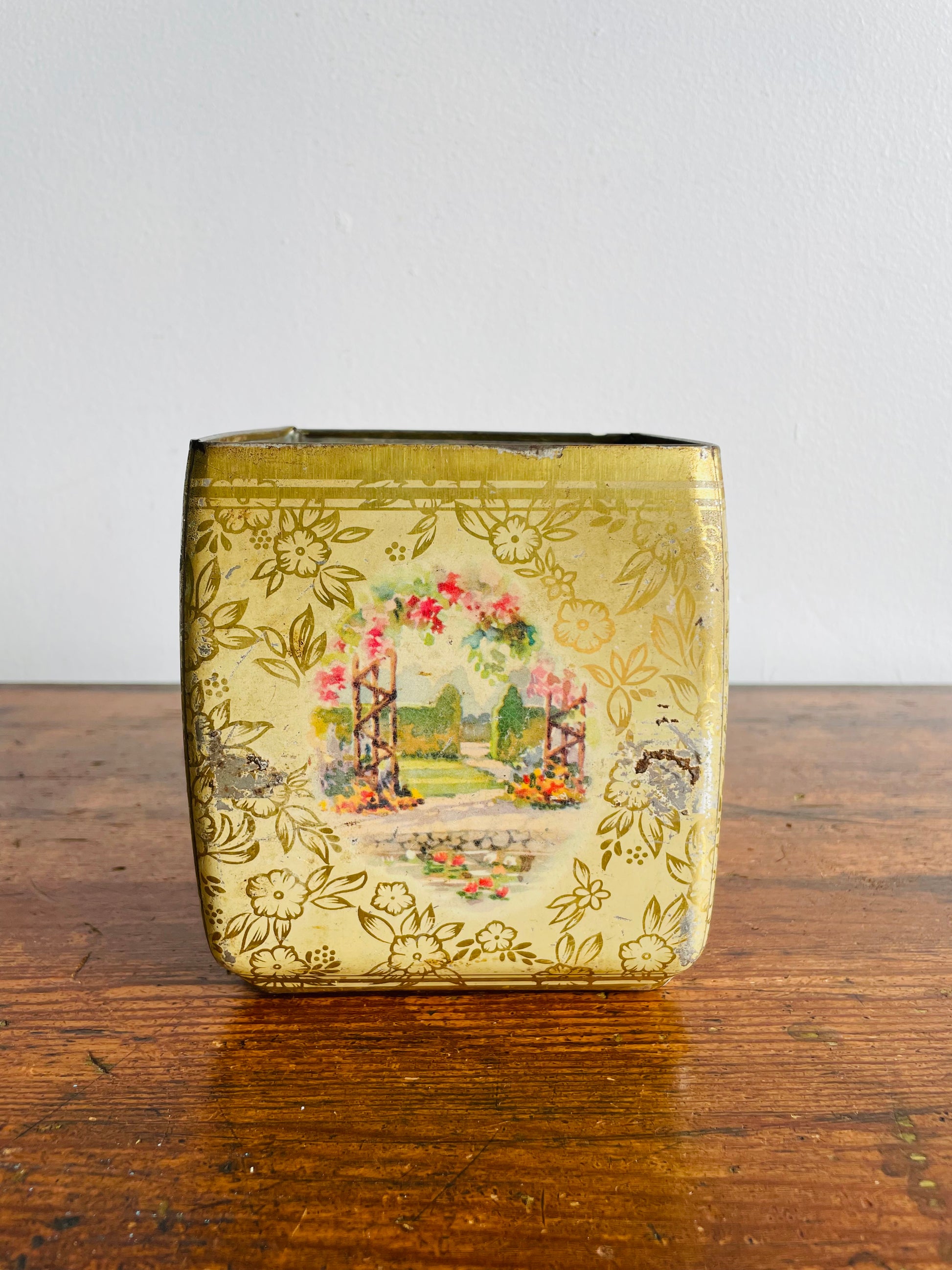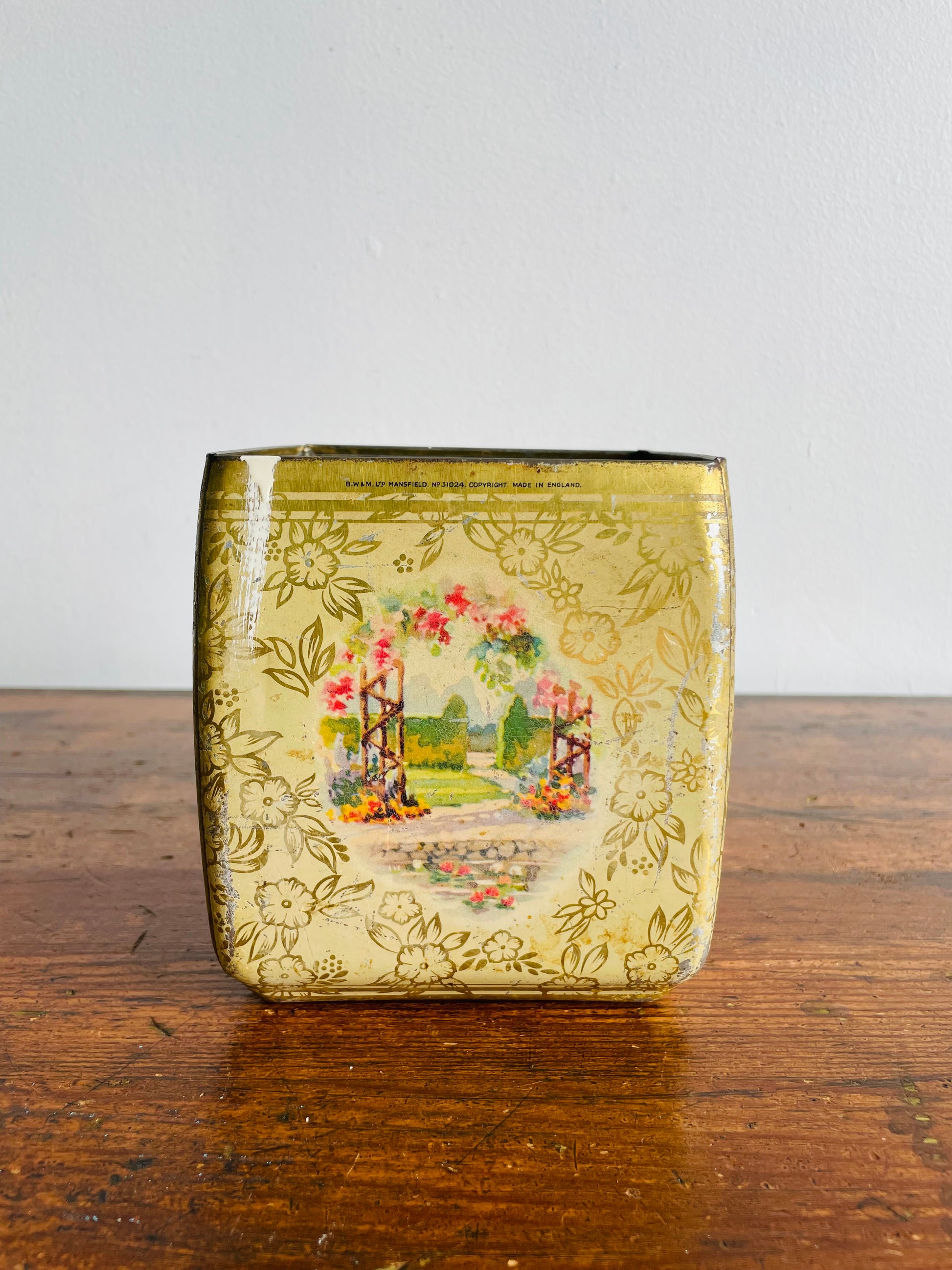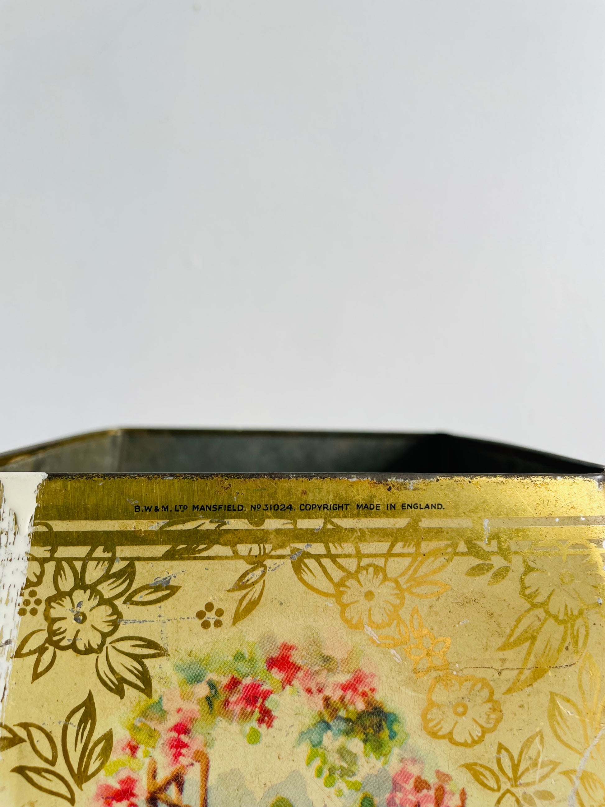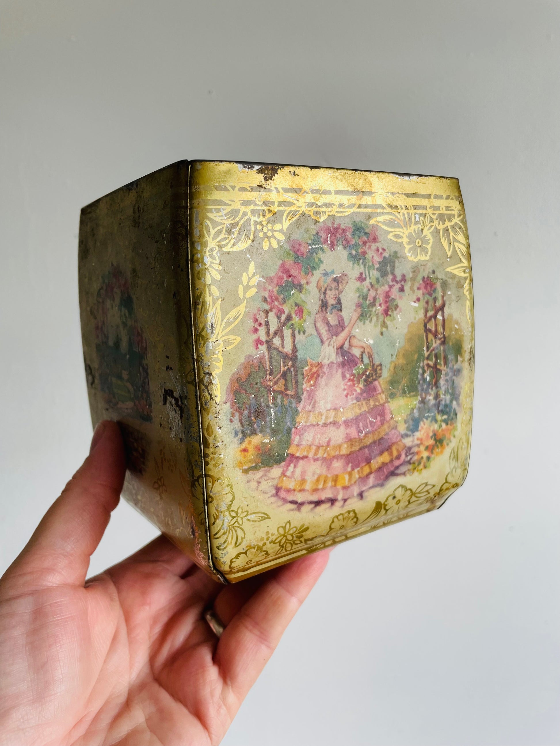 Pretty Toffee Candy Tin with Lady in Crinoline Dress - Made in England - Makes a Great Plant Pot or Utensil Caddy!