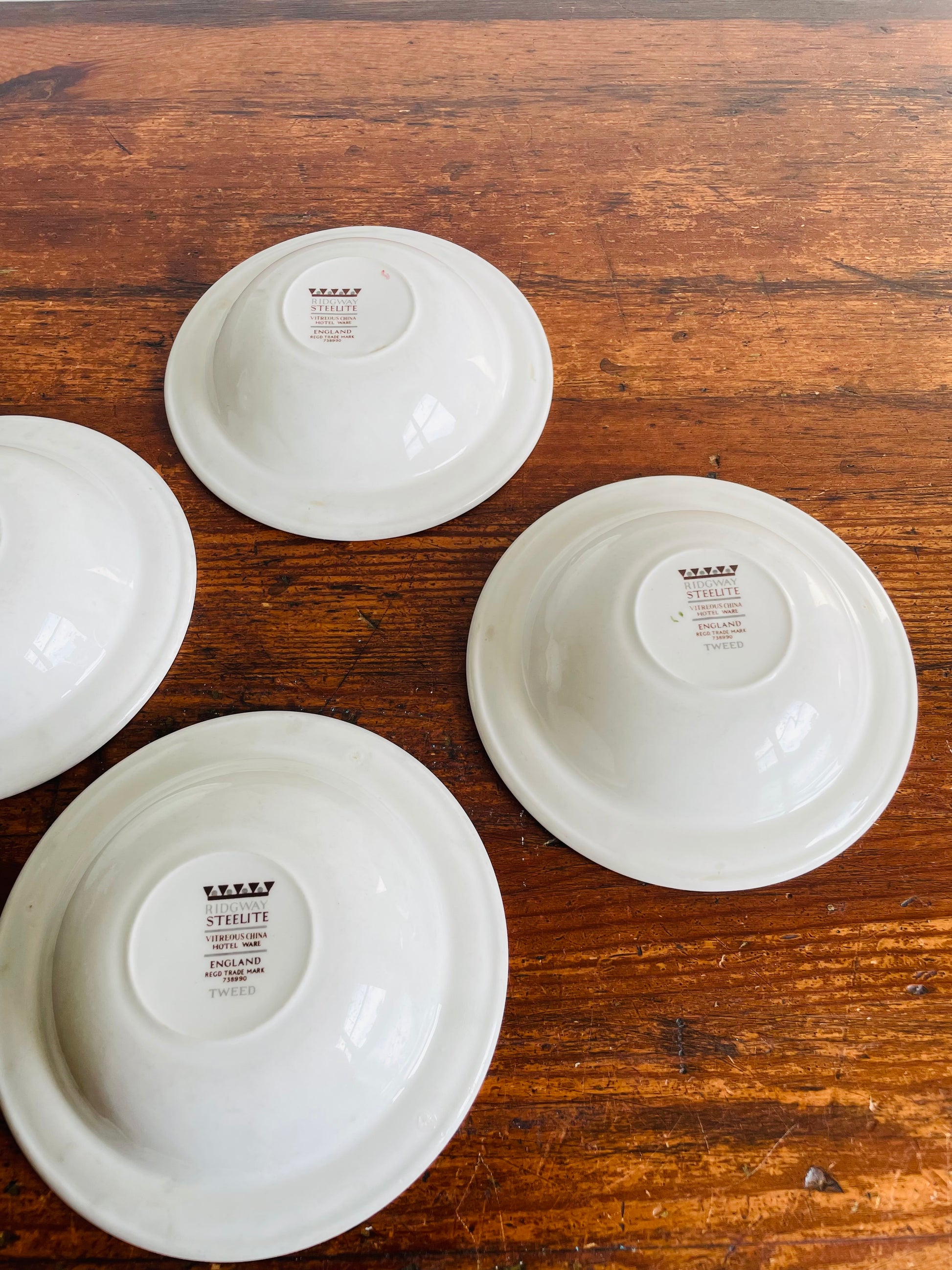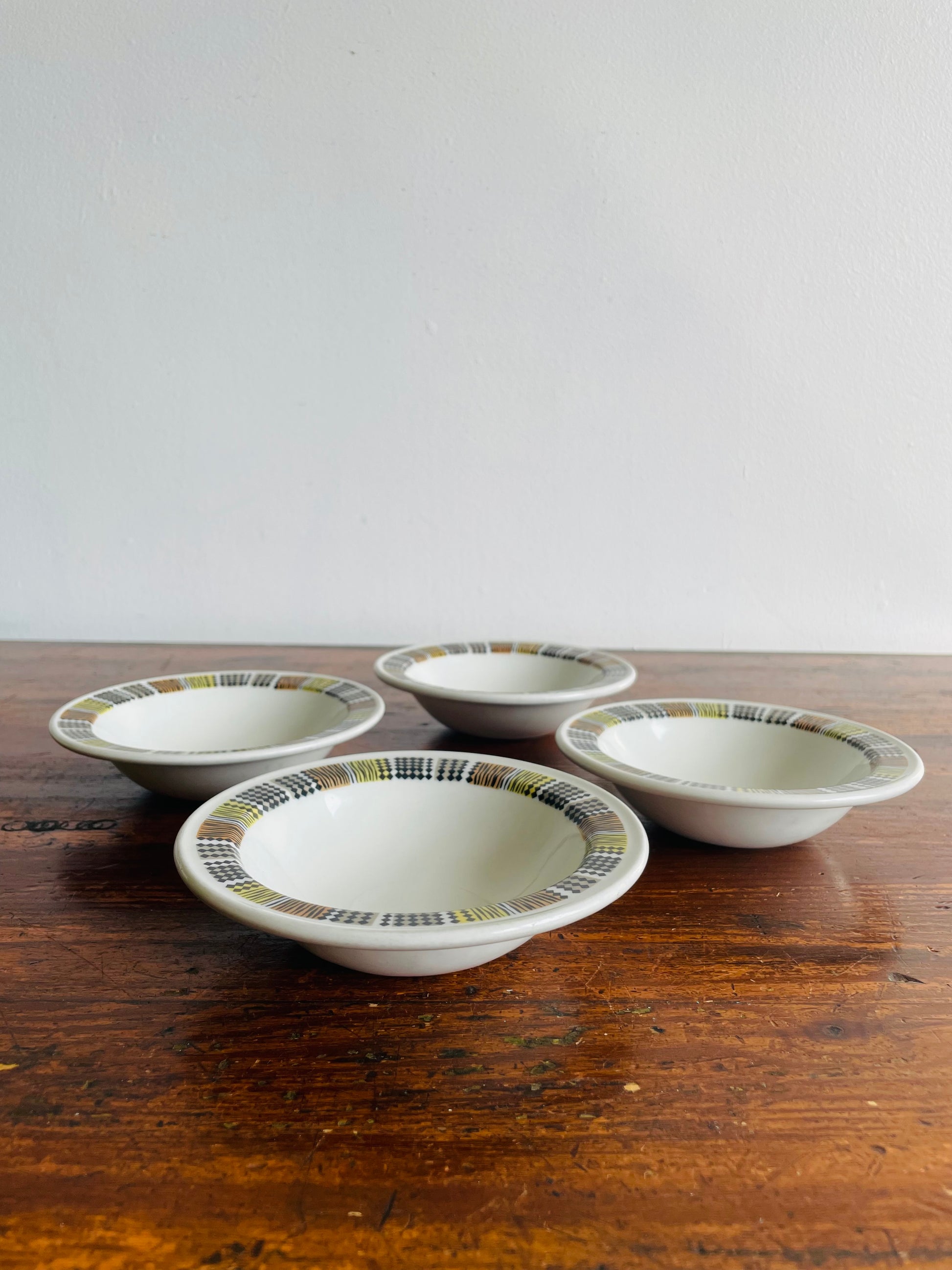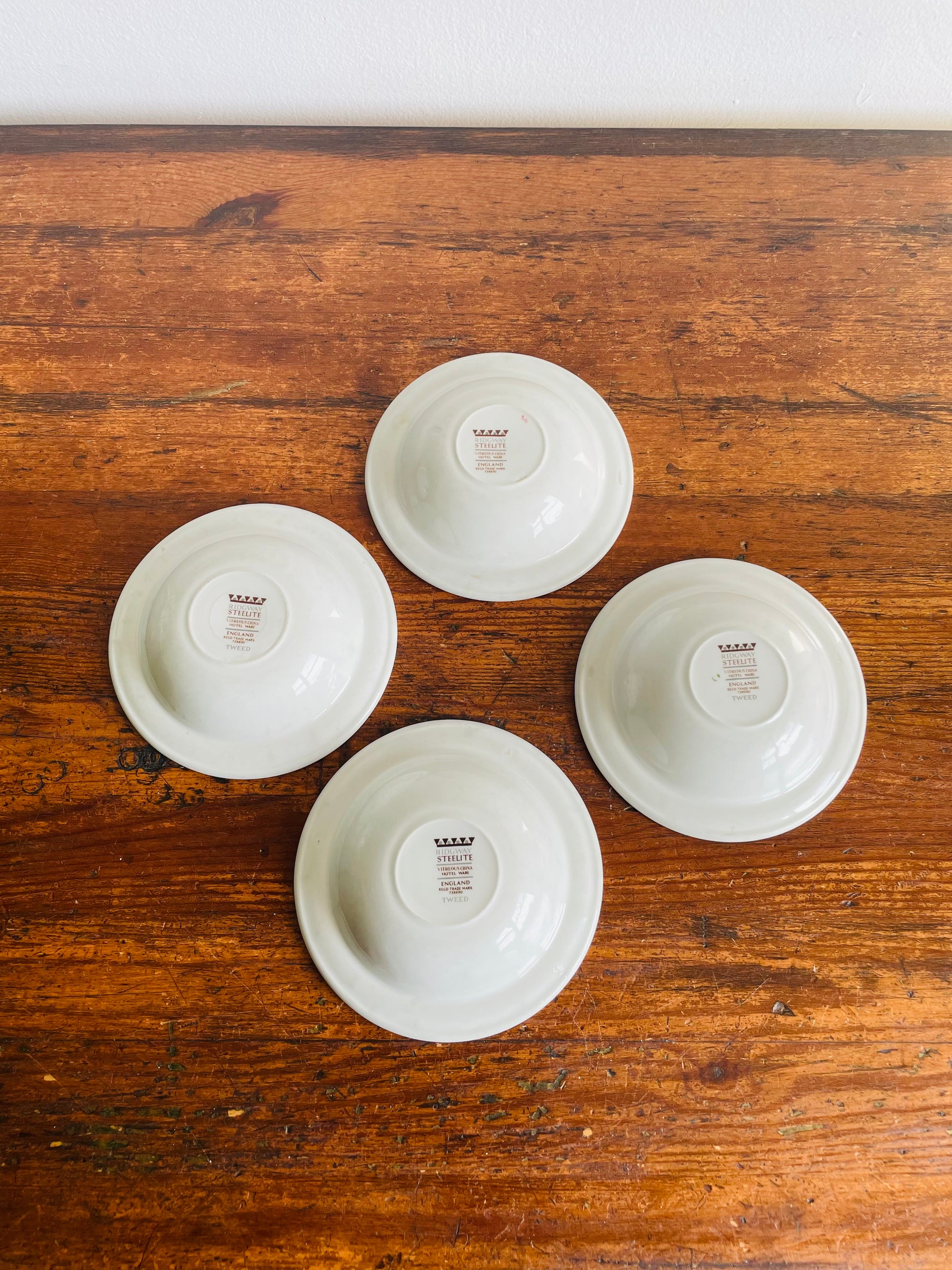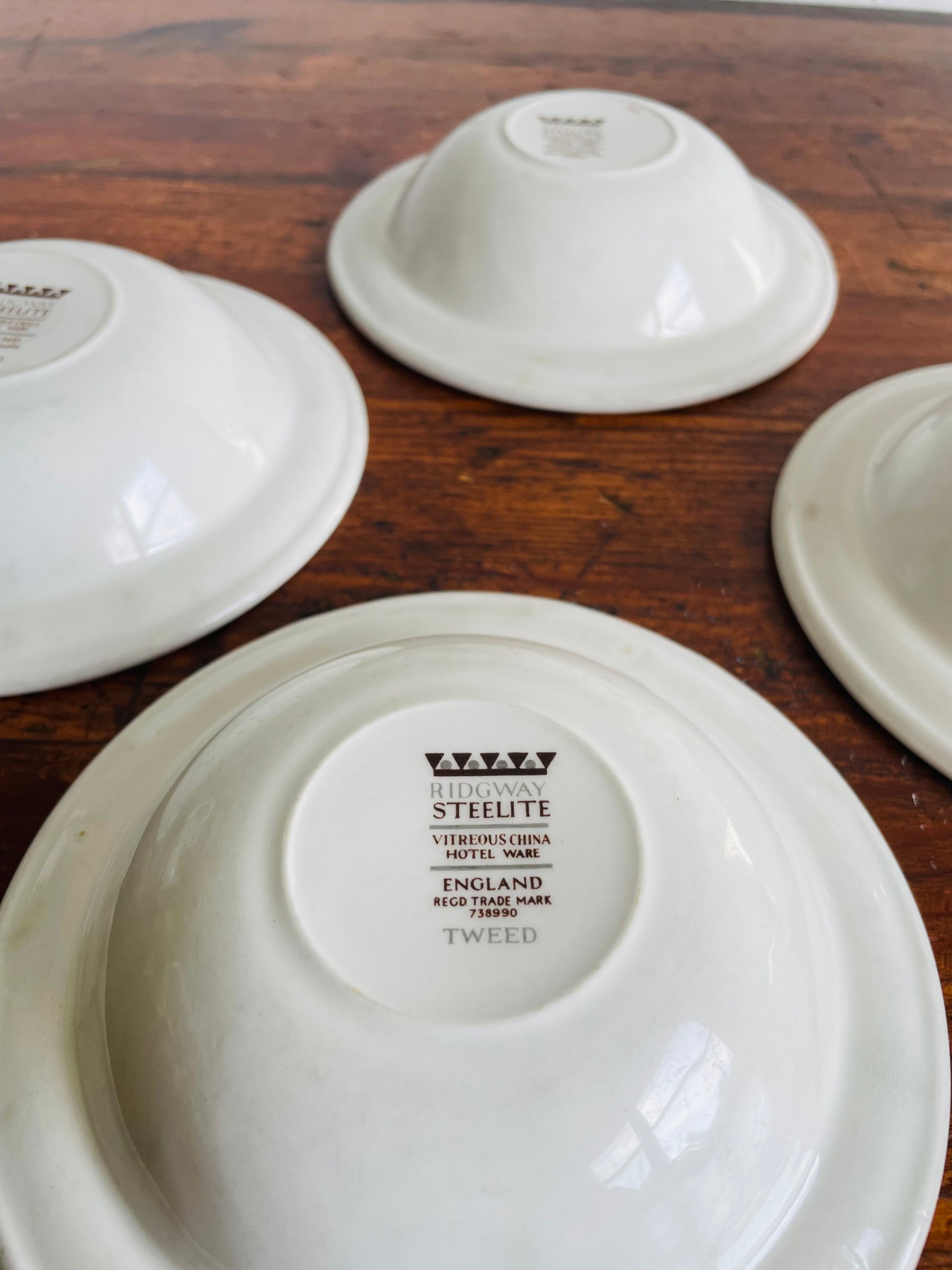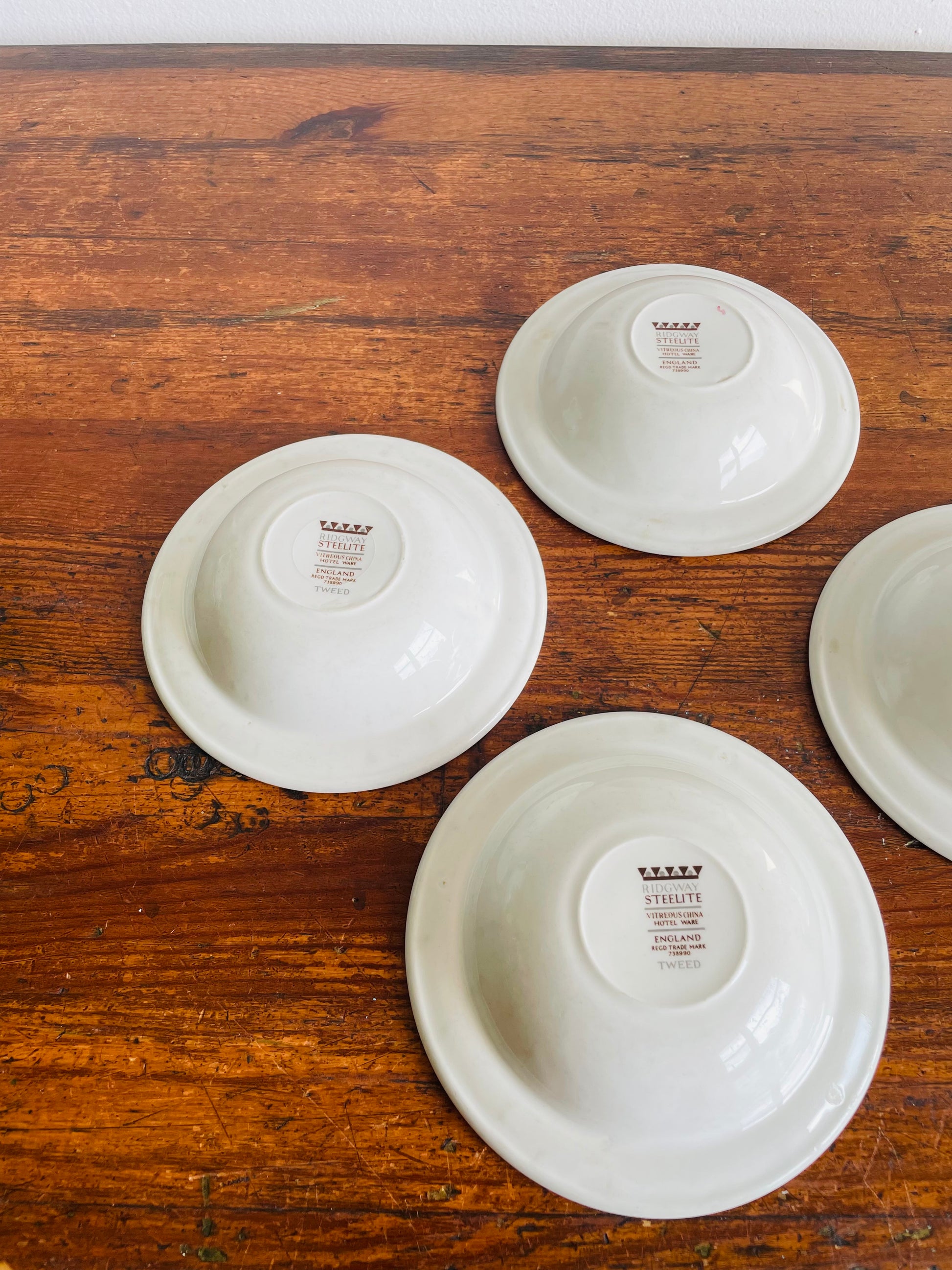 Ridgway Steelite Small Bowls with Tweed Pattern Rim - Vitreous China Hotelware - Made in England - Set of 4