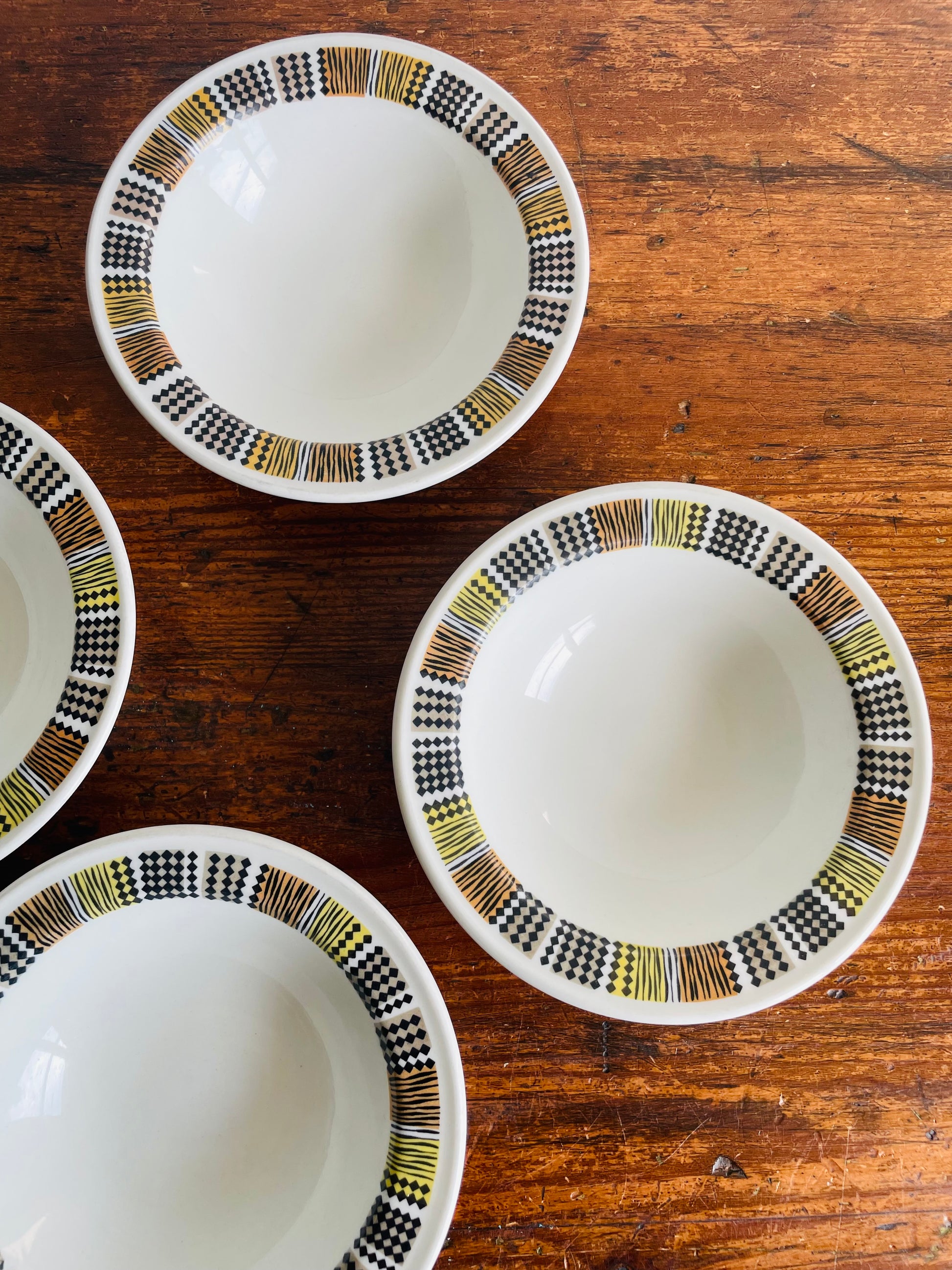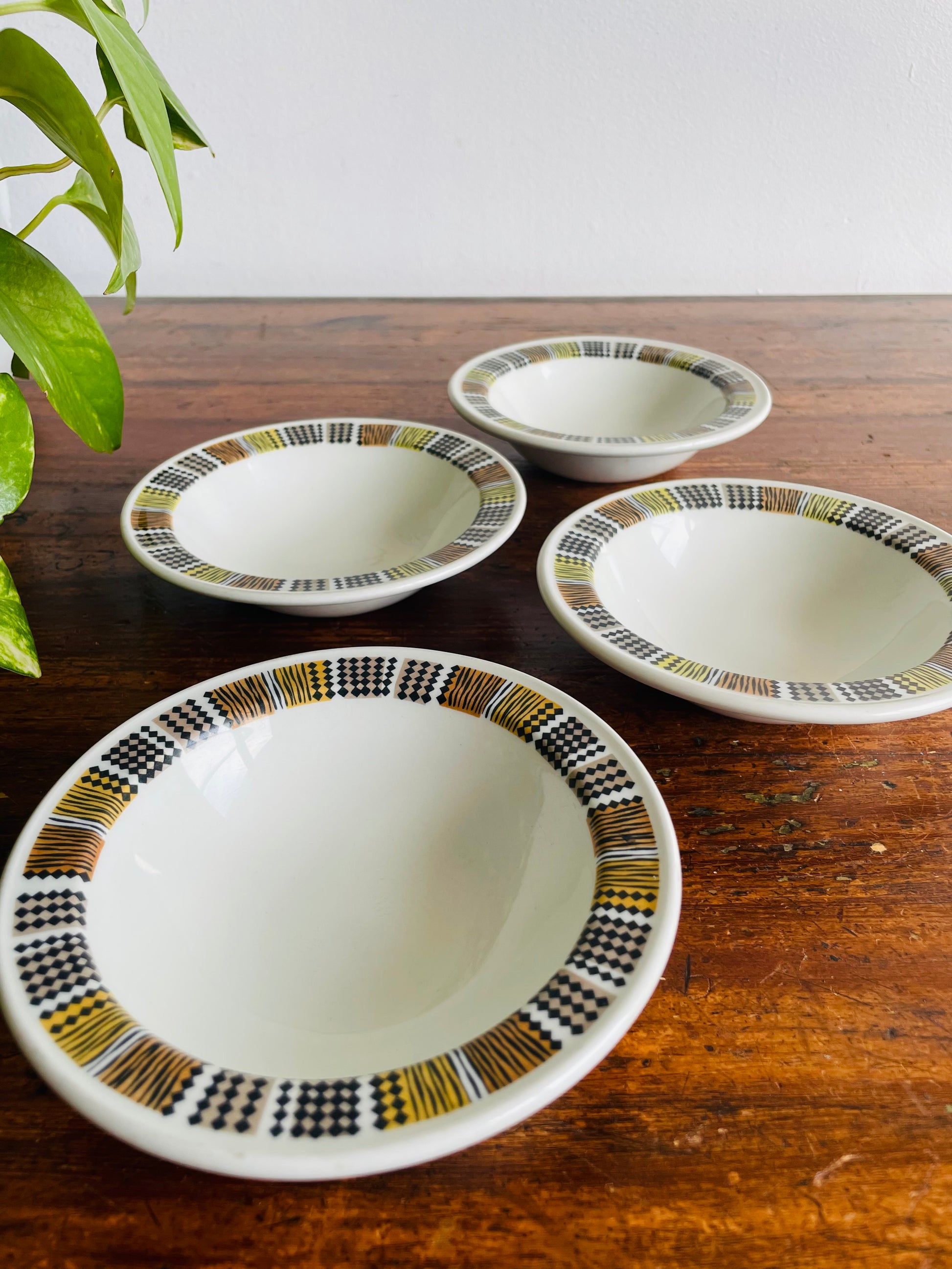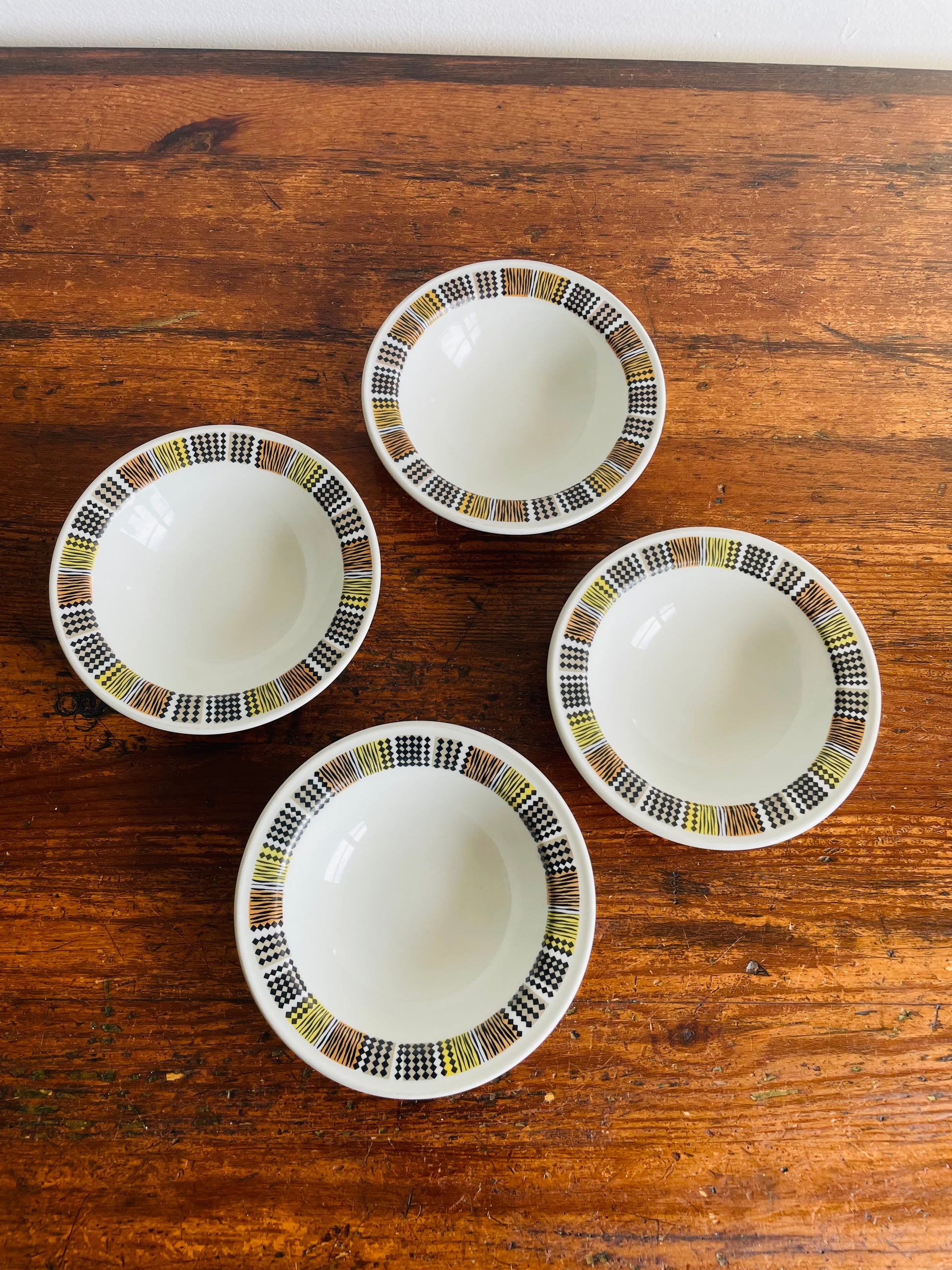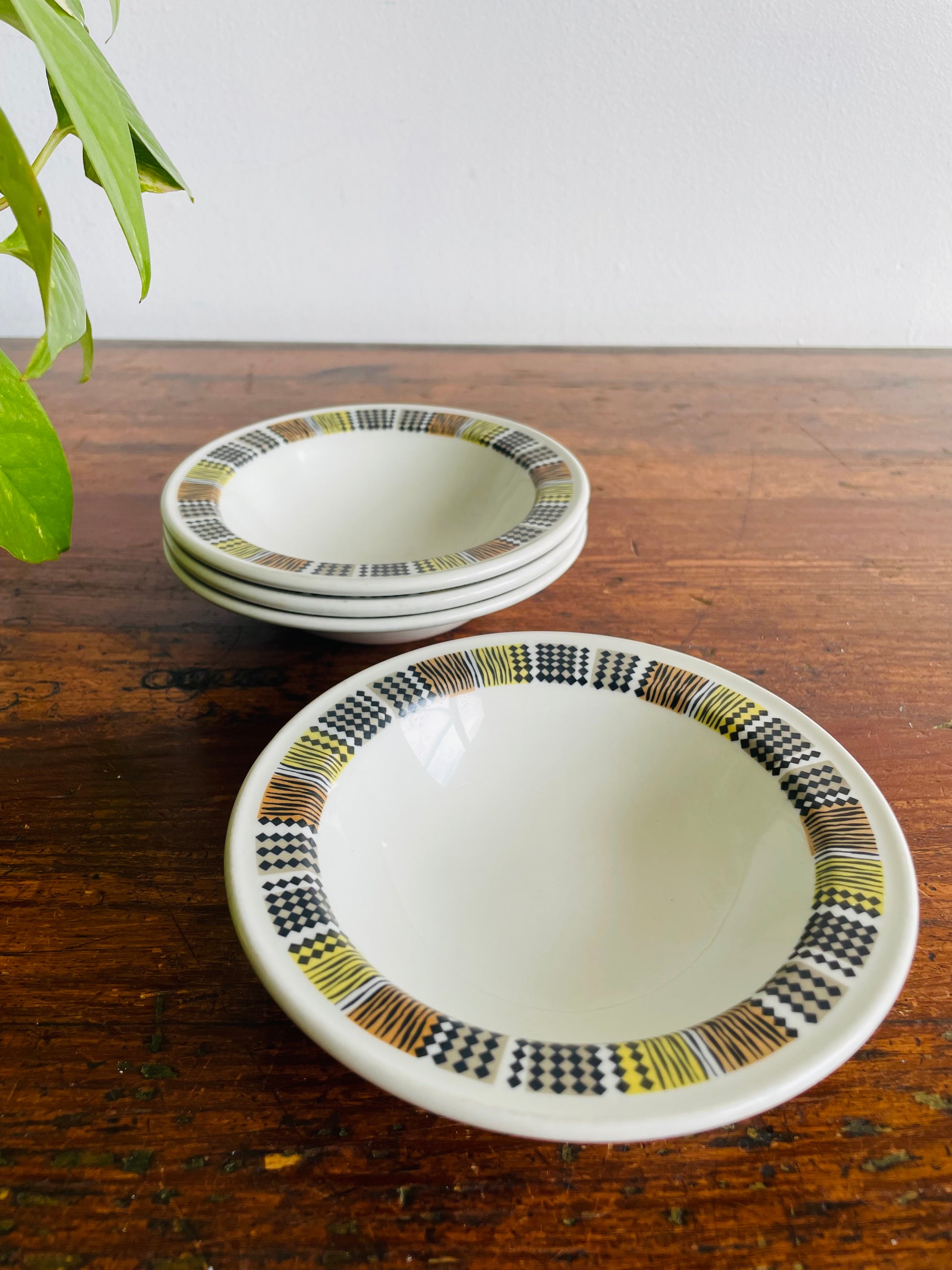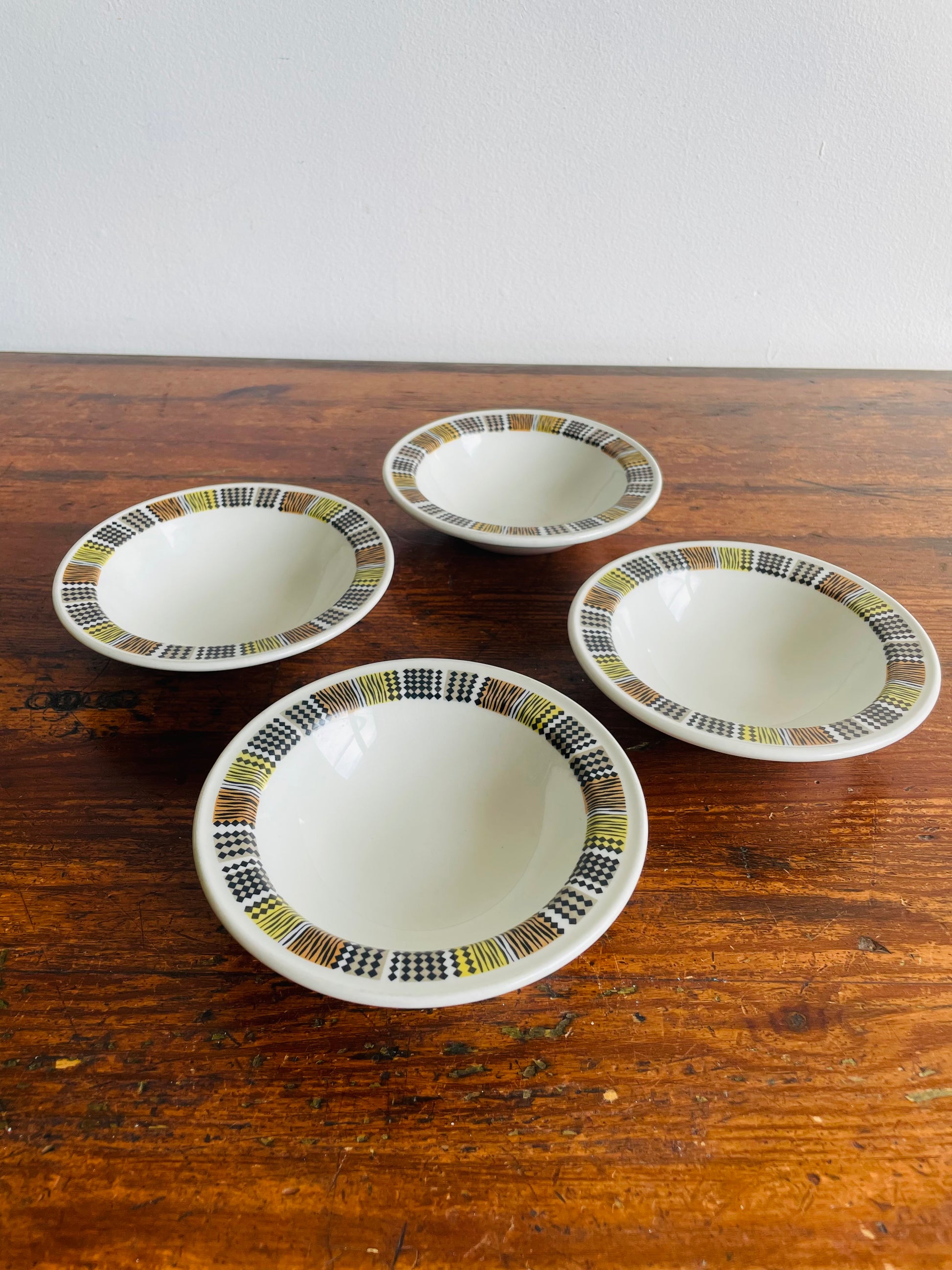 Ridgway Steelite Small Bowls with Tweed Pattern Rim - Vitreous China Hotelware - Made in England - Set of 4